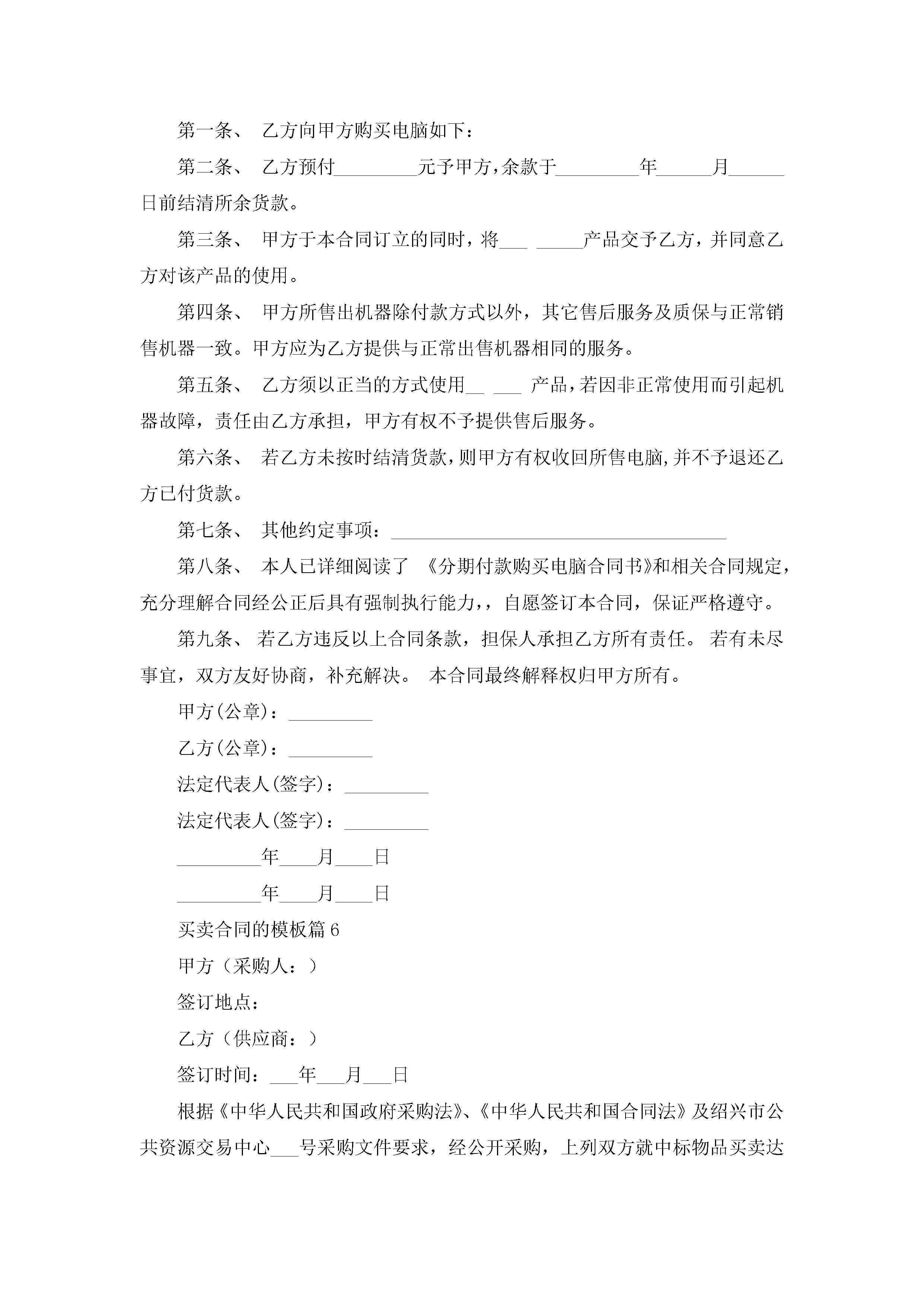 买卖合同的模板(精选10篇)jugei3月23日 01:38发布关注345 买卖合同的模板(精选10篇)此内容为付费资源,请付费后查看¥10.9 单篇文档限时特惠¥15个人会员开通企业会员开通立即下载无需登陆!可直接快捷下载单个模板付费资源© 版权声明THE ENDWord模板# 实用文档# 实用模板# 合同模板# 买卖合同 如有问题,可点击最底部“联系我们”联系客服 分享QQ空间微博QQ好友海报分享复制链接收藏