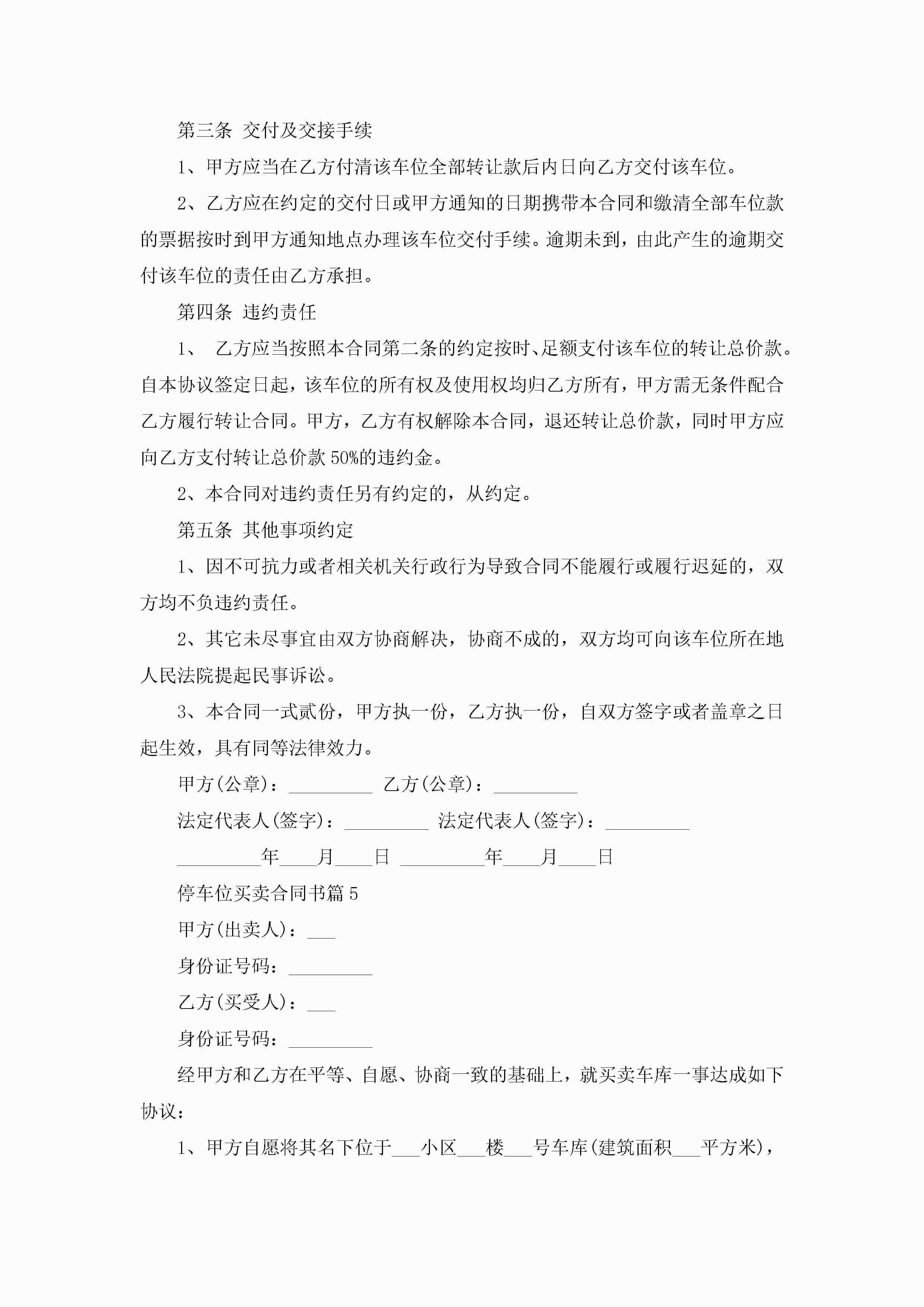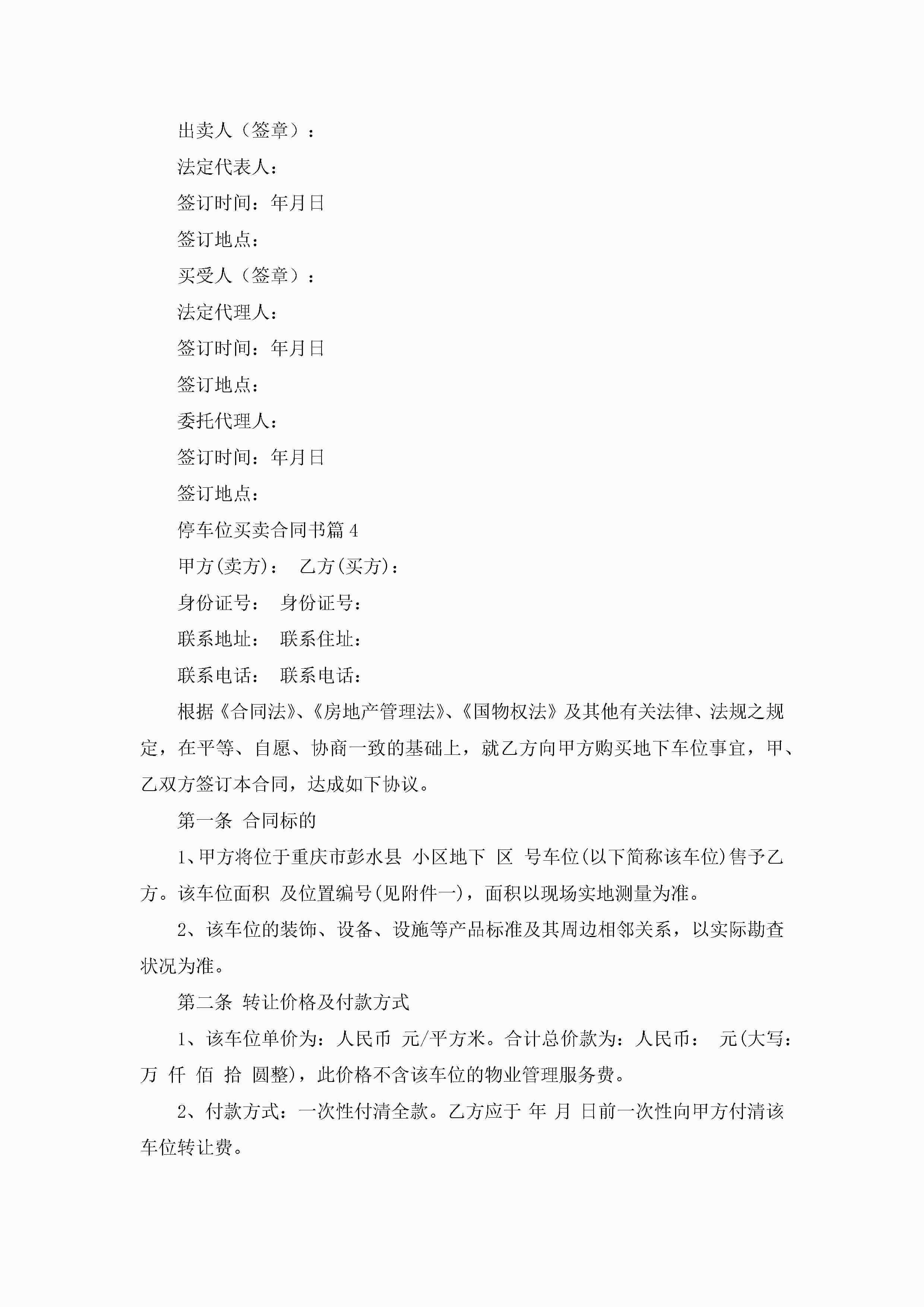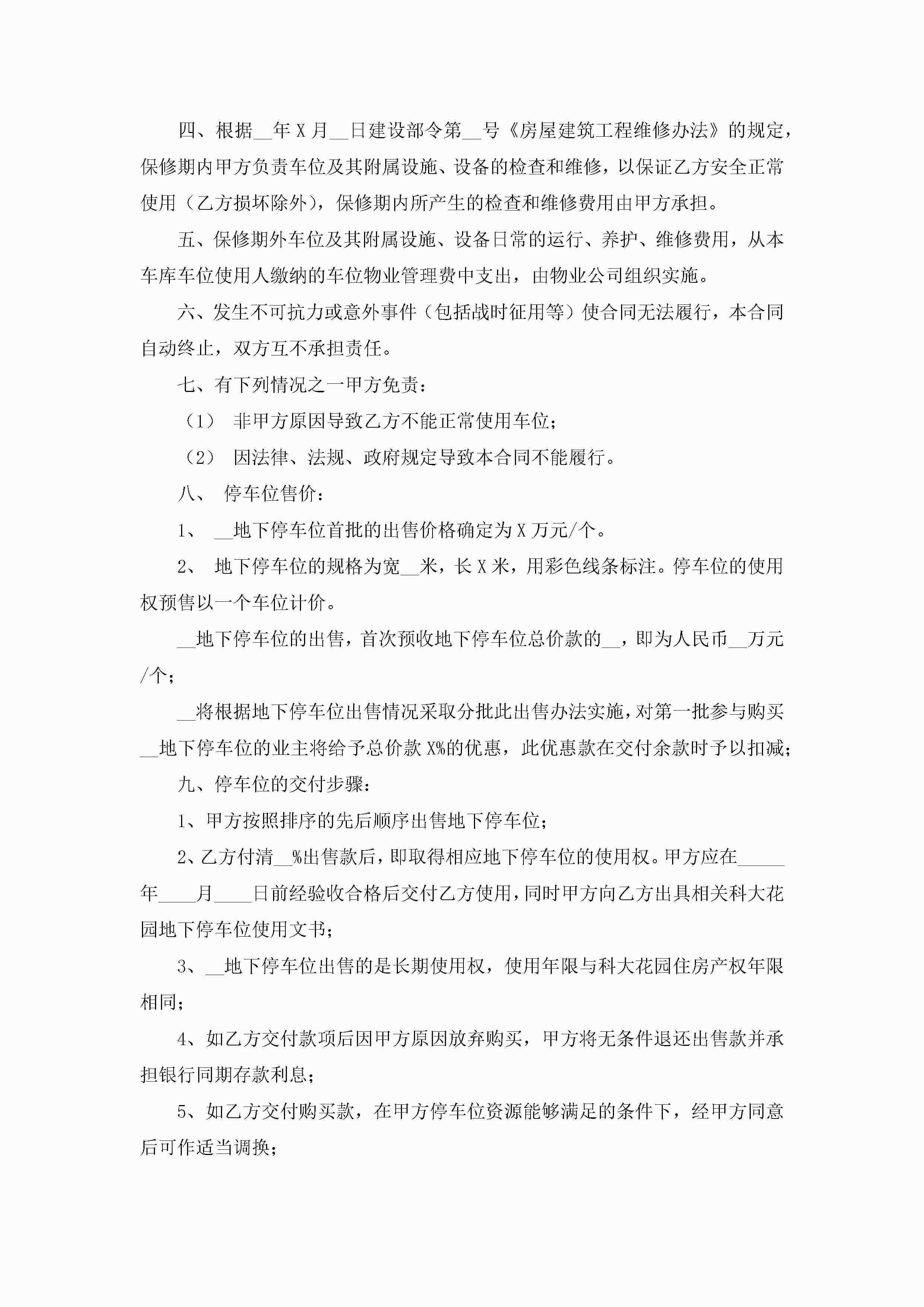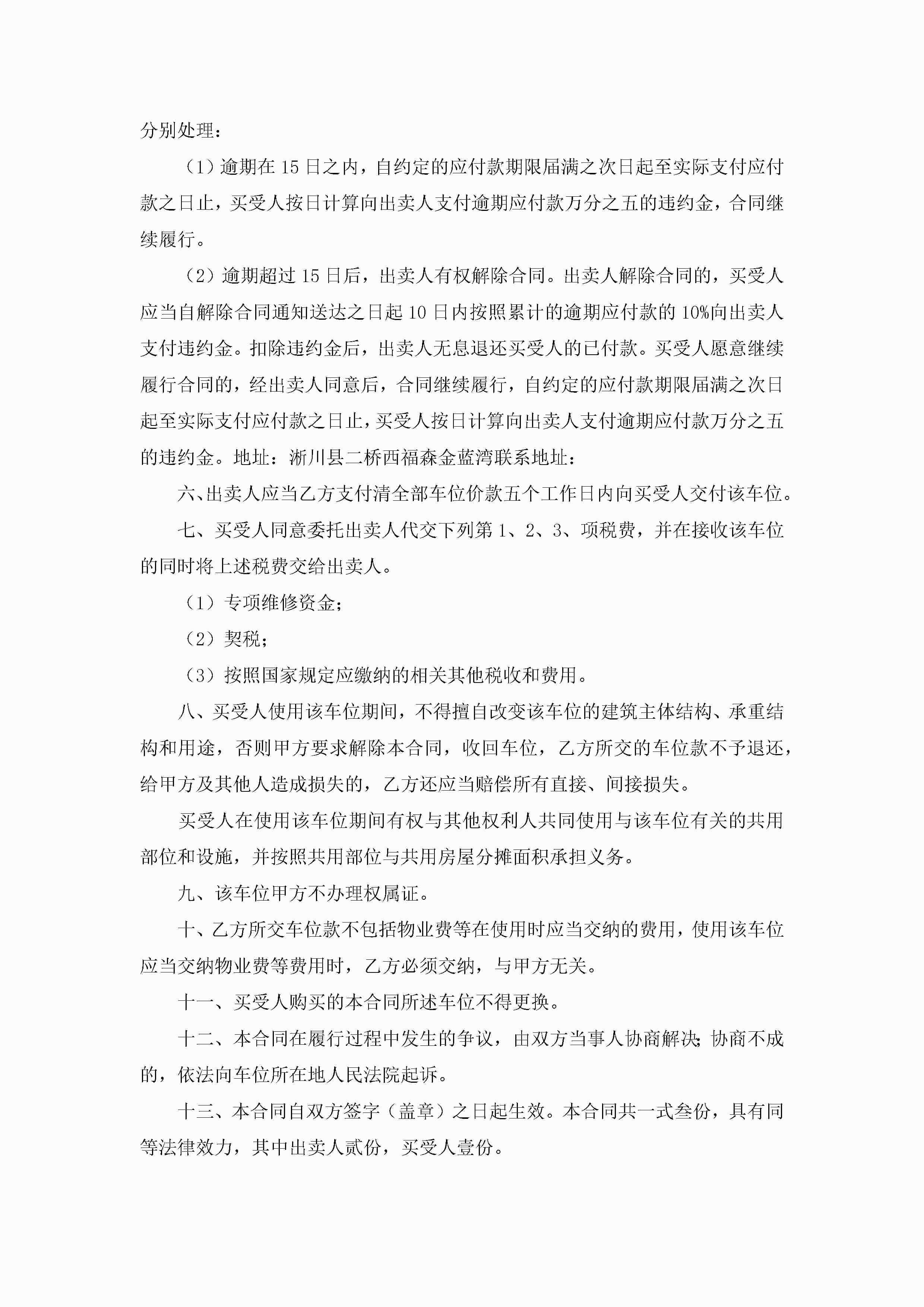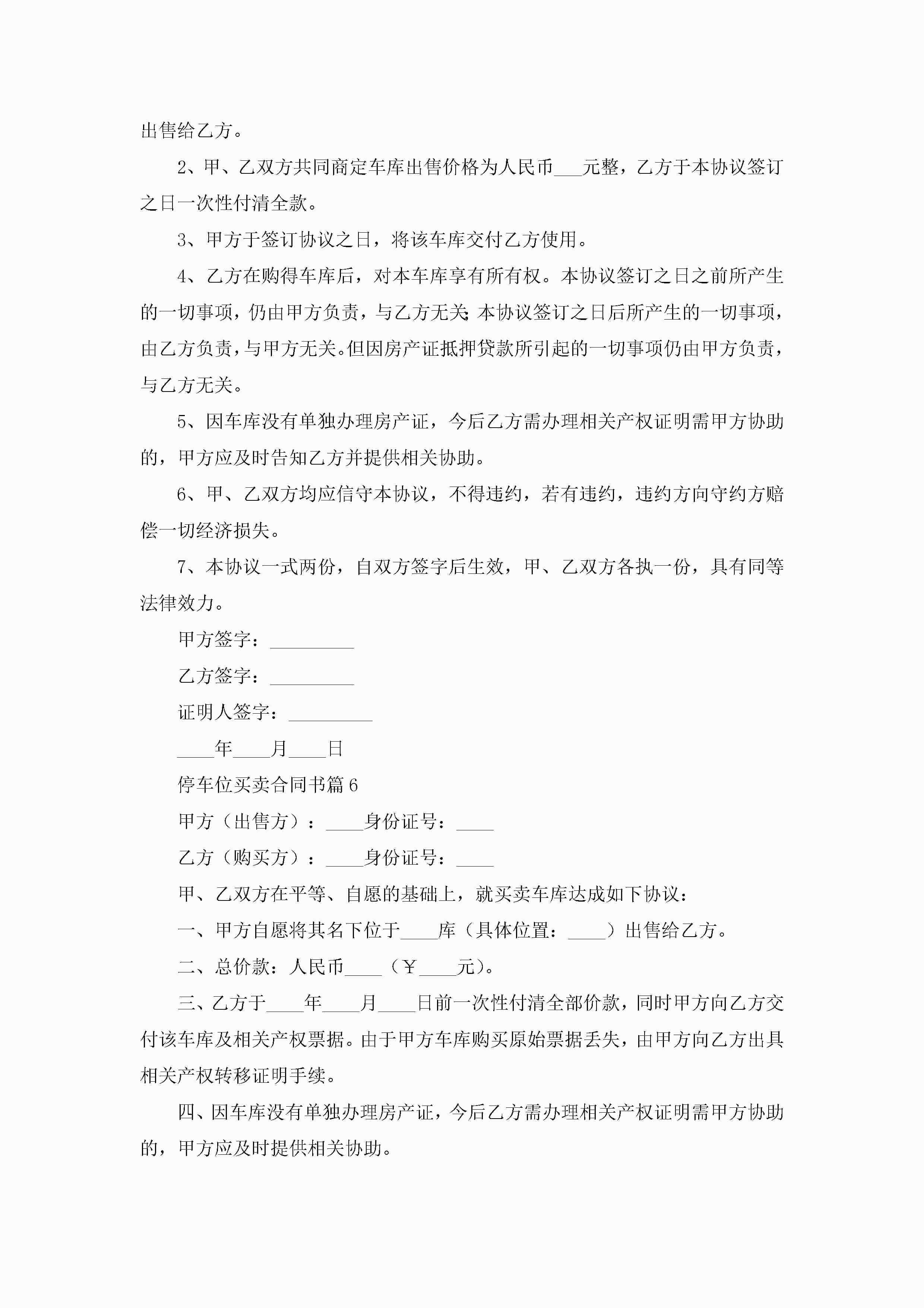 停车位买卖合同书【8篇】jugei3月23日 01:38发布关注203 停车位买卖合同书【8篇】此内容为付费资源,请付费后查看¥10.9 单篇文档限时特惠¥15个人会员开通企业会员开通立即下载无需登陆!可直接快捷下载单个模板付费资源© 版权声明THE ENDWord模板# 实用文档# 实用模板# 合同模板# 买卖合同 如有问题,可点击最底部“联系我们”联系客服 分享QQ空间微博QQ好友海报分享复制链接收藏
