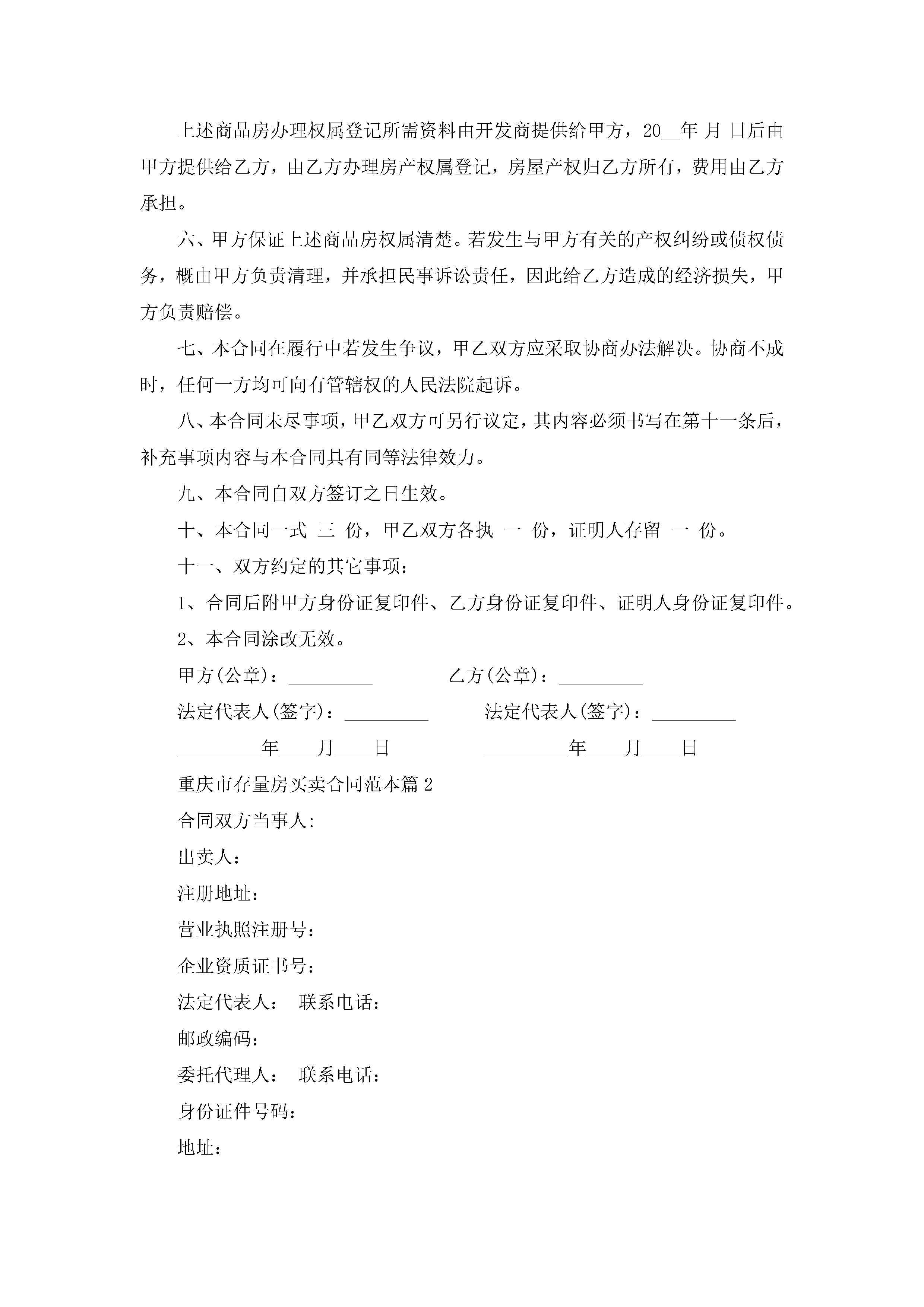 最新重庆市存量房买卖合同范本jugei3月23日 01:38发布关注193 最新重庆市存量房买卖合同范本此内容为付费资源,请付费后查看¥10.9 单篇文档限时特惠¥15个人会员开通企业会员开通立即下载无需登陆!可直接快捷下载单个模板付费资源© 版权声明THE ENDWord模板# 实用文档# 合同模板# 买卖合同# 重庆市存量房买卖合同范本 如有问题,可点击最底部“联系我们”联系客服 分享QQ空间微博QQ好友海报分享复制链接收藏