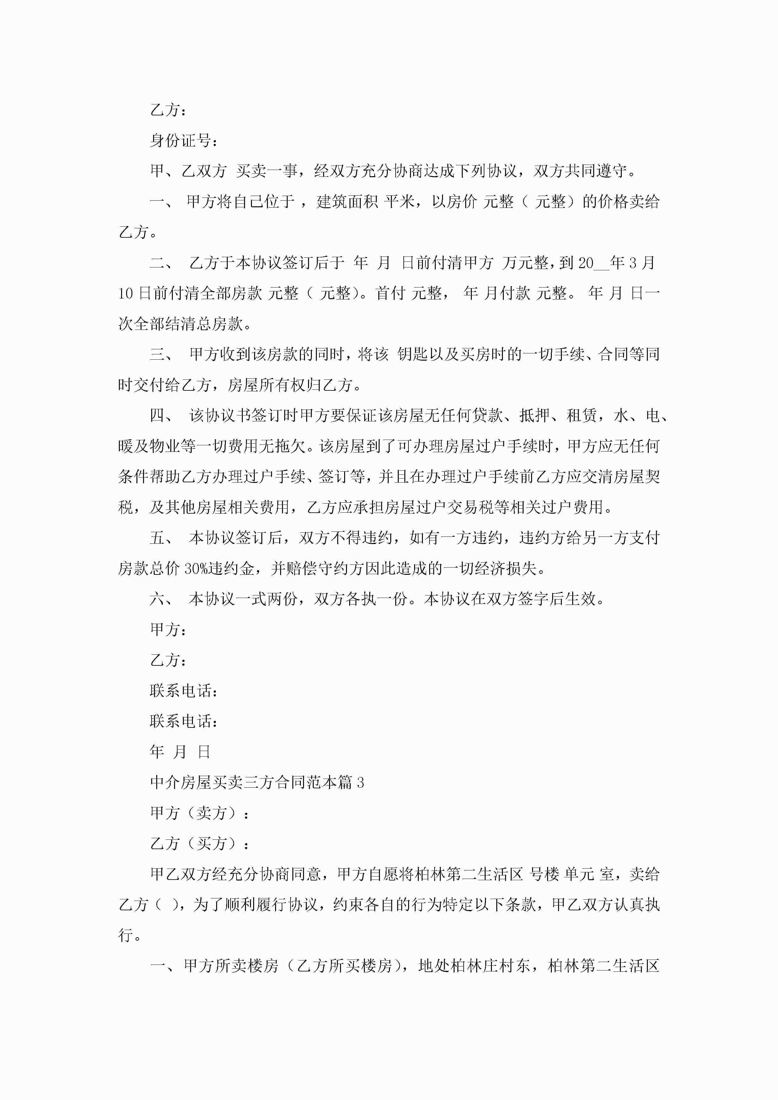 最新中介房屋买卖三方合同范本jugei3月23日 01:38发布关注189 最新中介房屋买卖三方合同范本此内容为付费资源,请付费后查看¥10.9 单篇文档限时特惠¥15个人会员开通企业会员开通立即下载无需登陆!可直接快捷下载单个模板付费资源© 版权声明THE ENDWord模板# 实用文档# 合同模板# 买卖合同# 中介房屋买卖三方合同范本 如有问题,可点击最底部“联系我们”联系客服 分享QQ空间微博QQ好友海报分享复制链接收藏