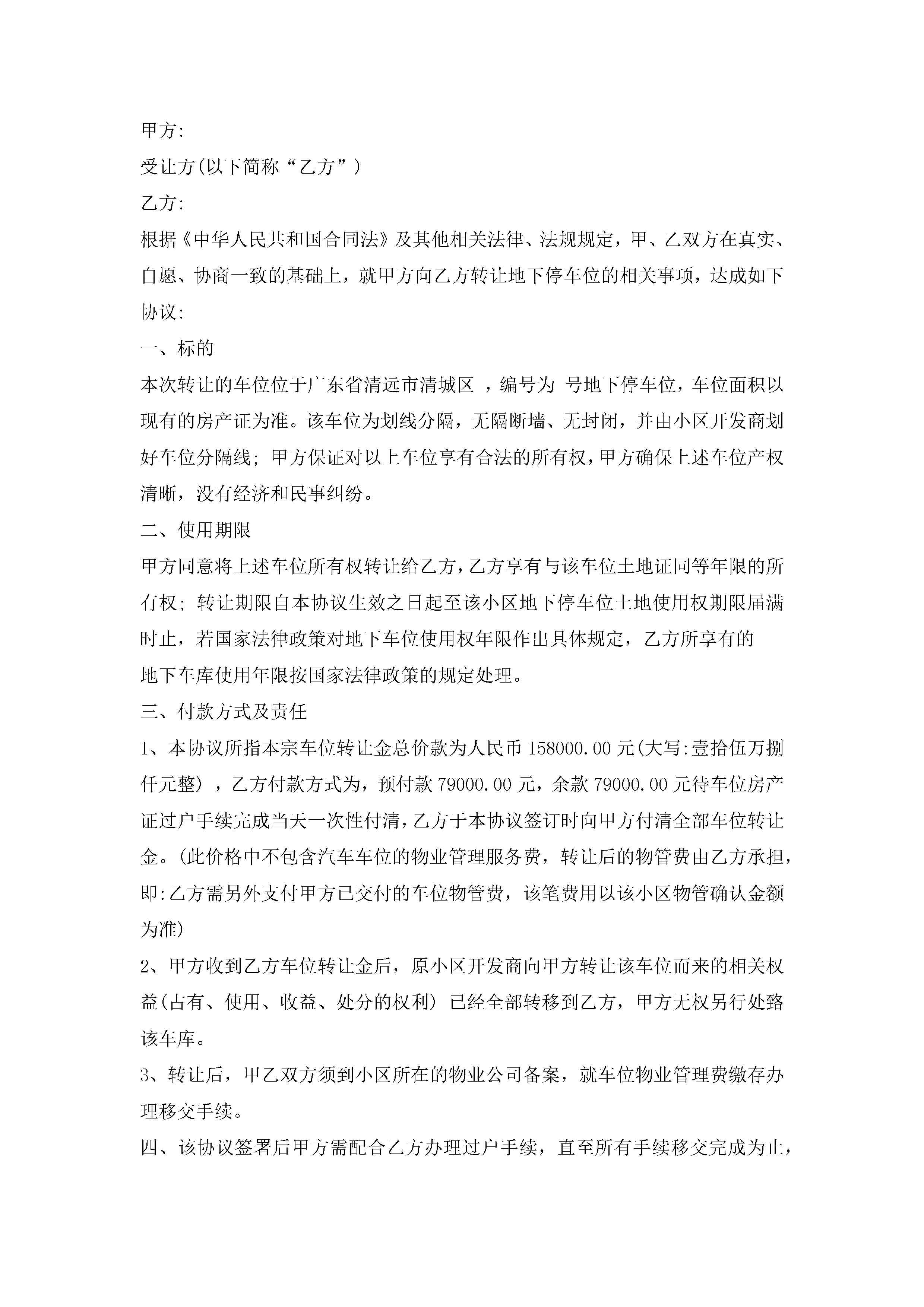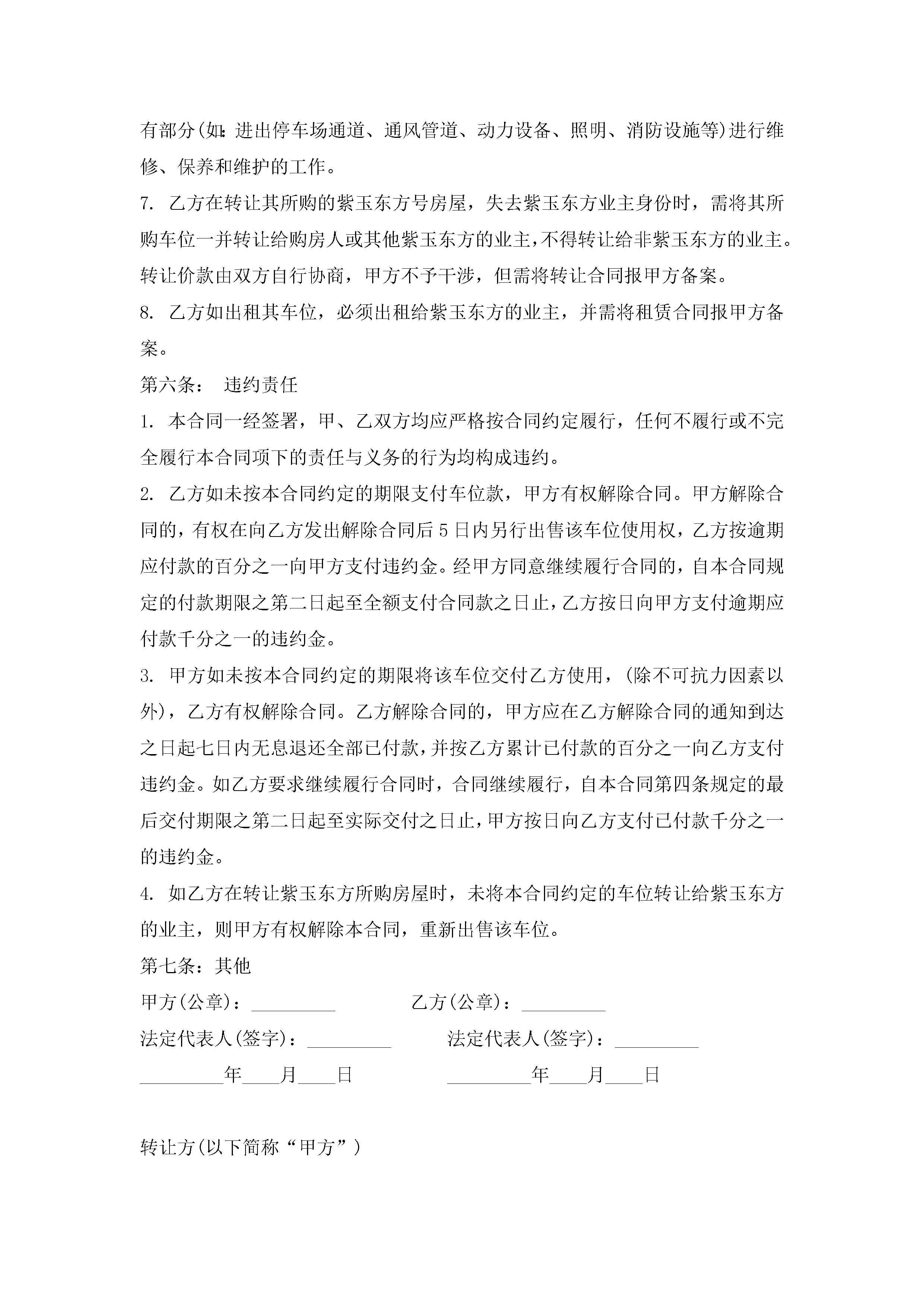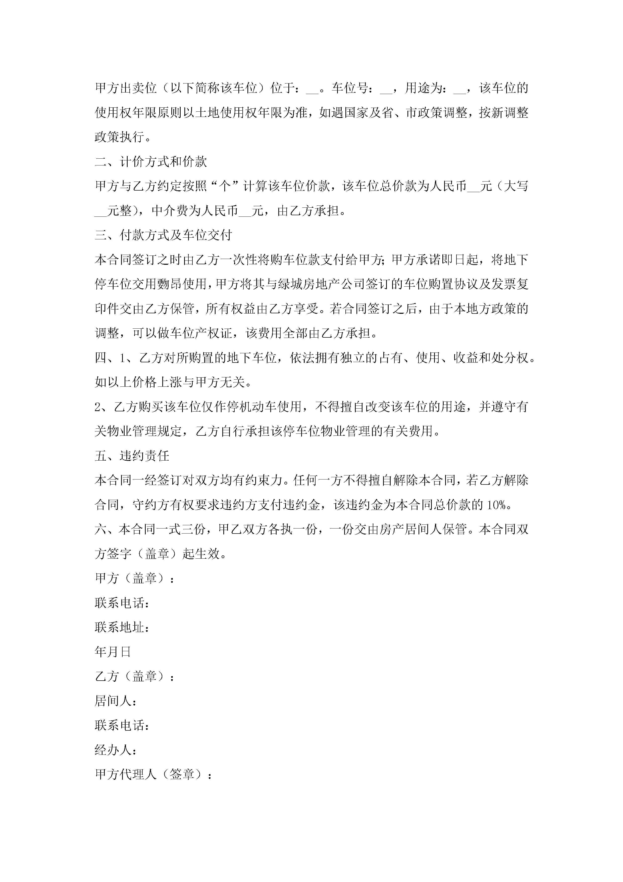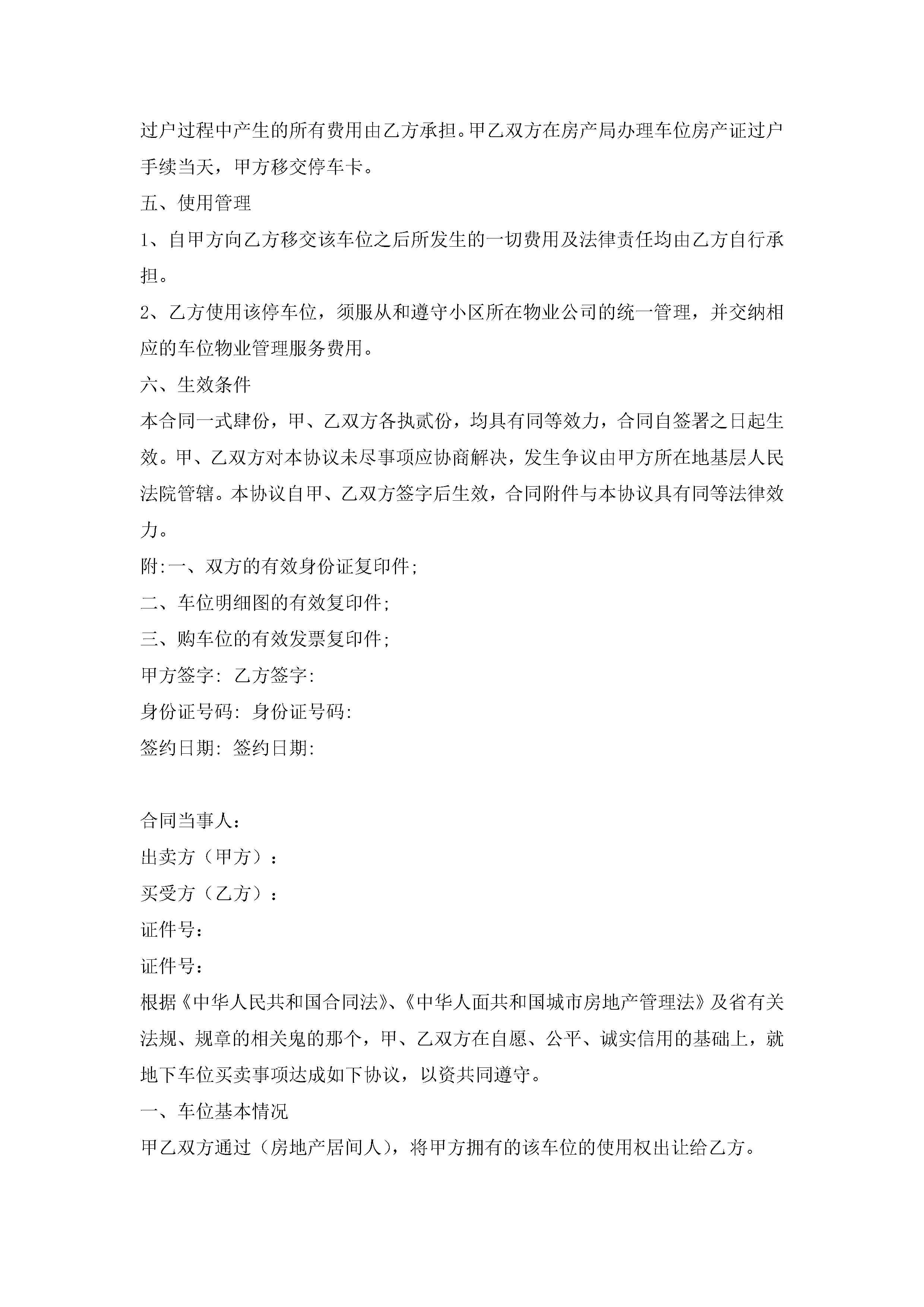 住房车位买卖合同范本(精选7篇)jugei3月23日 01:39发布关注190 住房车位买卖合同范本(精选7篇)此内容为付费资源,请付费后查看¥10.9 单篇文档限时特惠¥15个人会员开通企业会员开通立即下载无需登陆!可直接快捷下载单个模板付费资源© 版权声明THE ENDWord模板# 实用文档# 实用模板# 合同模板# 买卖合同 如有问题,可点击最底部“联系我们”联系客服 分享QQ空间微博QQ好友海报分享复制链接收藏