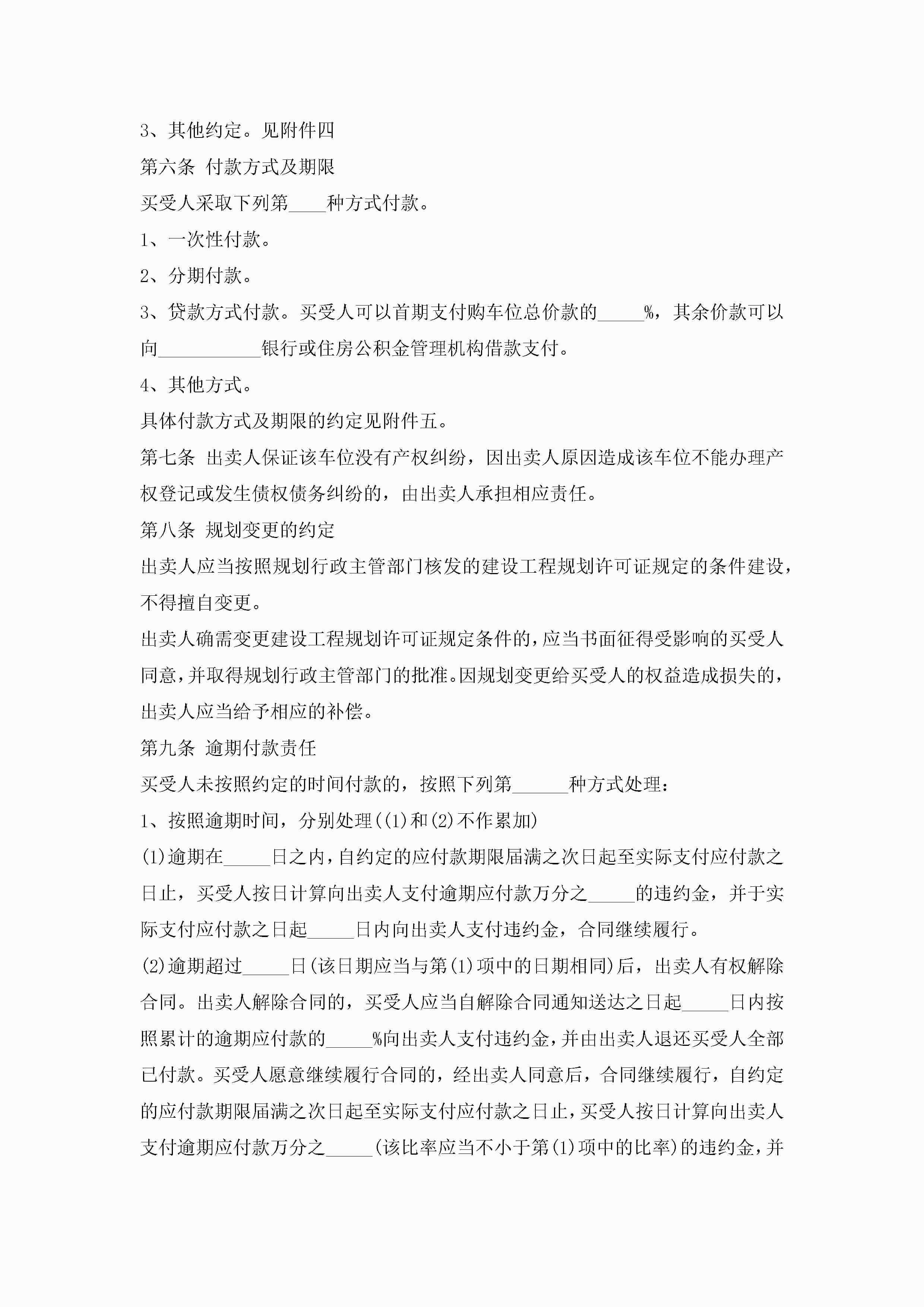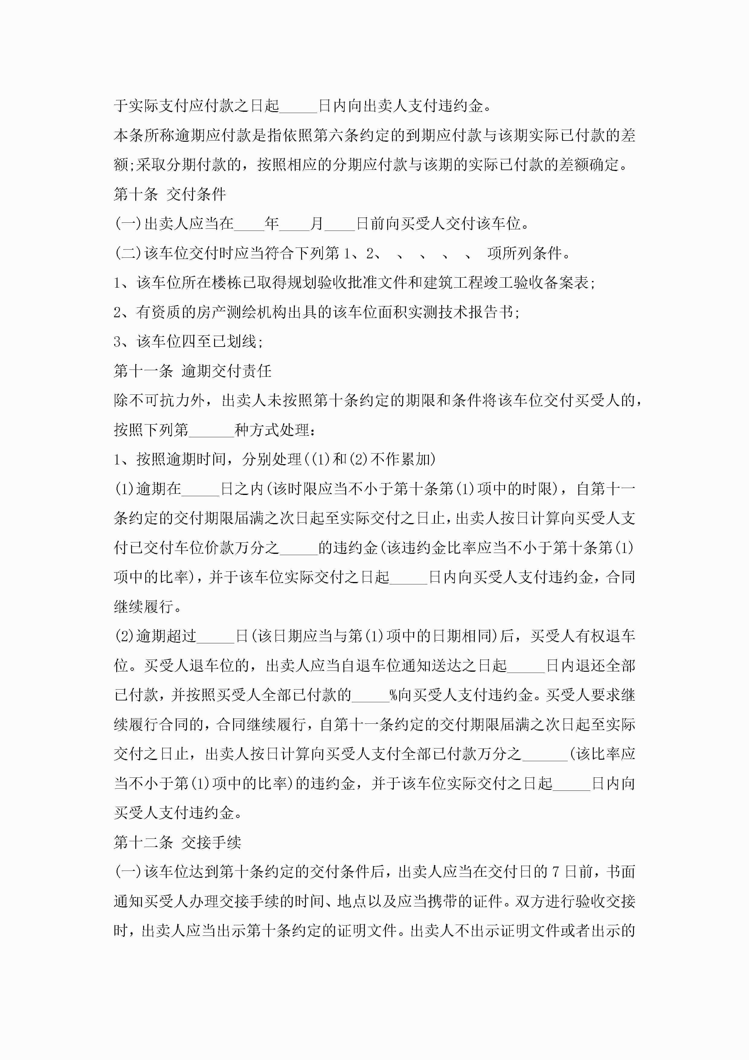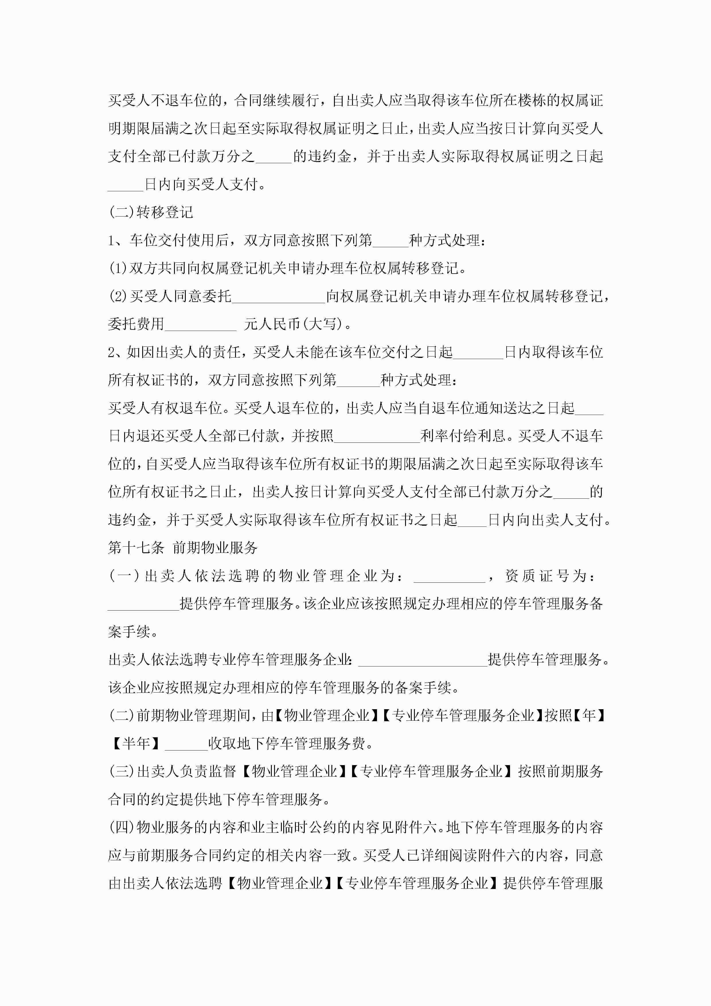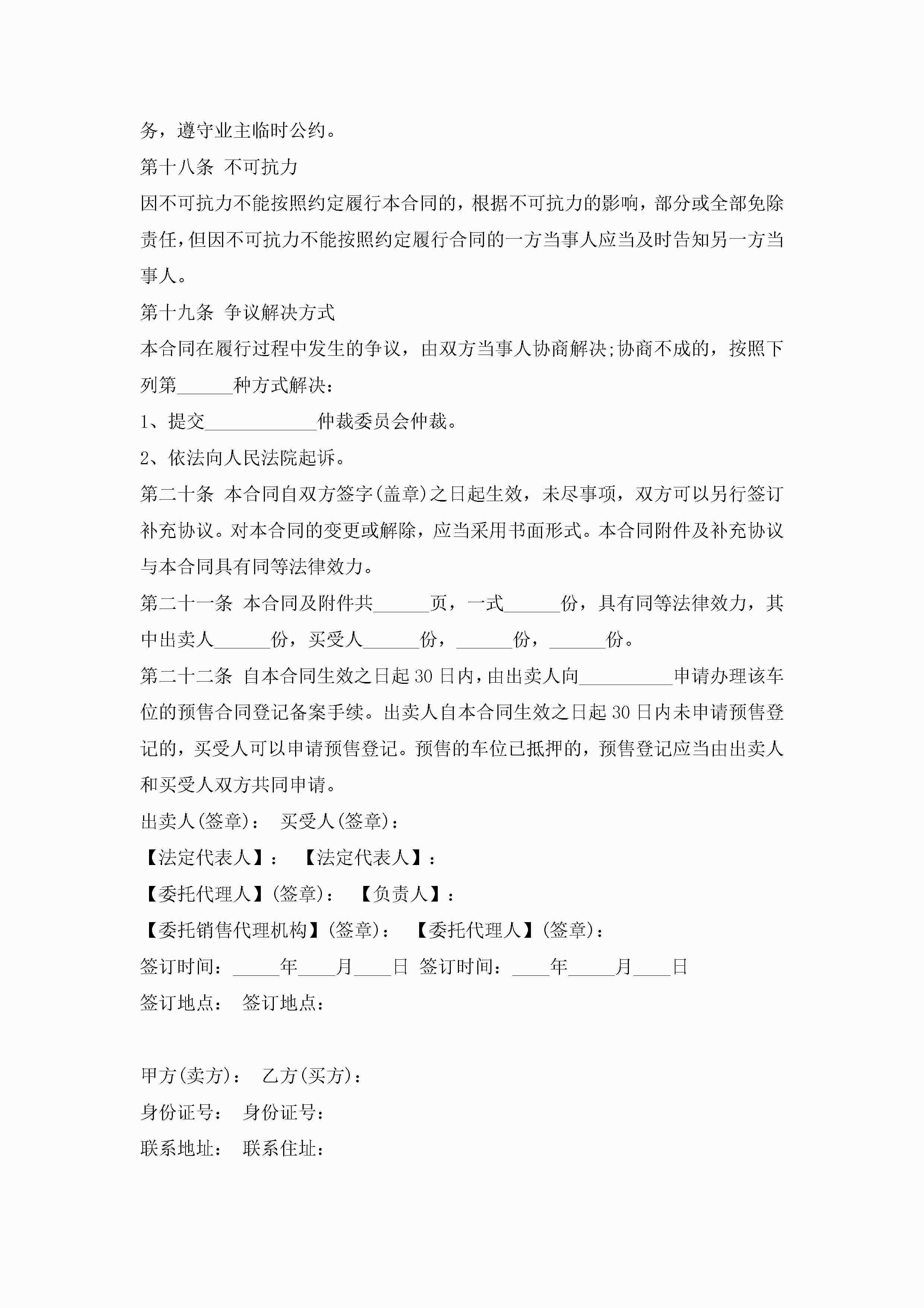 车辆停车位买卖合同(7篇)jugei3月23日 01:39发布关注188 车辆停车位买卖合同(7篇)此内容为付费资源,请付费后查看¥10.9 单篇文档限时特惠¥15个人会员开通企业会员开通立即下载无需登陆!可直接快捷下载单个模板付费资源© 版权声明THE ENDWord模板# 实用文档# 实用模板# 合同模板# 买卖合同 如有问题,可点击最底部“联系我们”联系客服 分享QQ空间微博QQ好友海报分享复制链接收藏