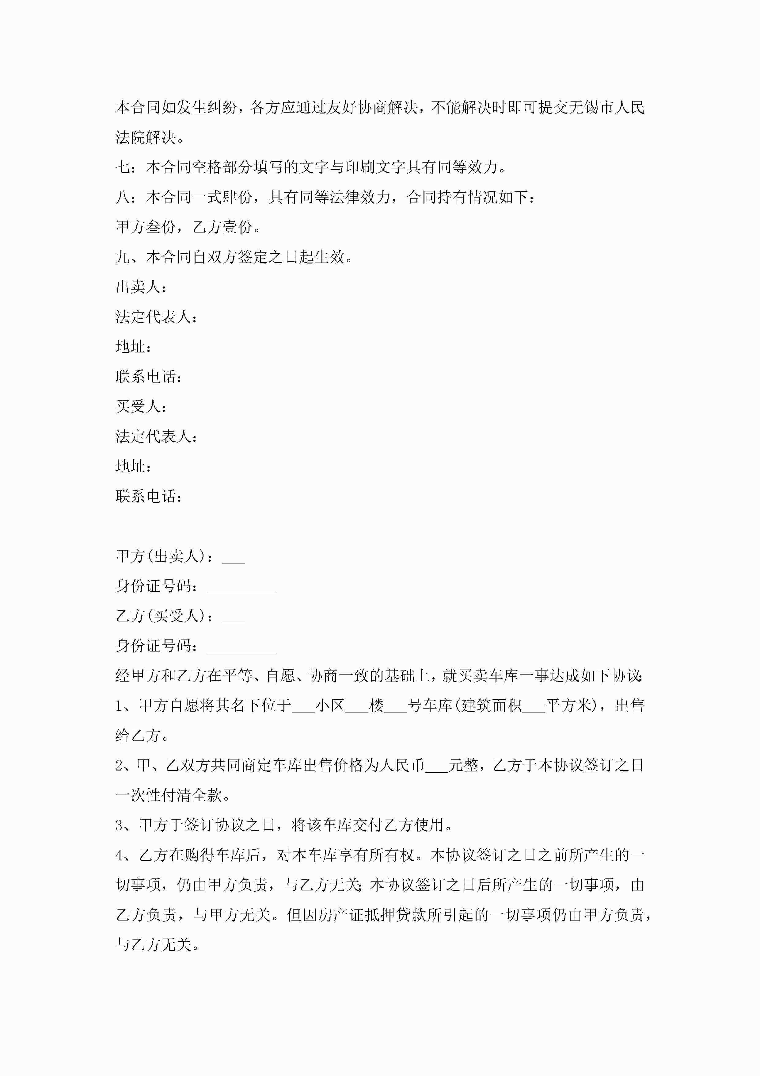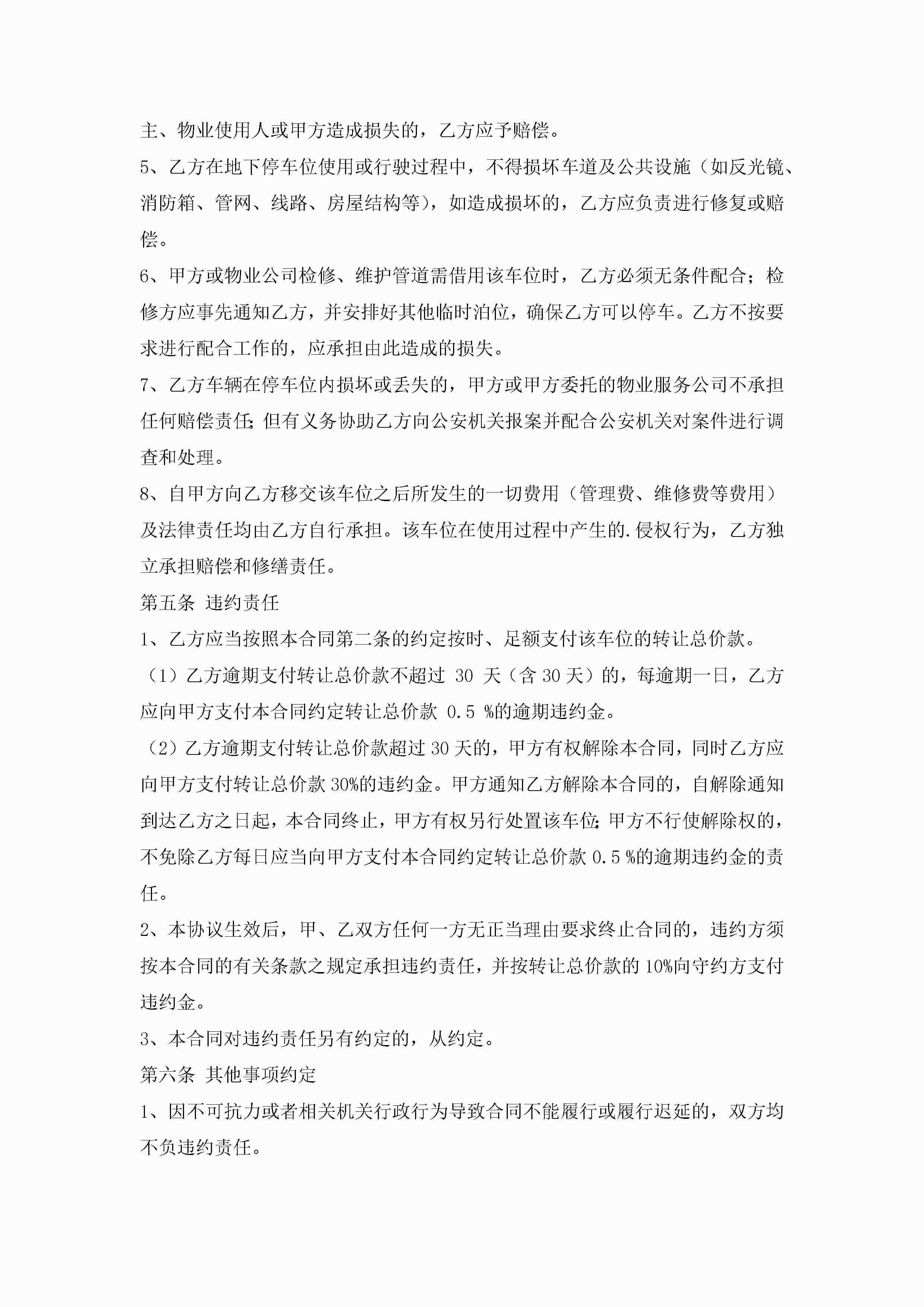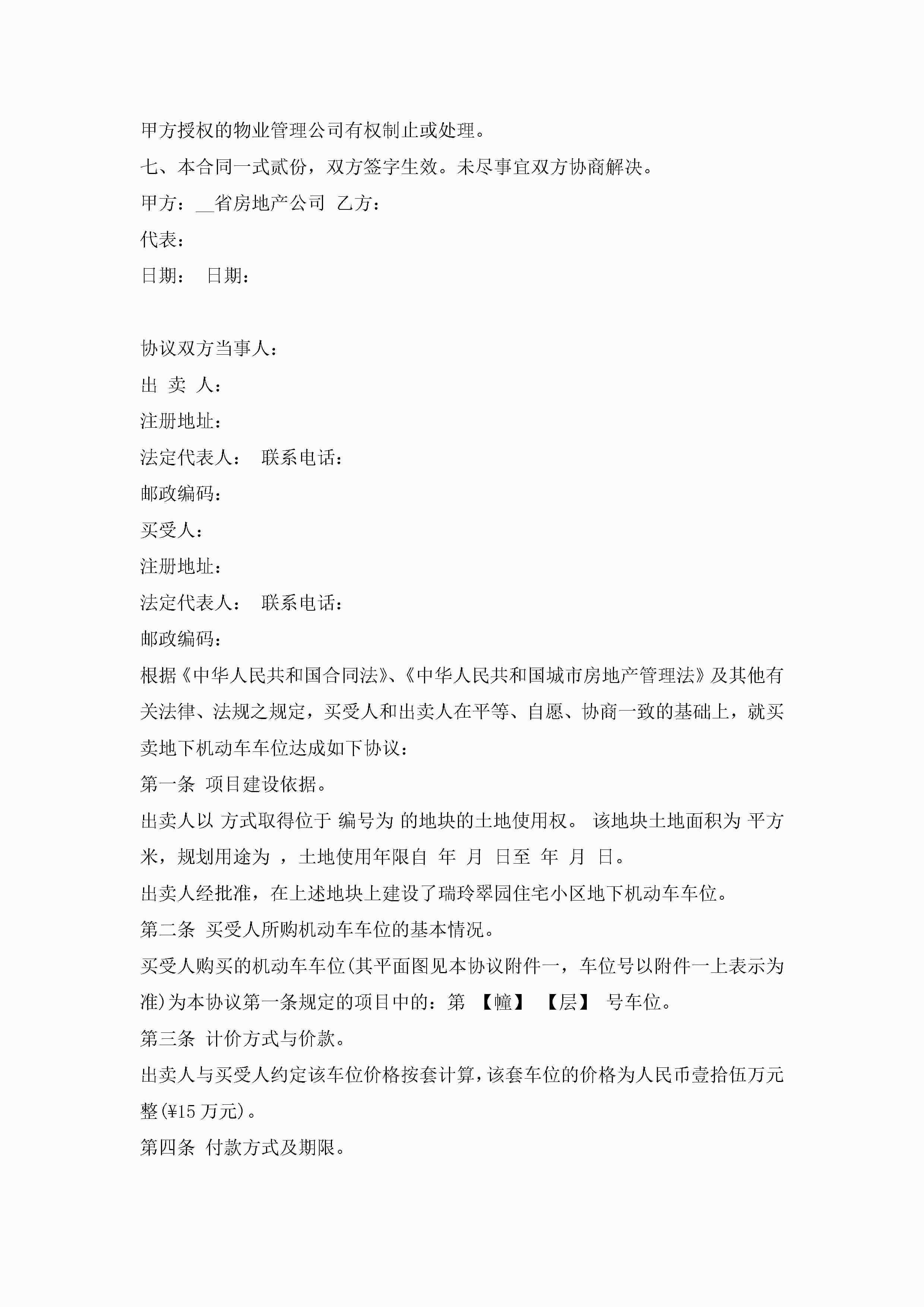 停车位买卖合同书(7篇)jugei3月23日 01:39发布关注225 停车位买卖合同书(7篇)此内容为付费资源,请付费后查看¥10.9 单篇文档限时特惠¥15个人会员开通企业会员开通立即下载无需登陆!可直接快捷下载单个模板付费资源© 版权声明THE ENDWord模板# 实用文档# 实用模板# 合同模板# 买卖合同 如有问题,可点击最底部“联系我们”联系客服 分享QQ空间微博QQ好友海报分享复制链接收藏
