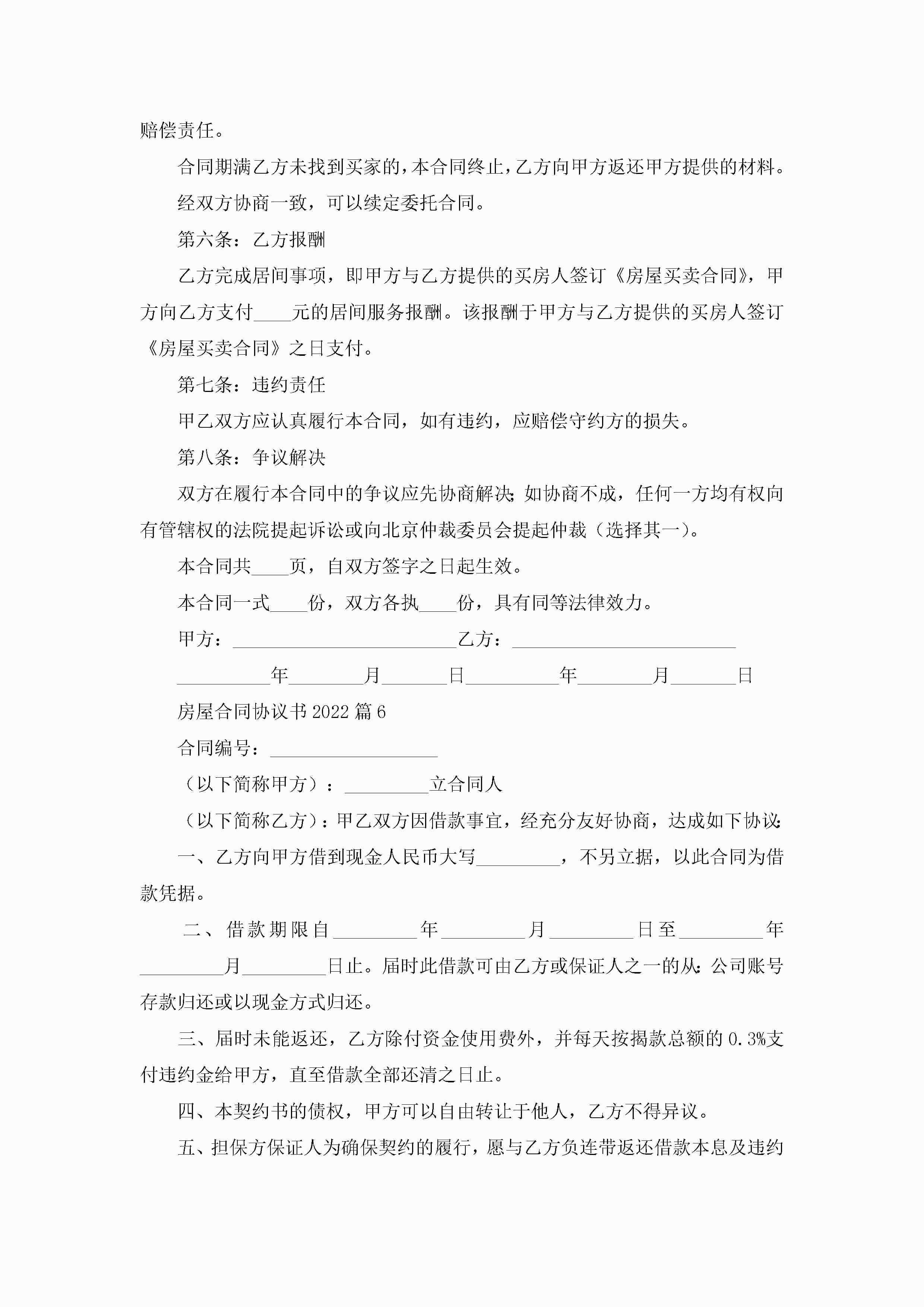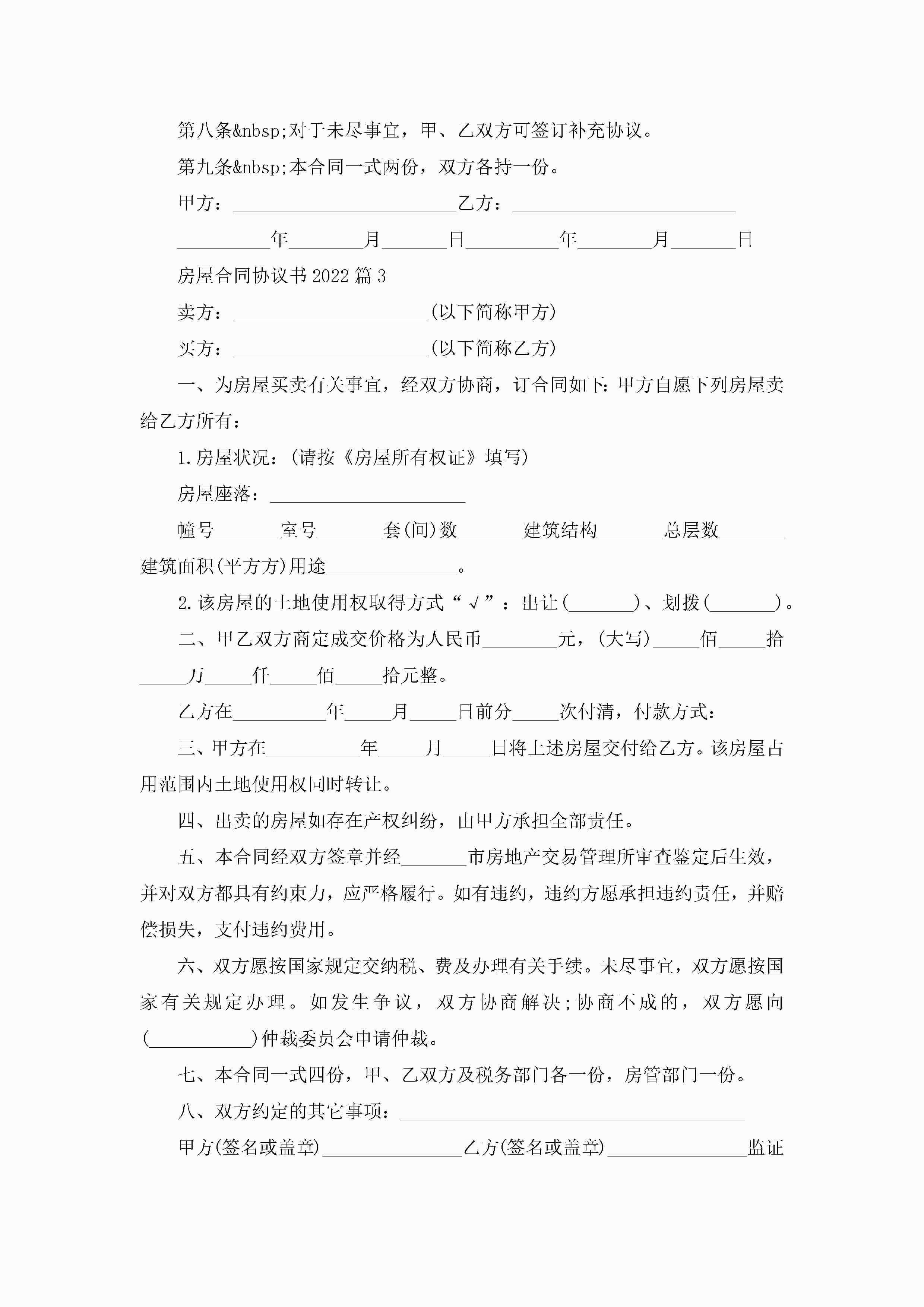 房屋合同协议书2022(8篇)jugei3月23日 01:39发布关注198 房屋合同协议书2022(8篇)此内容为付费资源,请付费后查看¥10.9 单篇文档限时特惠¥15个人会员开通企业会员开通立即下载无需登陆!可直接快捷下载单个模板付费资源© 版权声明THE ENDWord模板# 实用文档# 实用模板# 合同模板# 买卖合同 如有问题,可点击最底部“联系我们”联系客服 分享QQ空间微博QQ好友海报分享复制链接收藏