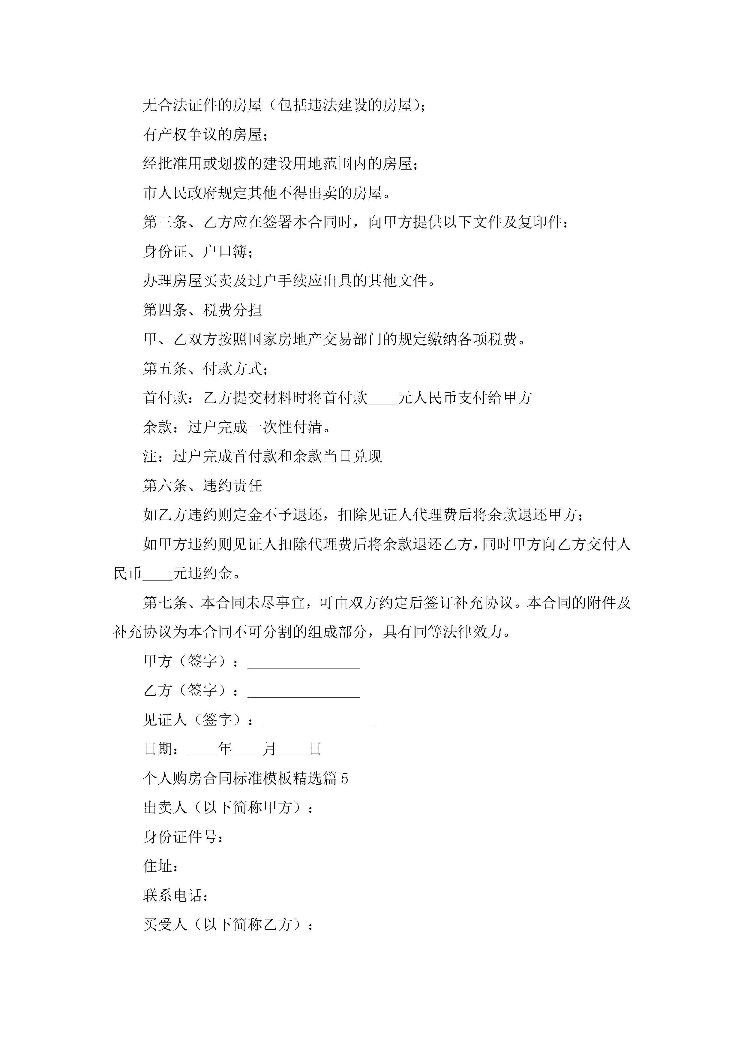 个人购房合同标准模板【精选9篇】jugei3月23日 01:39发布关注233 个人购房合同标准模板【精选9篇】此内容为付费资源,请付费后查看¥10.9 单篇文档限时特惠¥15个人会员开通企业会员开通立即下载无需登陆!可直接快捷下载单个模板付费资源© 版权声明THE ENDWord模板# 实用文档# 实用模板# 合同模板# 买卖合同 如有问题,可点击最底部“联系我们”联系客服 分享QQ空间微博QQ好友海报分享复制链接收藏