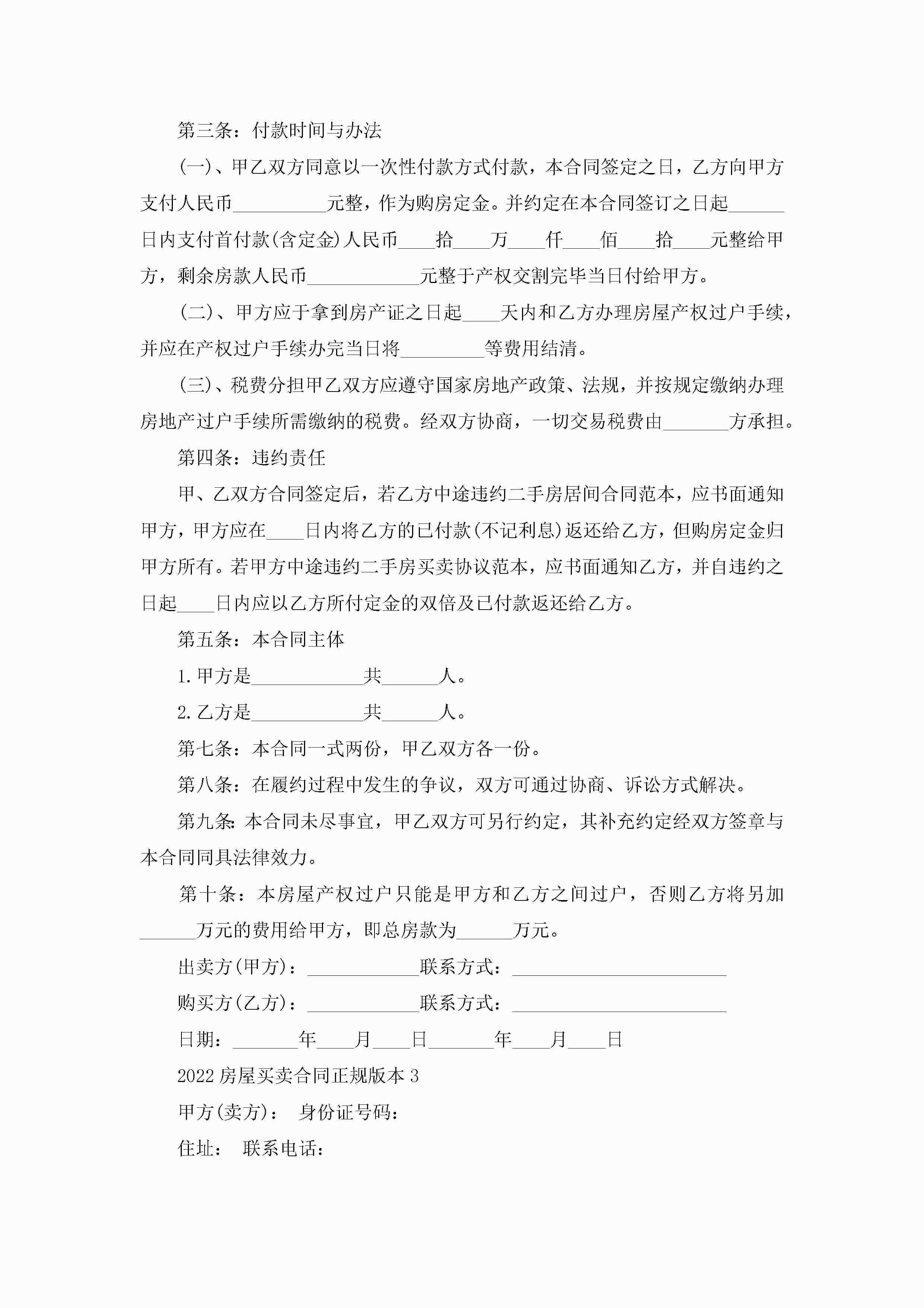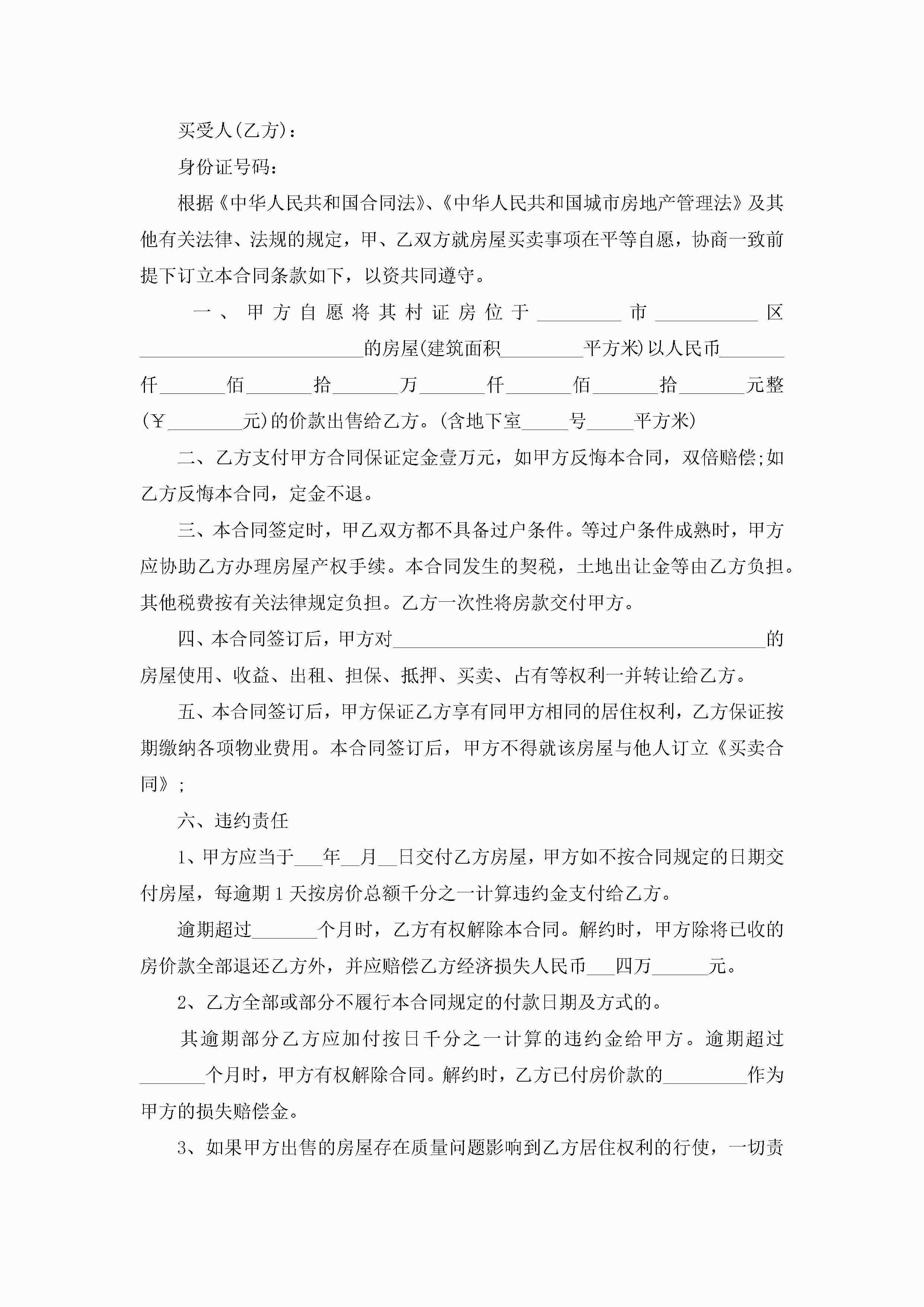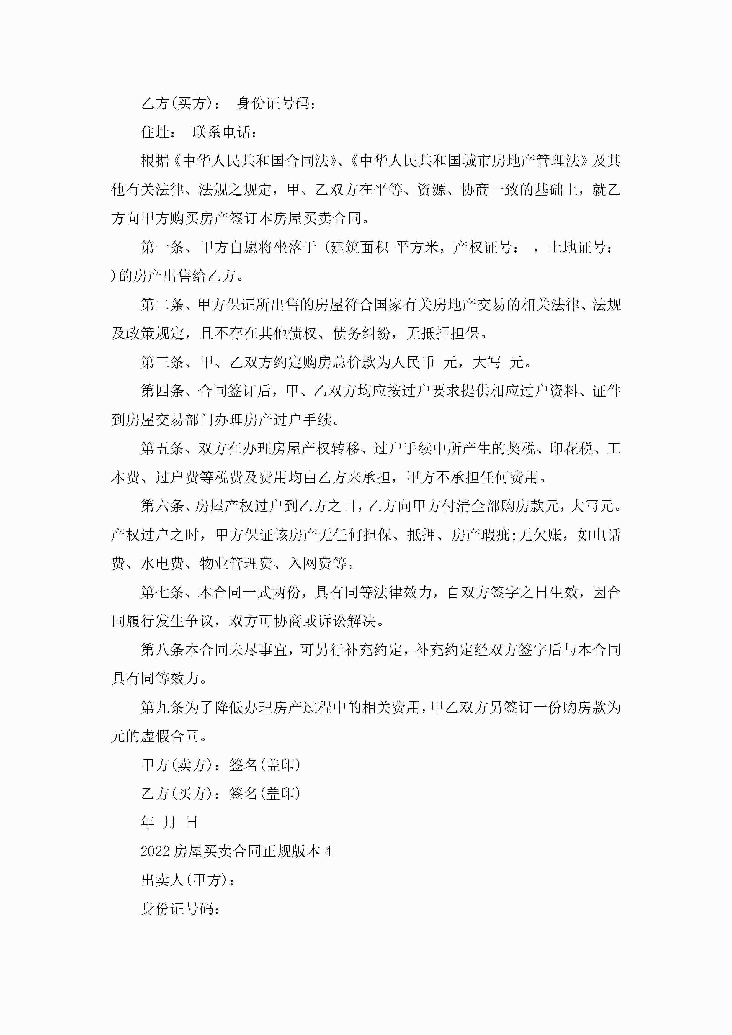 2022个人房屋买卖合同正规版本五篇jugei3月23日 01:39发布关注339 2022个人房屋买卖合同正规版本五篇此内容为付费资源,请付费后查看¥10.9 单篇文档限时特惠¥15个人会员开通企业会员开通立即下载无需登陆!可直接快捷下载单个模板付费资源© 版权声明THE ENDWord模板# 实用文档# 实用模板# 合同模板# 买卖合同 如有问题,可点击最底部“联系我们”联系客服 分享QQ空间微博QQ好友海报分享复制链接收藏