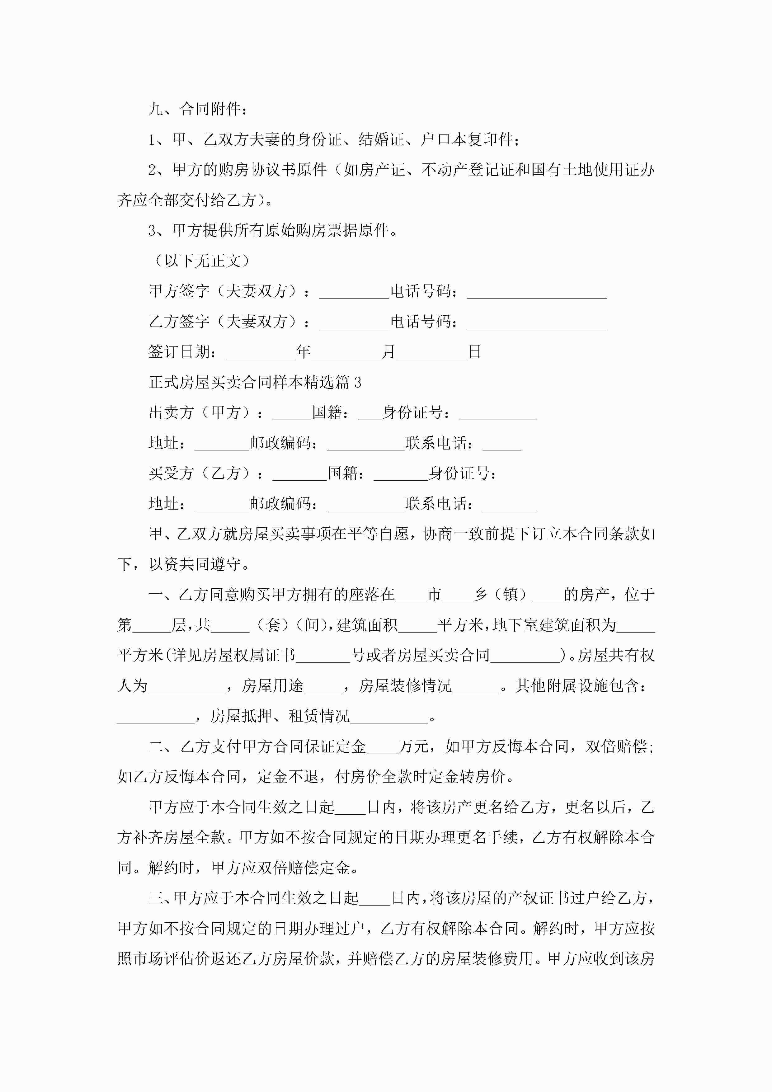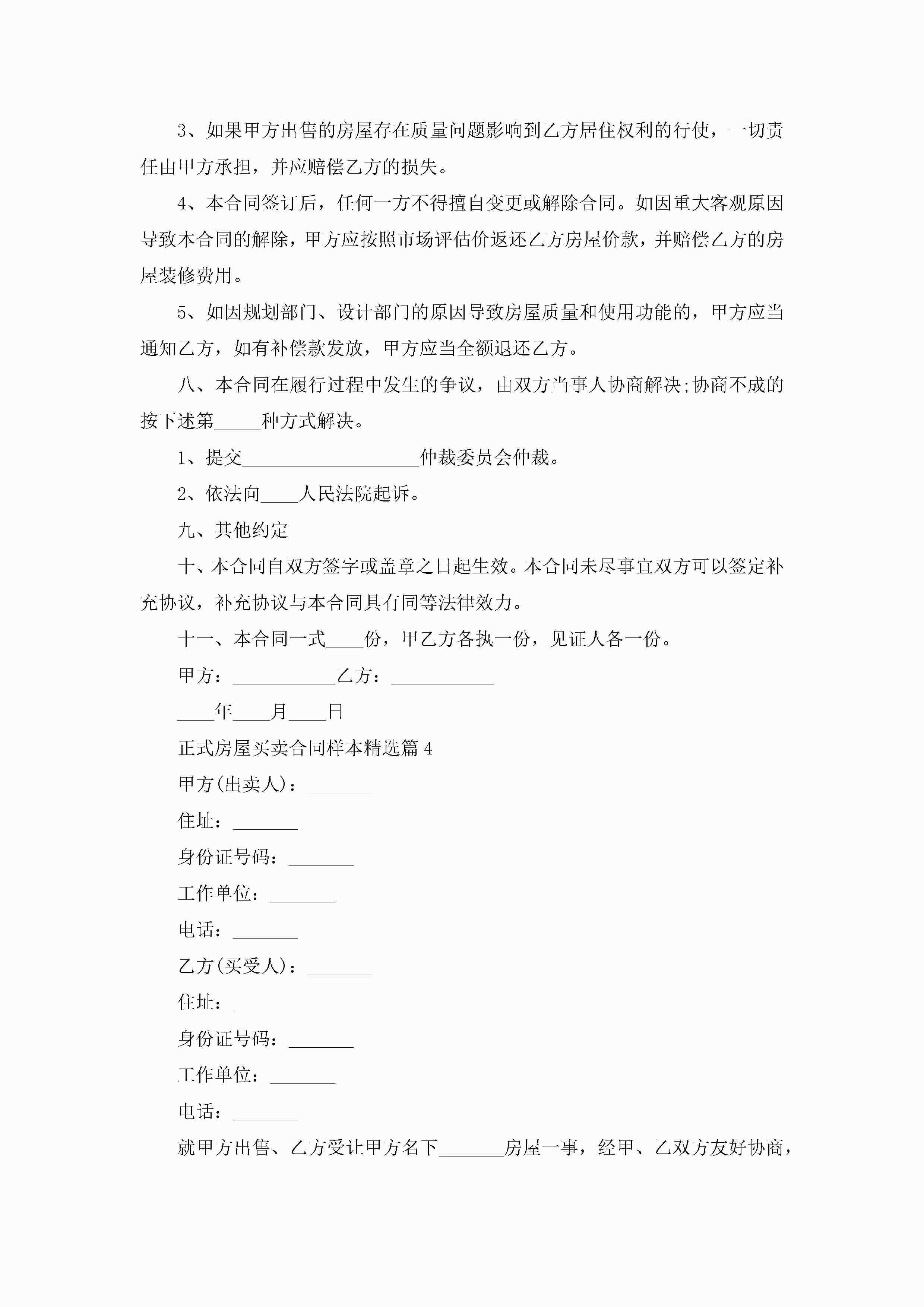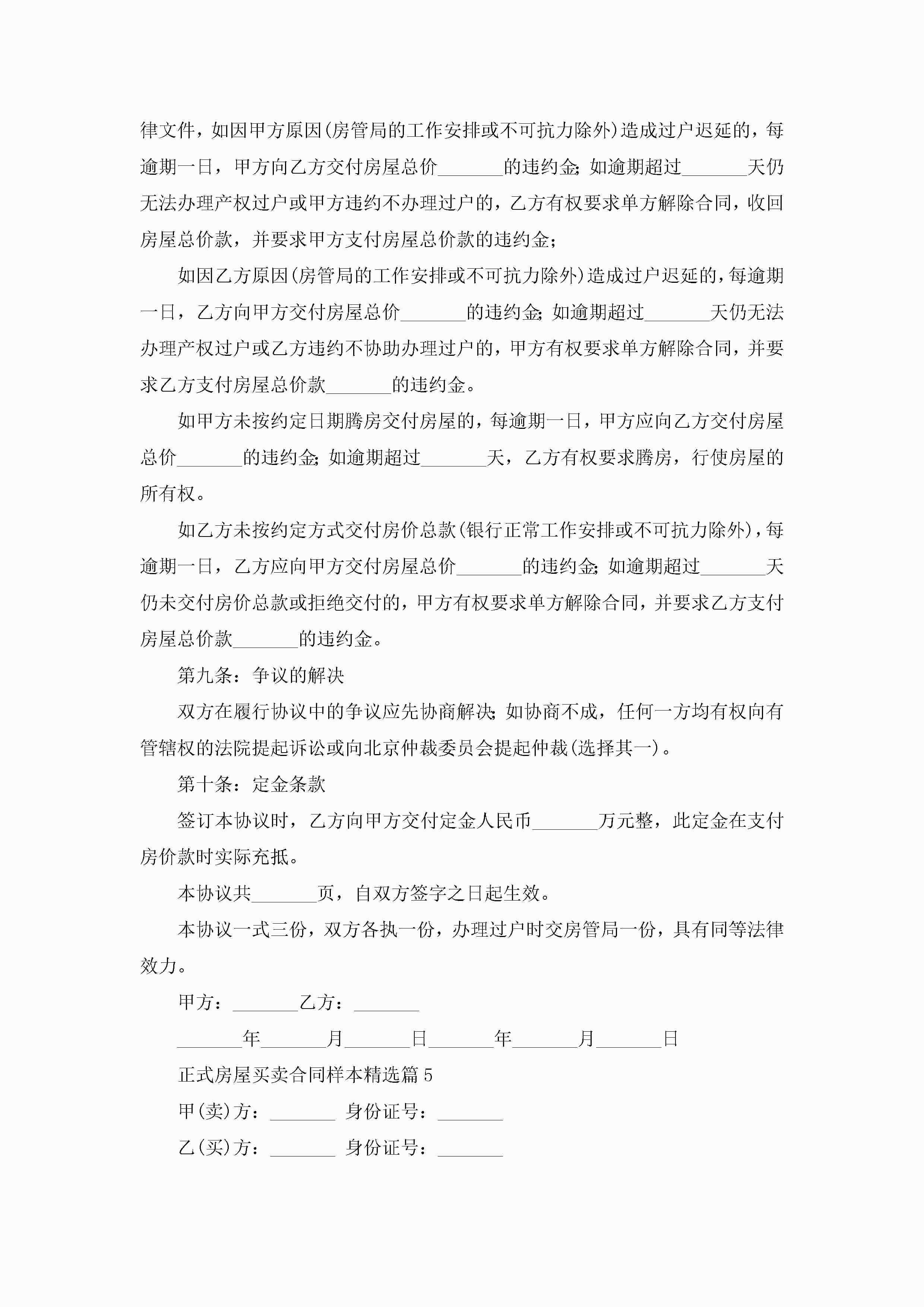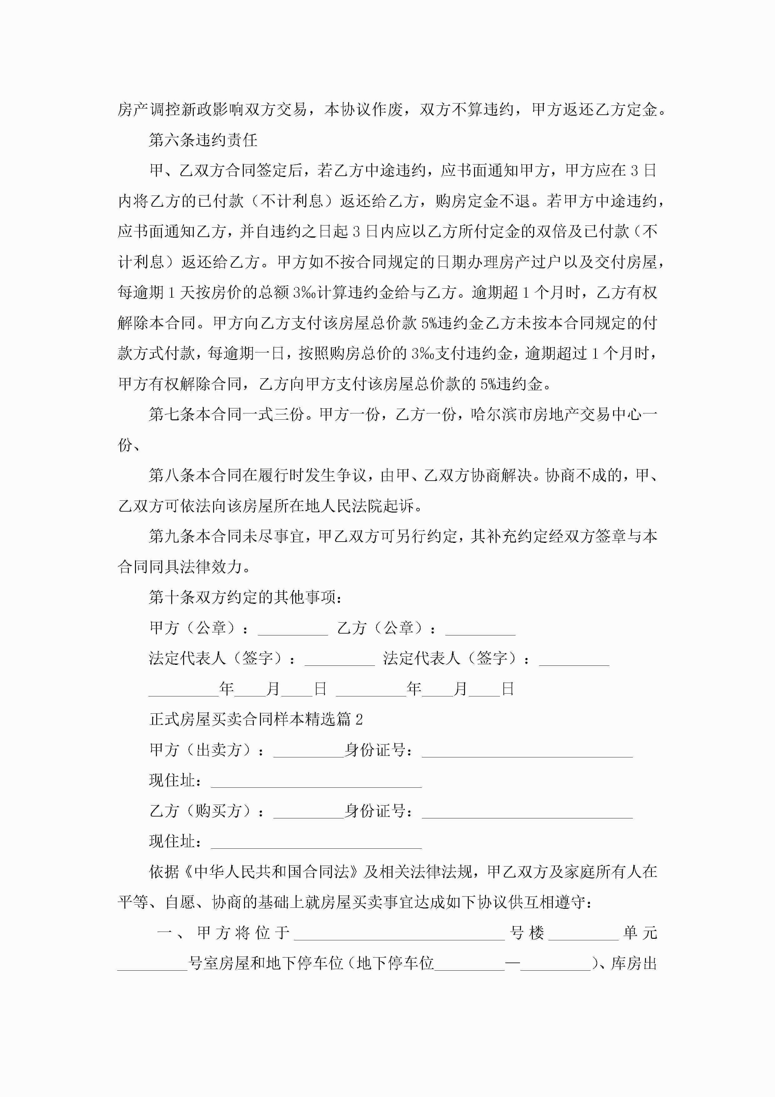 正式房屋买卖合同样本5篇jugei3月23日 01:39发布关注198 正式房屋买卖合同样本5篇此内容为付费资源,请付费后查看¥10.9 单篇文档限时特惠¥15个人会员开通企业会员开通立即下载无需登陆!可直接快捷下载单个模板付费资源© 版权声明THE ENDWord模板# 实用文档# 合同模板# 买卖合同# 正式房屋买卖合同样本 如有问题,可点击最底部“联系我们”联系客服 分享QQ空间微博QQ好友海报分享复制链接收藏
