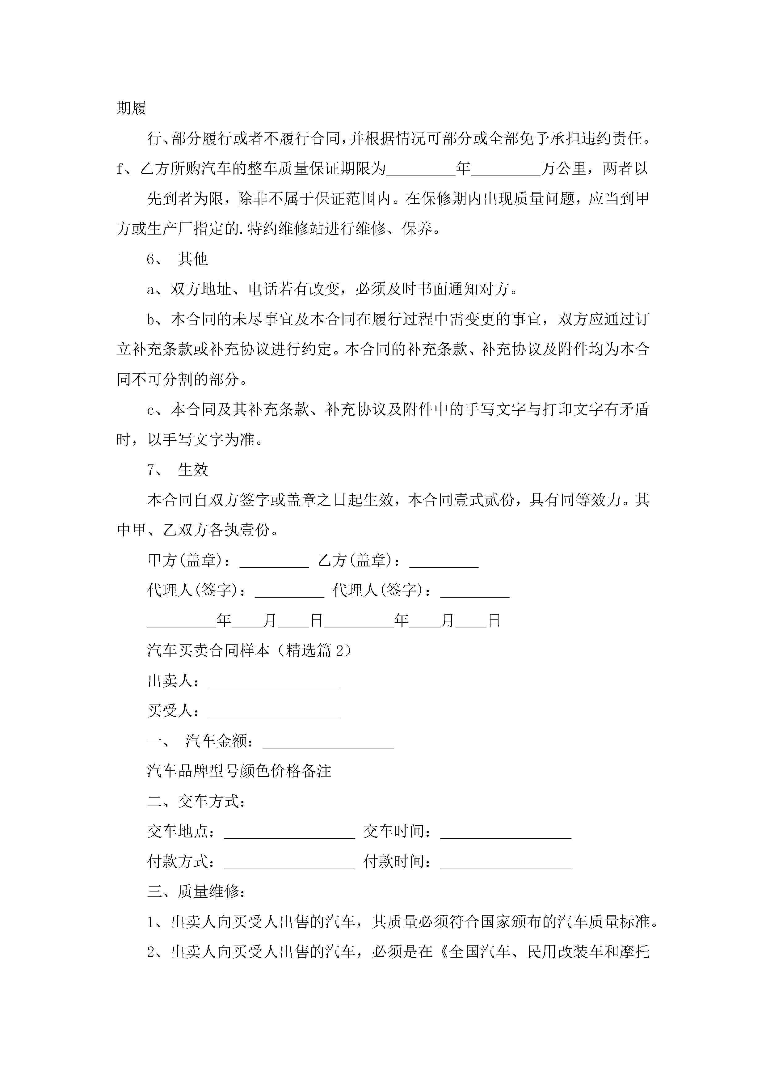 汽车买卖合同样本5篇jugei3月23日 01:39发布关注189 汽车买卖合同样本5篇此内容为付费资源,请付费后查看¥10.9 单篇文档限时特惠¥15个人会员开通企业会员开通立即下载无需登陆!可直接快捷下载单个模板付费资源© 版权声明THE ENDWord模板# 实用文档# 合同模板# 买卖合同# 汽车买卖合同样本 如有问题,可点击最底部“联系我们”联系客服 分享QQ空间微博QQ好友海报分享复制链接收藏