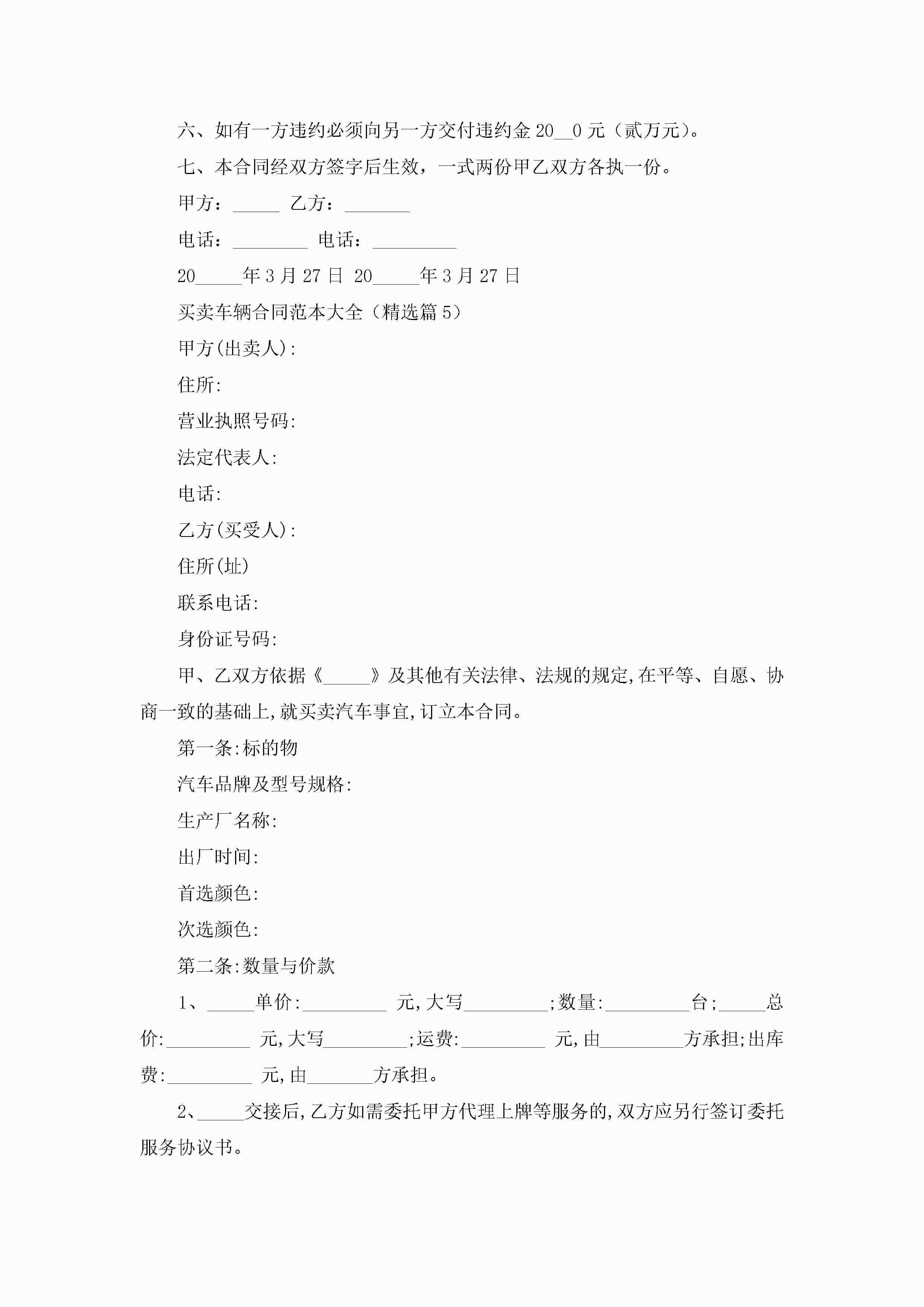 买卖车辆合同范本大全5篇jugei3月23日 01:39发布关注230 买卖车辆合同范本大全5篇此内容为付费资源,请付费后查看¥10.9 单篇文档限时特惠¥15个人会员开通企业会员开通立即下载无需登陆!可直接快捷下载单个模板付费资源© 版权声明THE ENDWord模板# 实用文档# 合同模板# 买卖合同# 买卖车辆合同范本大全 如有问题,可点击最底部“联系我们”联系客服 分享QQ空间微博QQ好友海报分享复制链接收藏
