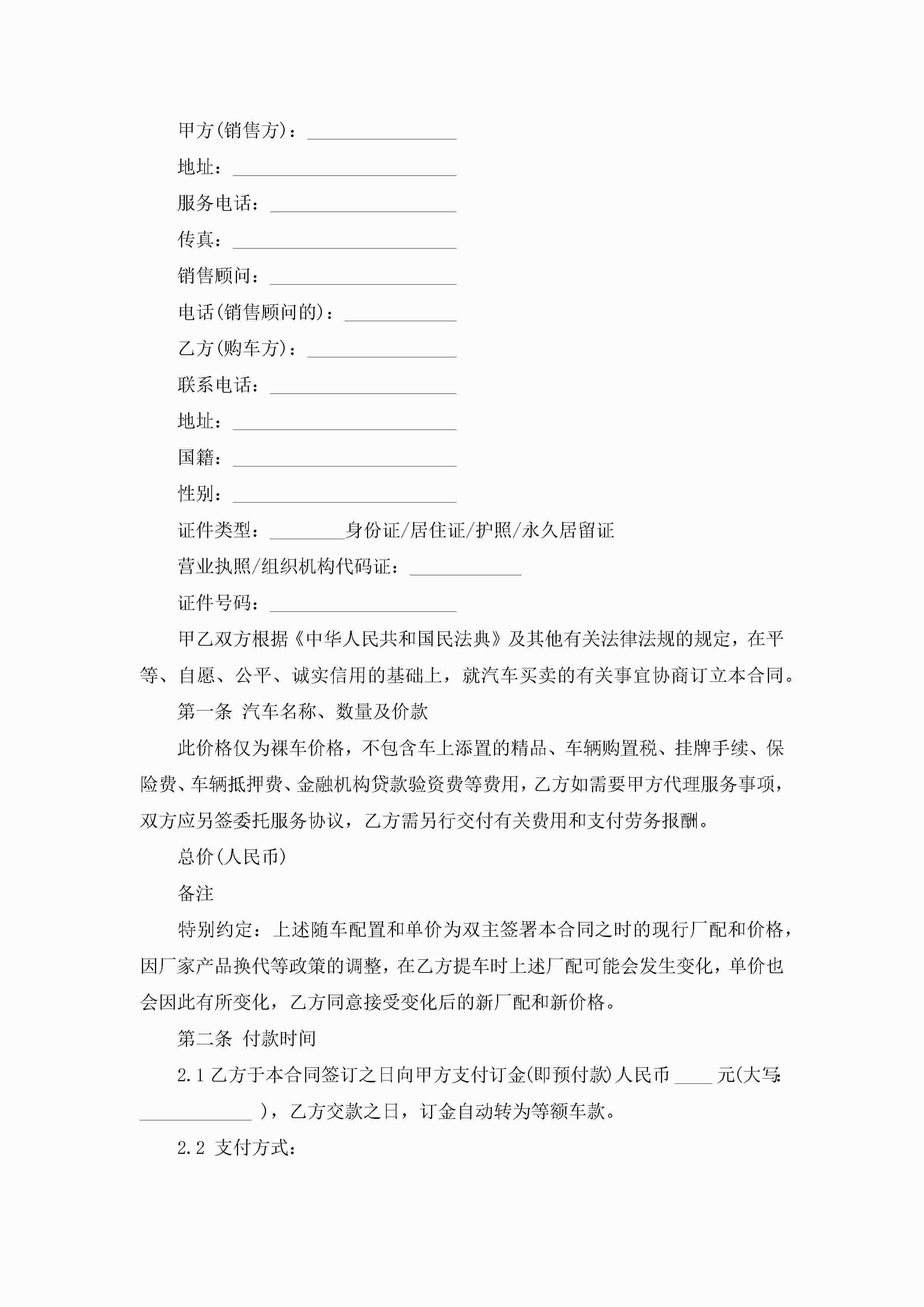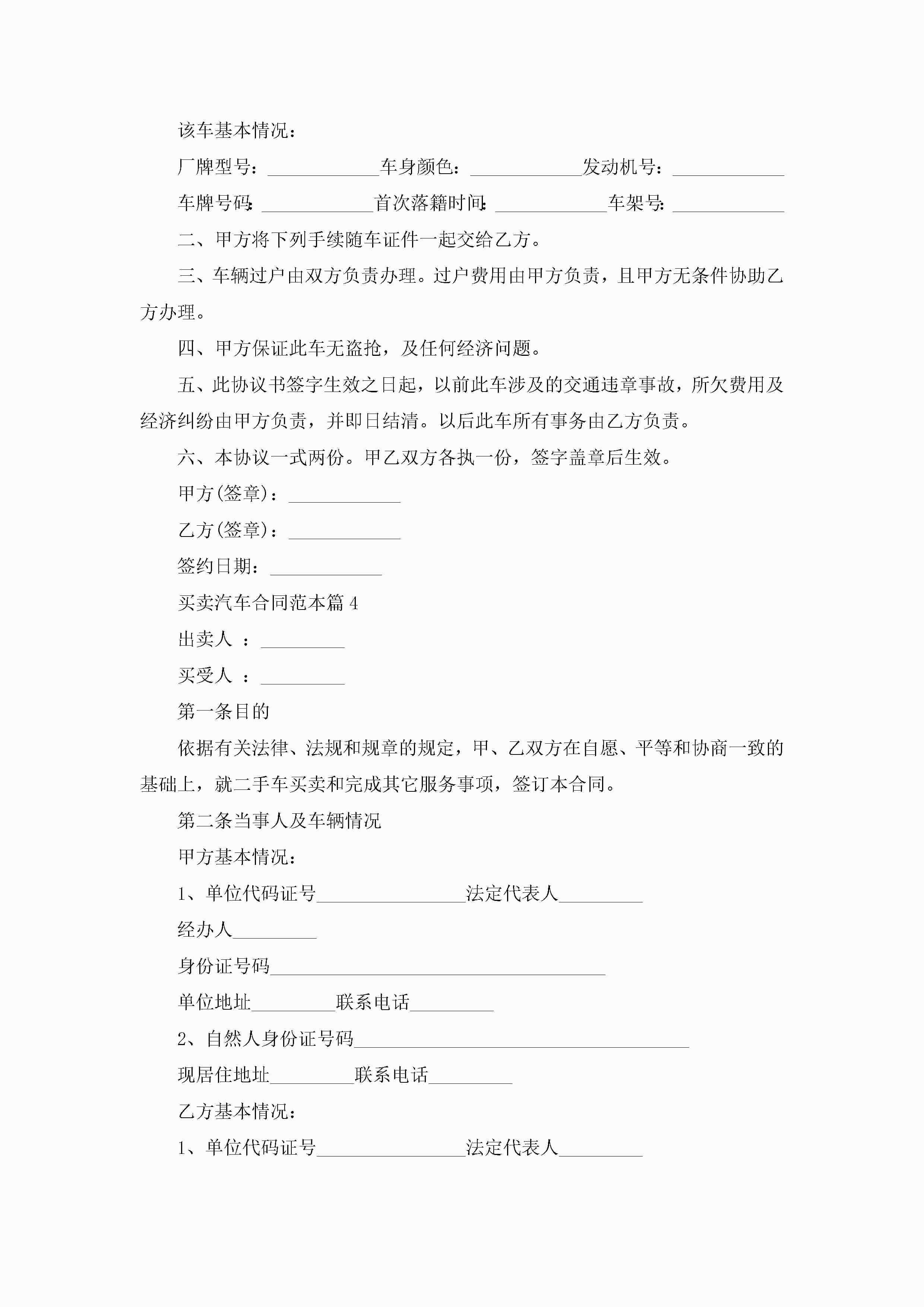 买卖汽车合同范本5篇jugei3月23日 01:39发布关注214 买卖汽车合同范本5篇此内容为付费资源,请付费后查看¥10.9 单篇文档限时特惠¥15个人会员开通企业会员开通立即下载无需登陆!可直接快捷下载单个模板付费资源© 版权声明THE ENDWord模板# 实用文档# 合同模板# 买卖合同# 买卖汽车合同范本 如有问题,可点击最底部“联系我们”联系客服 分享QQ空间微博QQ好友海报分享复制链接收藏
