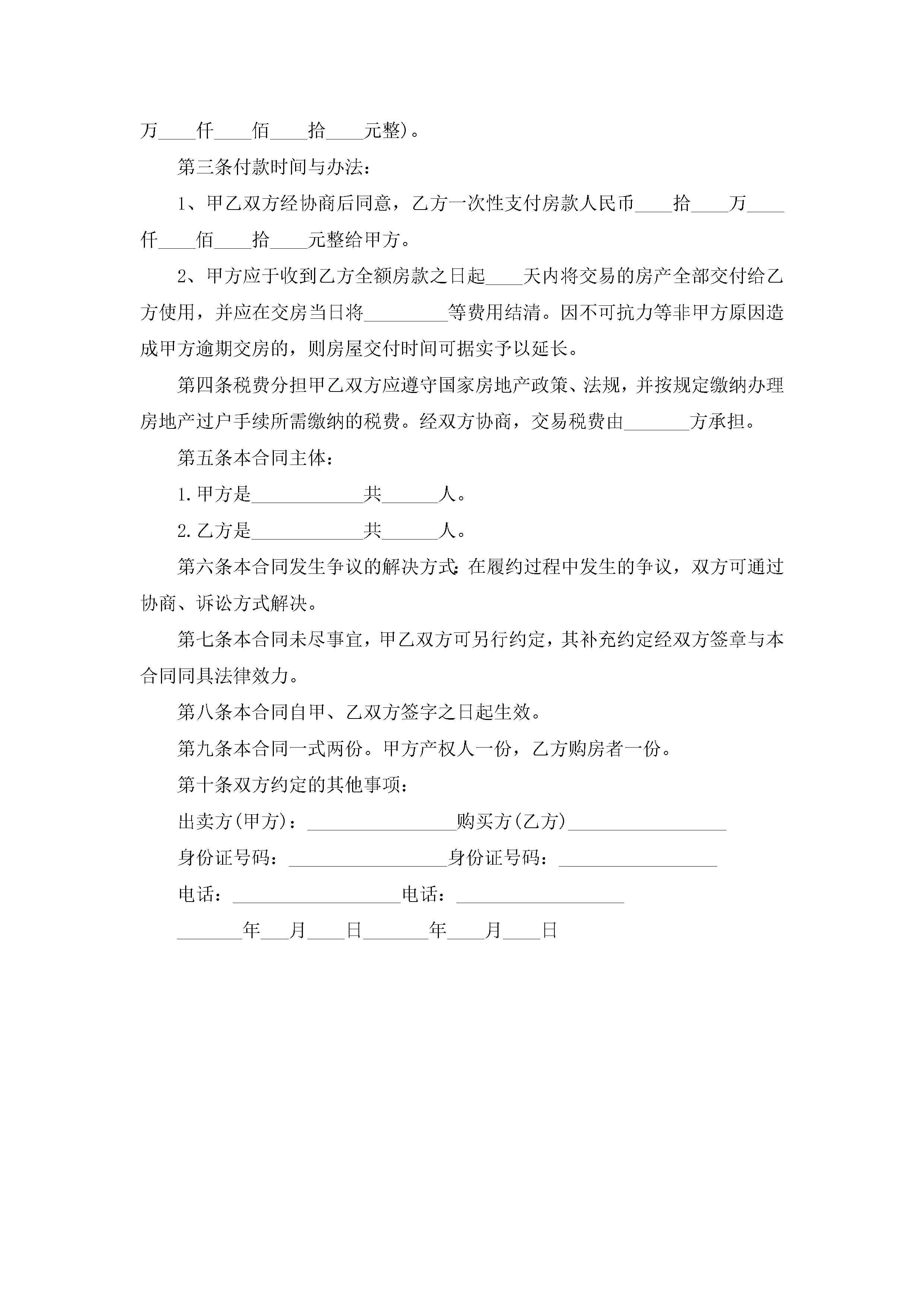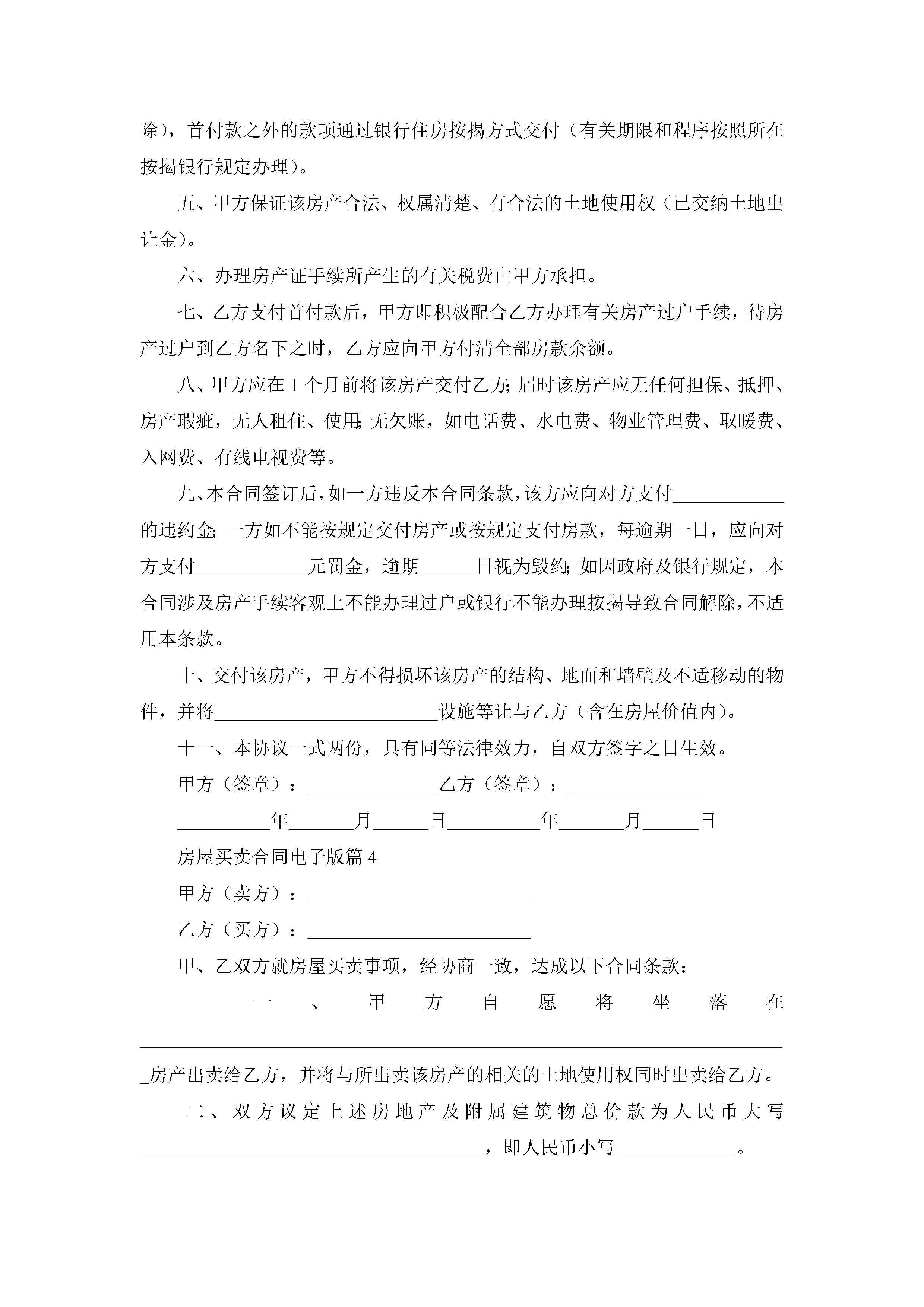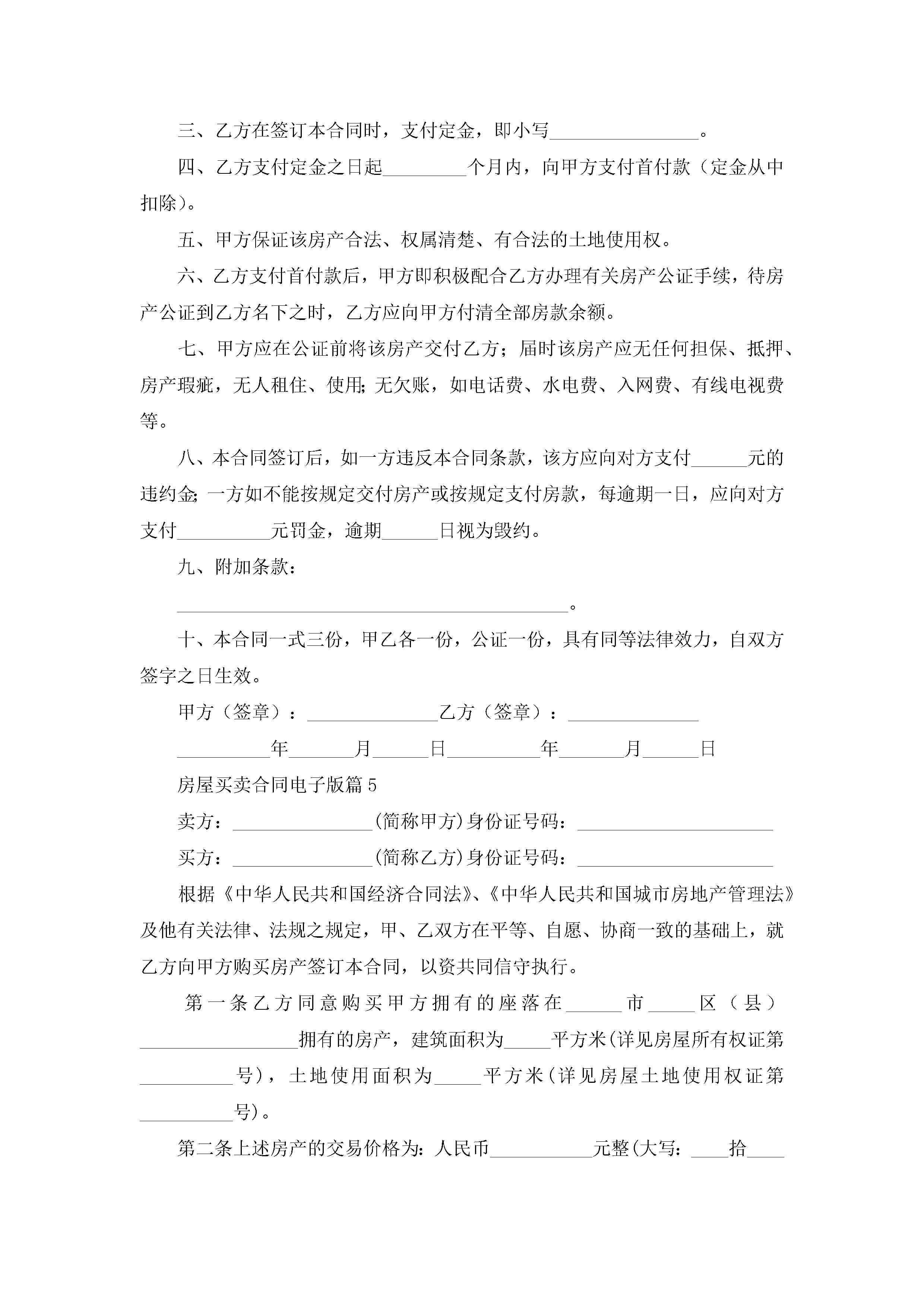 房屋买卖合同电子版5篇jugei3月23日 01:39发布关注195 房屋买卖合同电子版5篇此内容为付费资源,请付费后查看¥10.9 单篇文档限时特惠¥15个人会员开通企业会员开通立即下载无需登陆!可直接快捷下载单个模板付费资源© 版权声明THE ENDWord模板# 实用文档# 合同模板# 买卖合同# 房屋买卖合同电子版 如有问题,可点击最底部“联系我们”联系客服 分享QQ空间微博QQ好友海报分享复制链接收藏