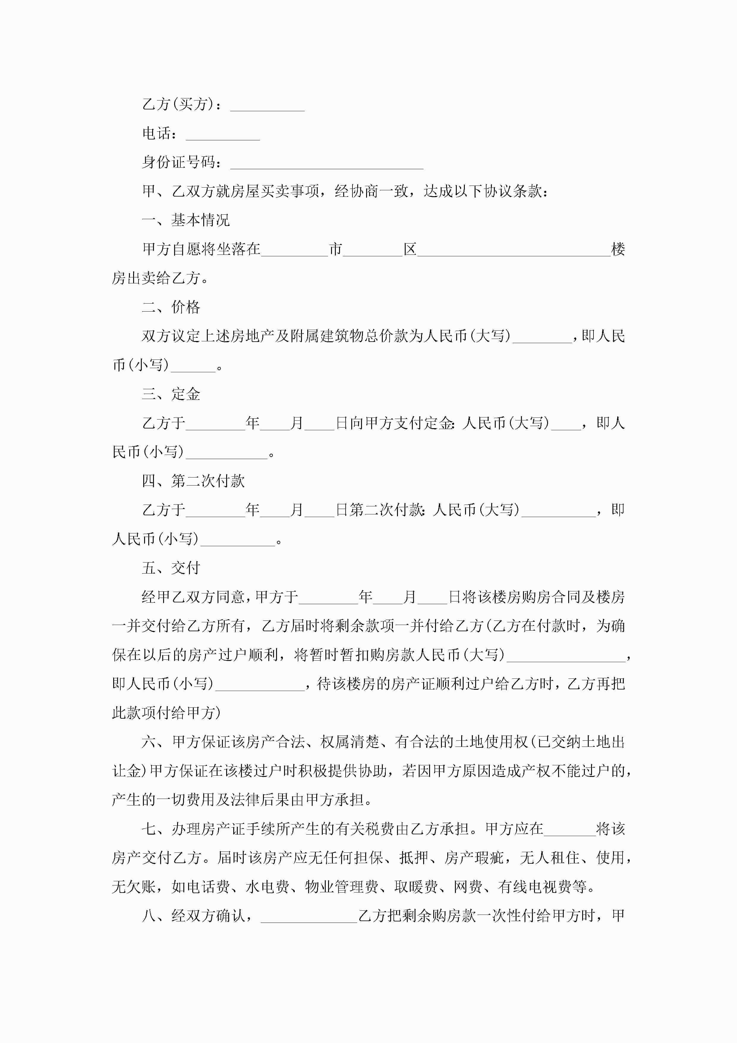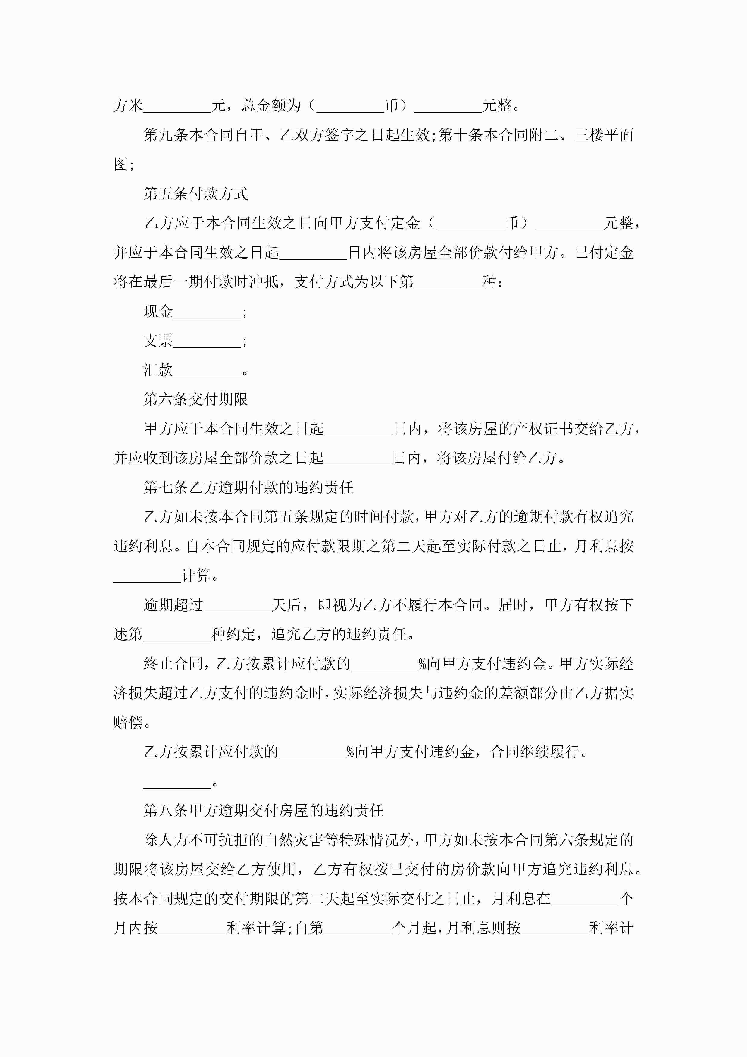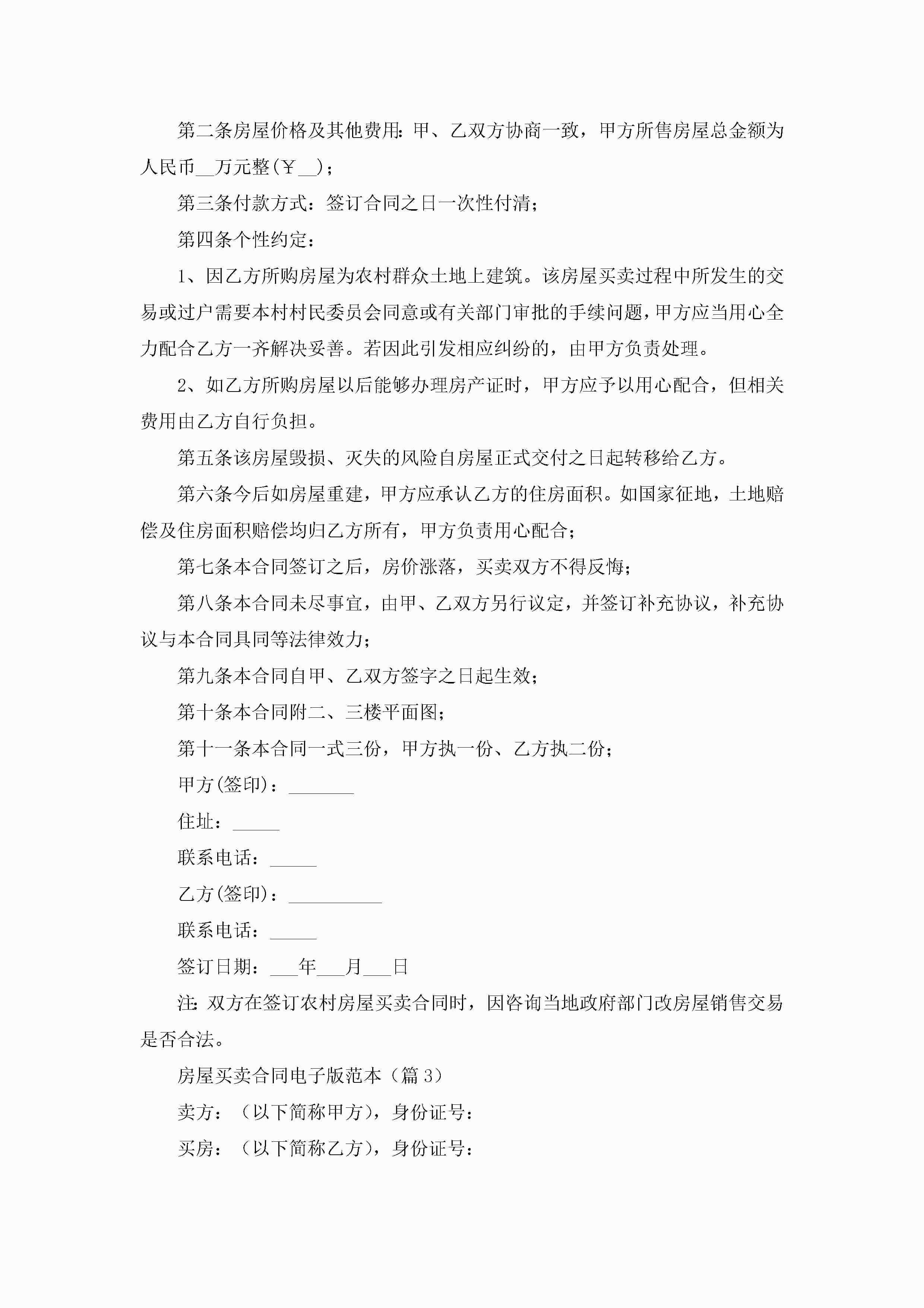 房屋买卖合同电子版范本5篇jugei3月23日 01:39发布关注376 房屋买卖合同电子版范本5篇此内容为付费资源,请付费后查看¥10.9 单篇文档限时特惠¥15个人会员开通企业会员开通立即下载无需登陆!可直接快捷下载单个模板付费资源© 版权声明THE ENDWord模板# 实用文档# 合同模板# 买卖合同# 房屋买卖合同电子版范本 如有问题,可点击最底部“联系我们”联系客服 分享QQ空间微博QQ好友海报分享复制链接收藏