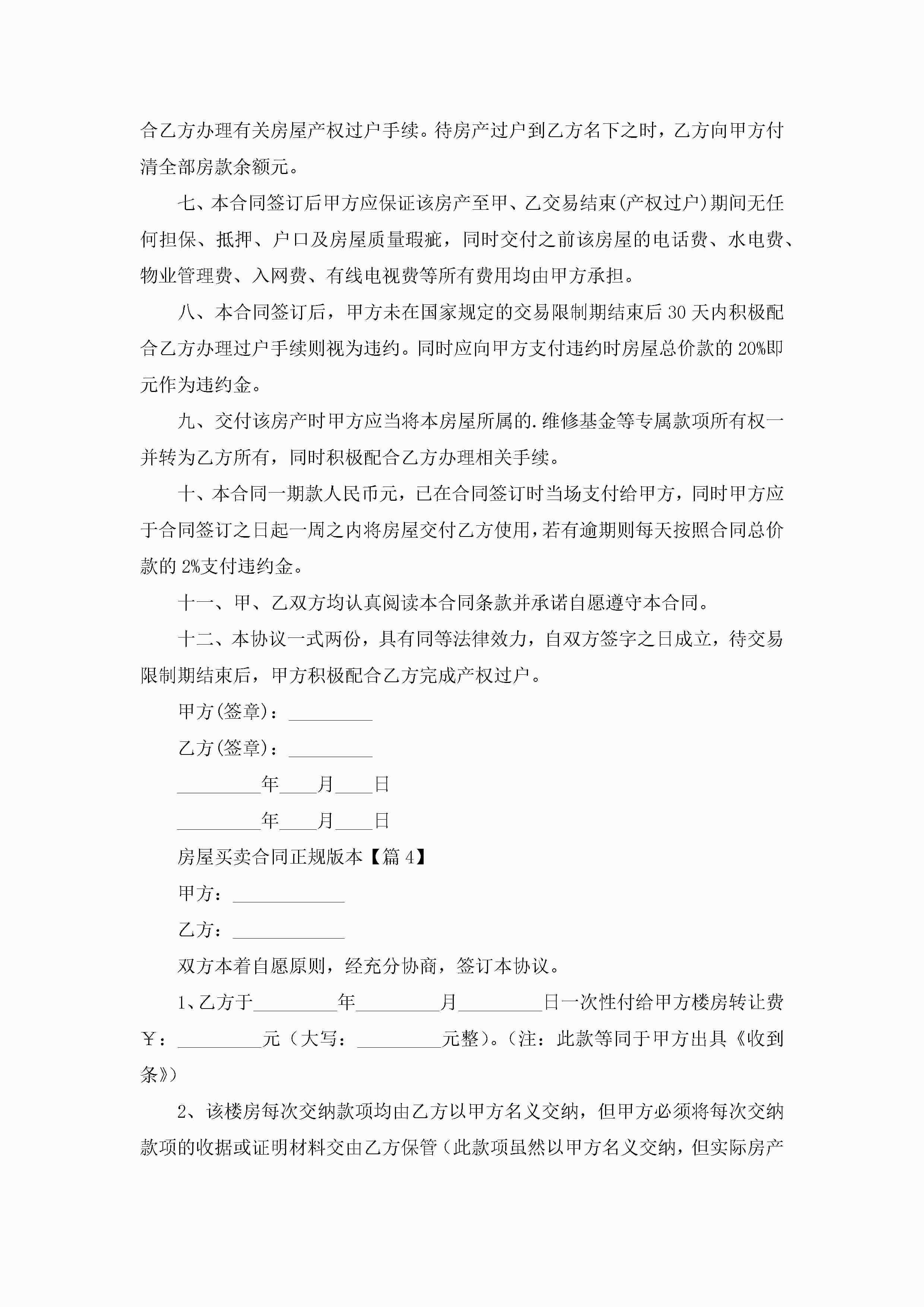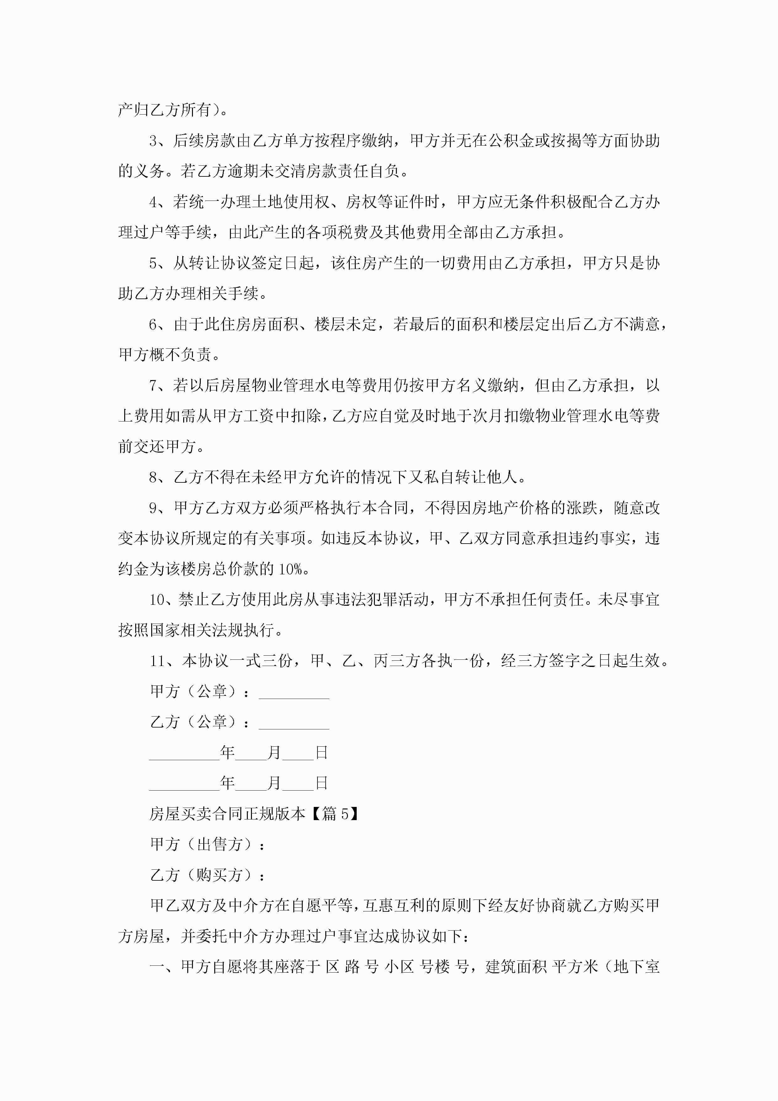 房屋买卖合同正规版本5篇jugei3月23日 01:39发布关注279 房屋买卖合同正规版本5篇此内容为付费资源,请付费后查看¥10.9 单篇文档限时特惠¥15个人会员开通企业会员开通立即下载无需登陆!可直接快捷下载单个模板付费资源© 版权声明THE ENDWord模板# 实用文档# 合同模板# 买卖合同# 房屋买卖合同正规版本 如有问题,可点击最底部“联系我们”联系客服 分享QQ空间微博QQ好友海报分享复制链接收藏