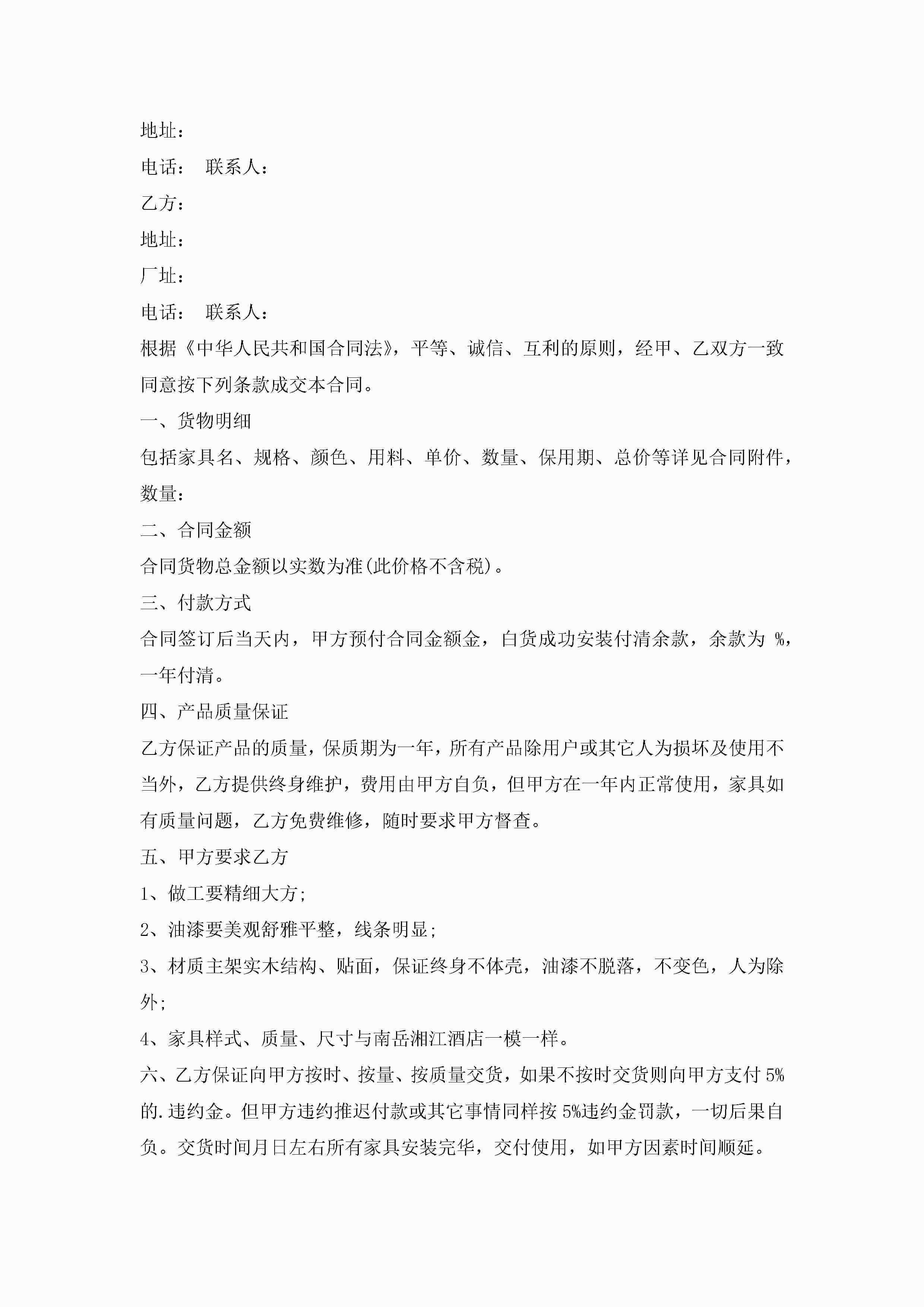年简单的家具销售合同3篇jugei3月23日 01:39发布关注189 年简单的家具销售合同3篇此内容为付费资源,请付费后查看¥10.9 单篇文档限时特惠¥15个人会员开通企业会员开通立即下载无需登陆!可直接快捷下载单个模板付费资源© 版权声明THE ENDWord模板# 实用文档# 实用模板# 合同模板# 销售合同 如有问题,可点击最底部“联系我们”联系客服 分享QQ空间微博QQ好友海报分享复制链接收藏