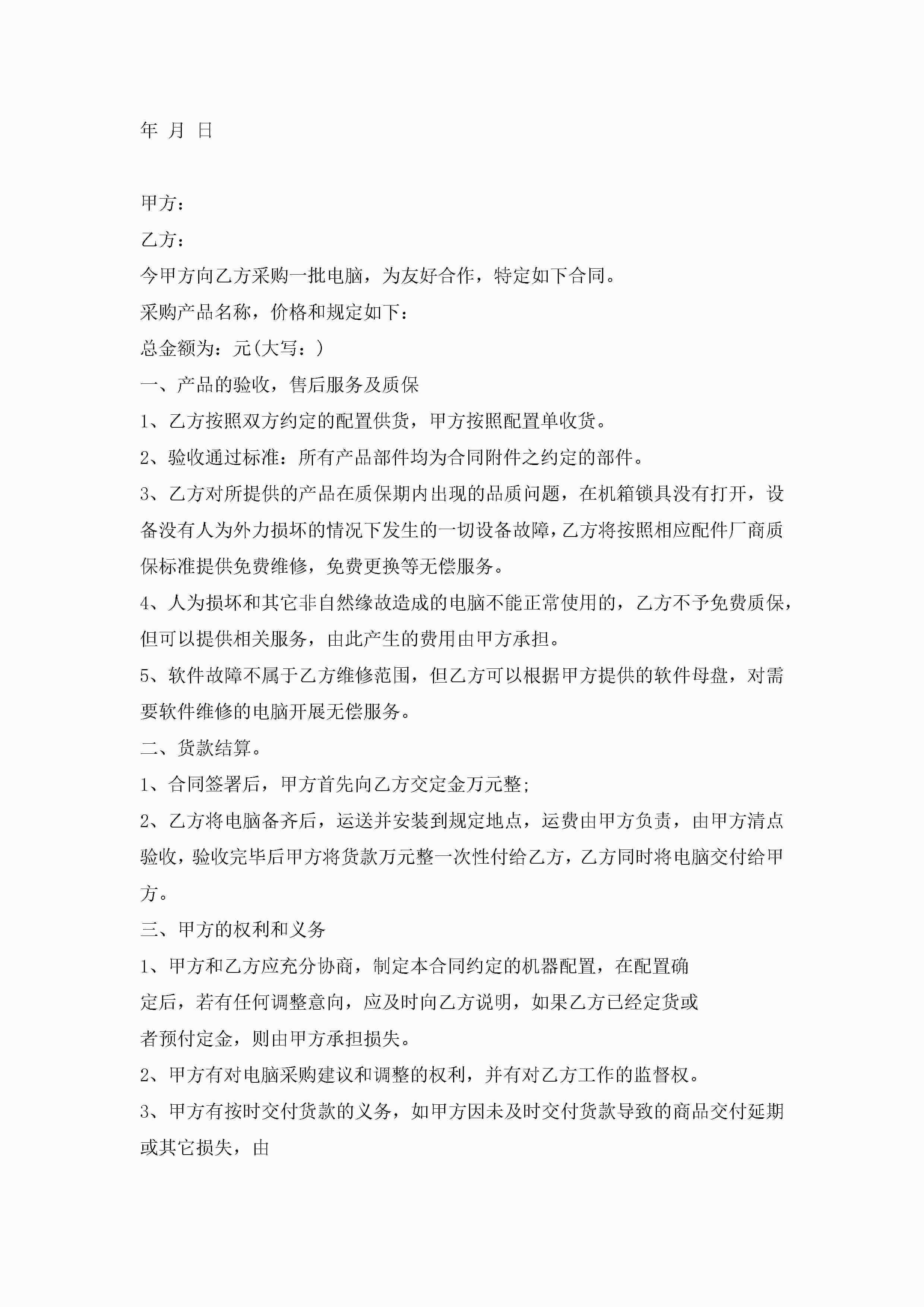 年电脑销售合同范文3篇模板jugei3月23日 01:39发布关注190 年电脑销售合同范文3篇模板此内容为付费资源,请付费后查看¥10.9 单篇文档限时特惠¥15个人会员开通企业会员开通立即下载无需登陆!可直接快捷下载单个模板付费资源© 版权声明THE ENDWord模板# 实用文档# 实用模板# 合同模板# 销售合同 如有问题,可点击最底部“联系我们”联系客服 分享QQ空间微博QQ好友海报分享复制链接收藏