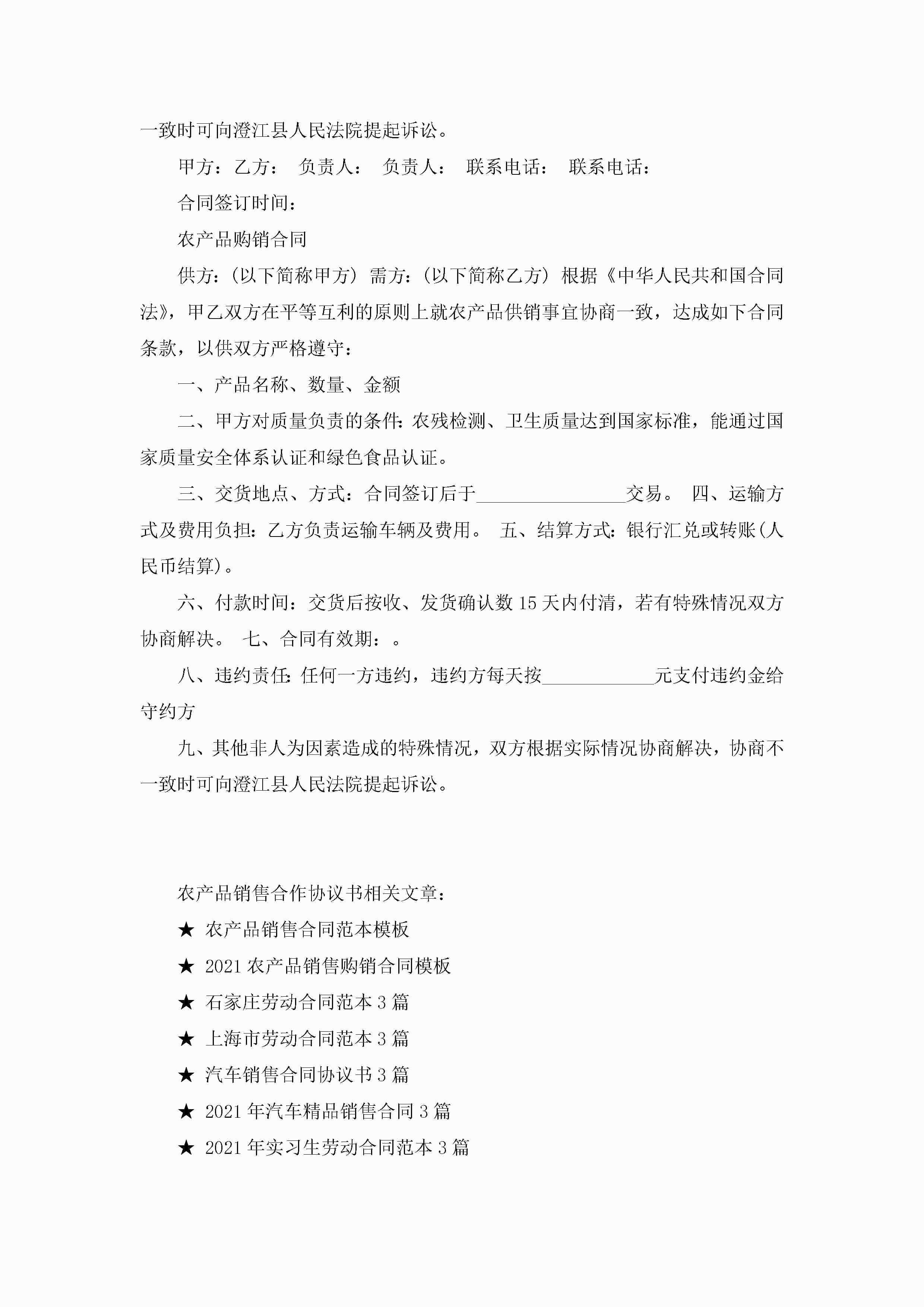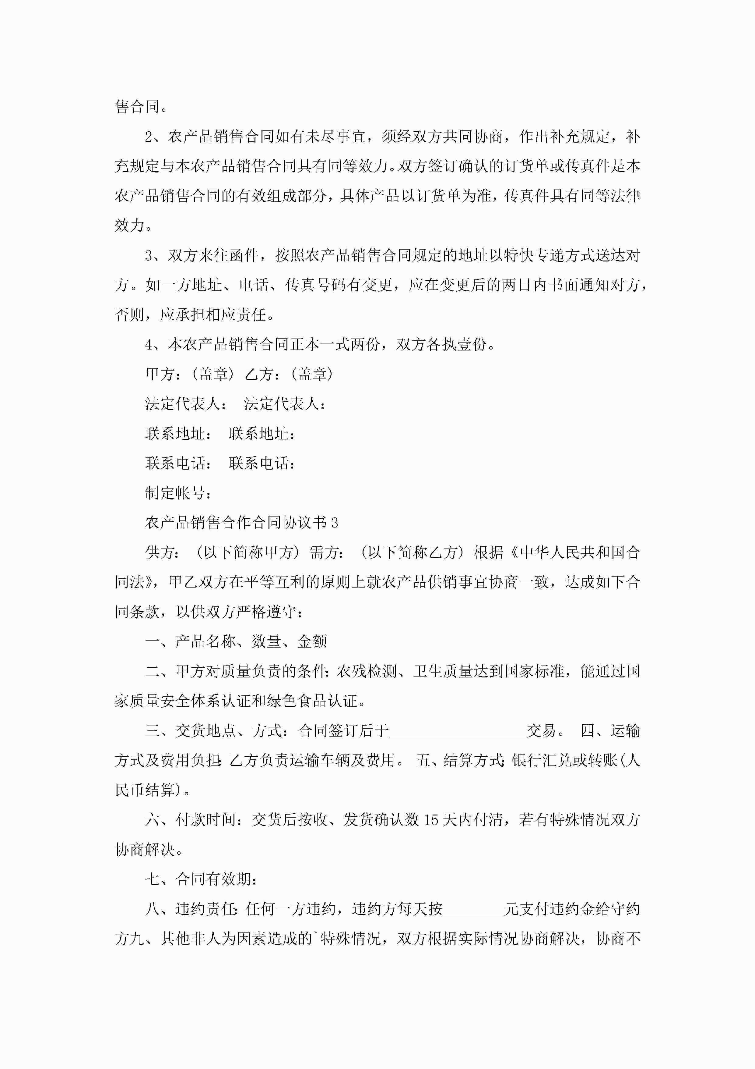 农产品销售合作合同协议书范本jugei3月23日 01:39发布关注317 农产品销售合作合同协议书范本此内容为付费资源,请付费后查看¥10.9 单篇文档限时特惠¥15个人会员开通企业会员开通立即下载无需登陆!可直接快捷下载单个模板付费资源© 版权声明THE ENDWord模板# 实用文档# 实用模板# 合同模板# 销售合同 如有问题,可点击最底部“联系我们”联系客服 分享QQ空间微博QQ好友海报分享复制链接收藏