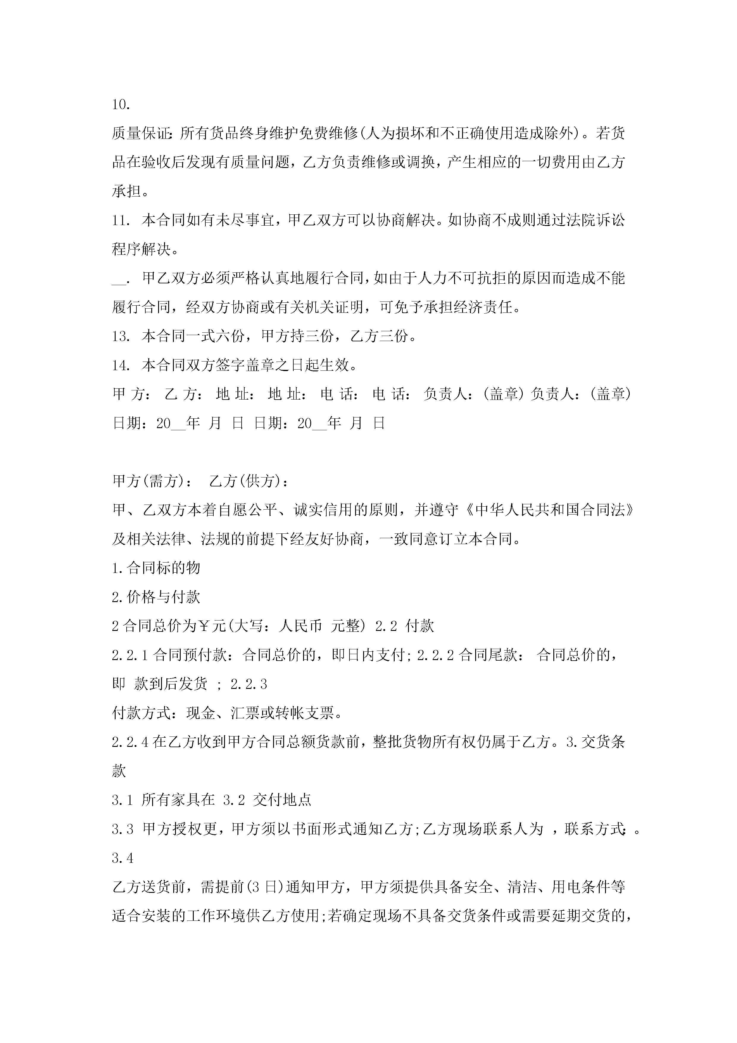家具厂销售合同模板范文jugei3月23日 01:39发布关注192 家具厂销售合同模板范文此内容为付费资源,请付费后查看¥10.9 单篇文档限时特惠¥15个人会员开通企业会员开通立即下载无需登陆!可直接快捷下载单个模板付费资源© 版权声明THE ENDWord模板# 实用文档# 实用模板# 合同模板# 销售合同 如有问题,可点击最底部“联系我们”联系客服 分享QQ空间微博QQ好友海报分享复制链接收藏