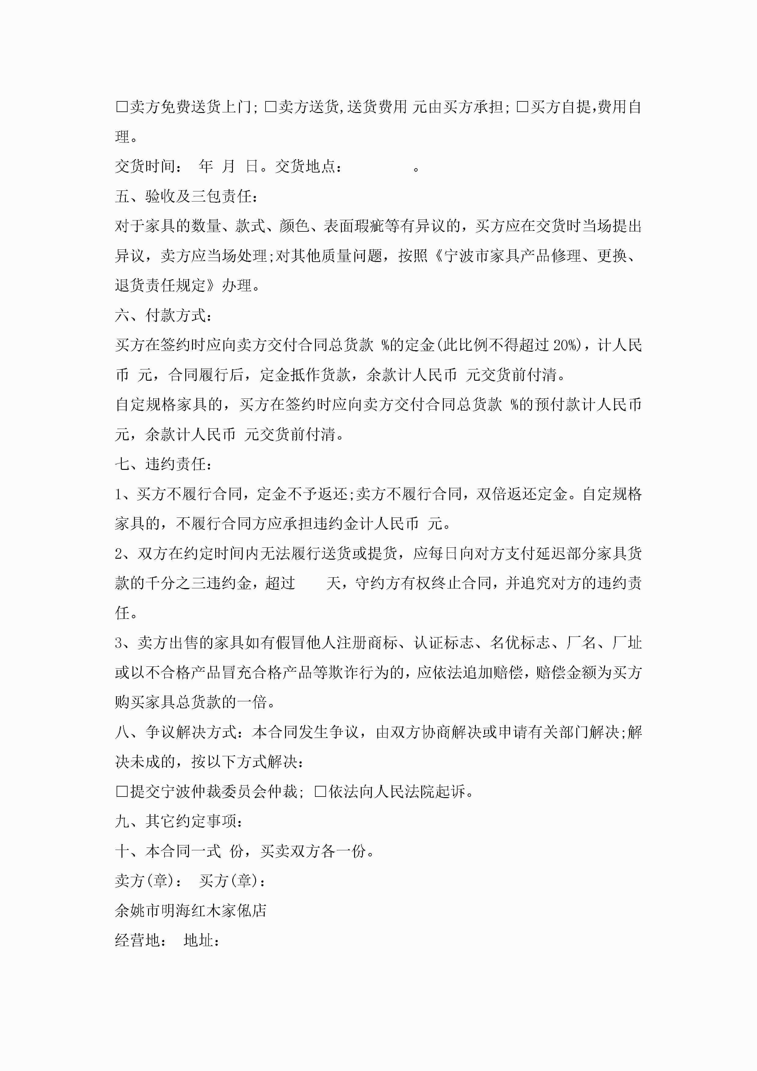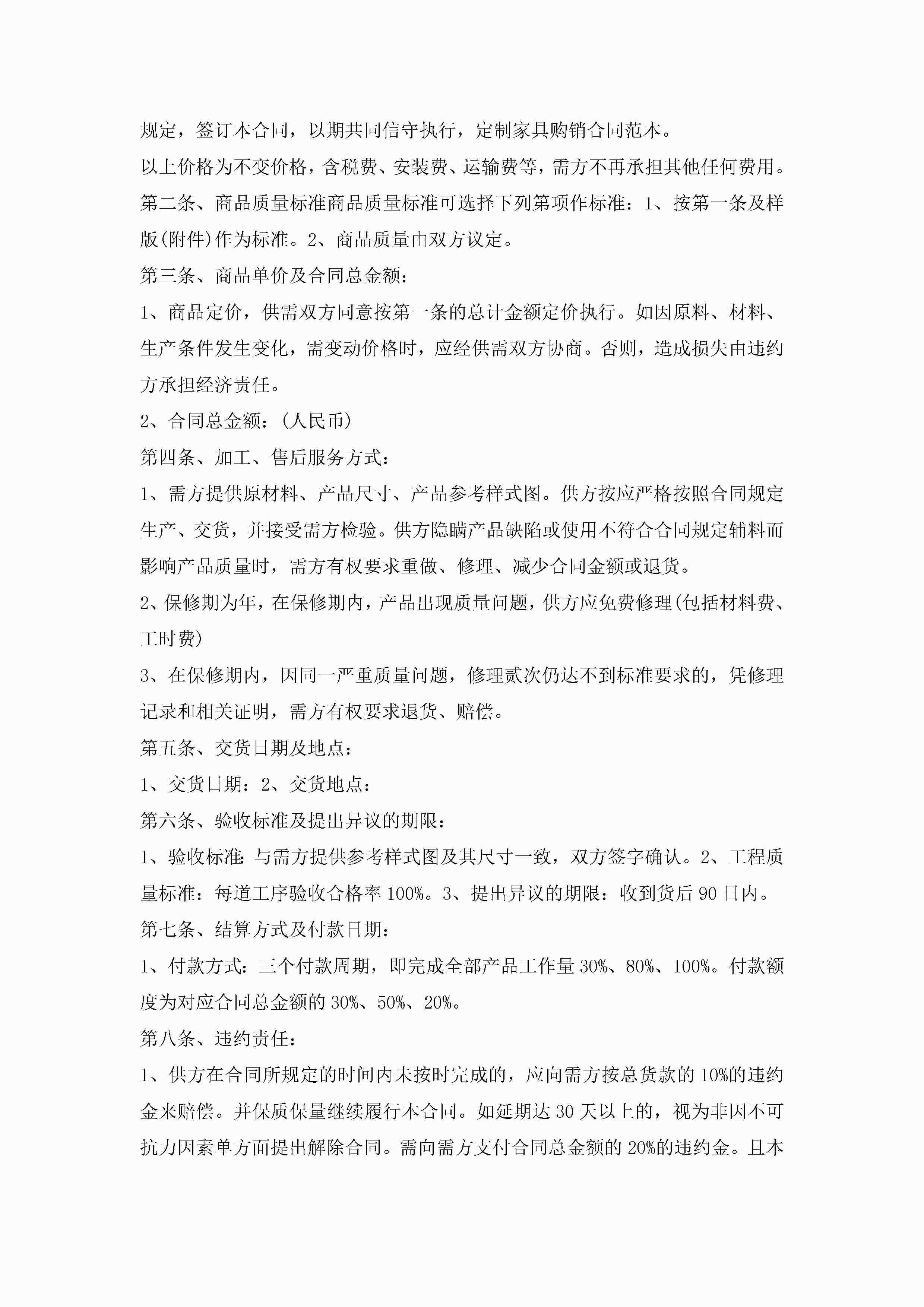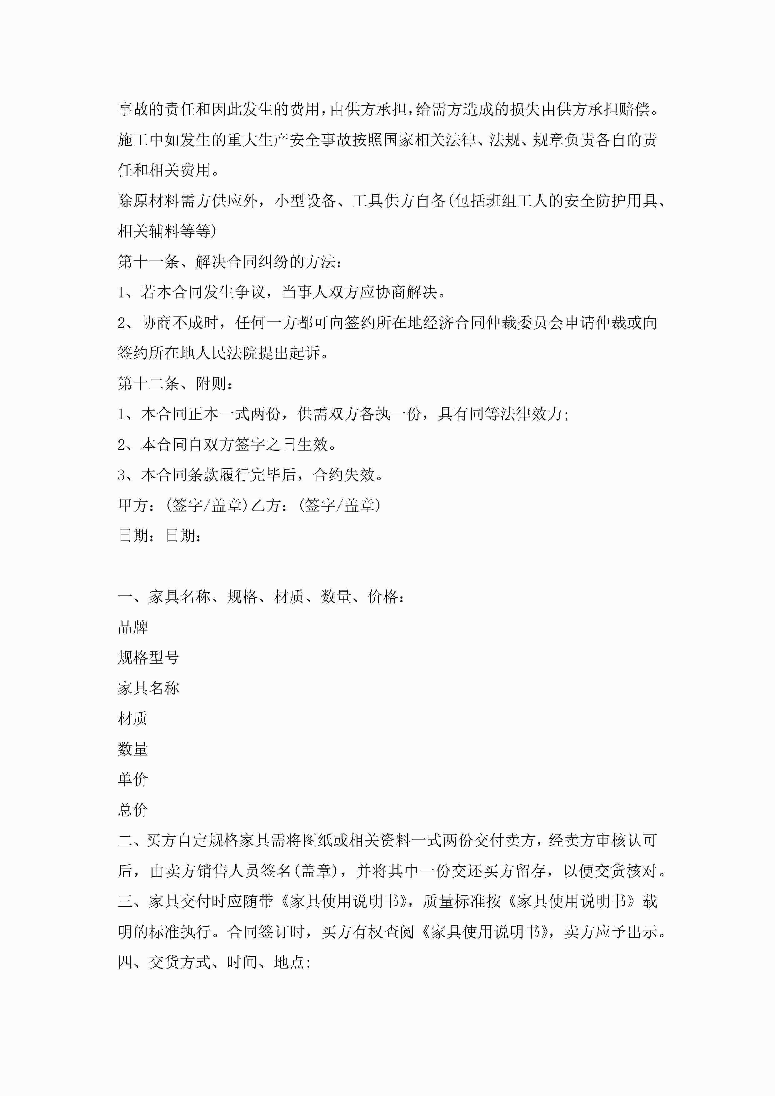 年家具销售合同模板3篇jugei3月23日 01:39发布关注189 年家具销售合同模板3篇此内容为付费资源,请付费后查看¥10.9 单篇文档限时特惠¥15个人会员开通企业会员开通立即下载无需登陆!可直接快捷下载单个模板付费资源© 版权声明THE ENDWord模板# 实用文档# 实用模板# 合同模板# 销售合同 如有问题,可点击最底部“联系我们”联系客服 分享QQ空间微博QQ好友海报分享复制链接收藏
