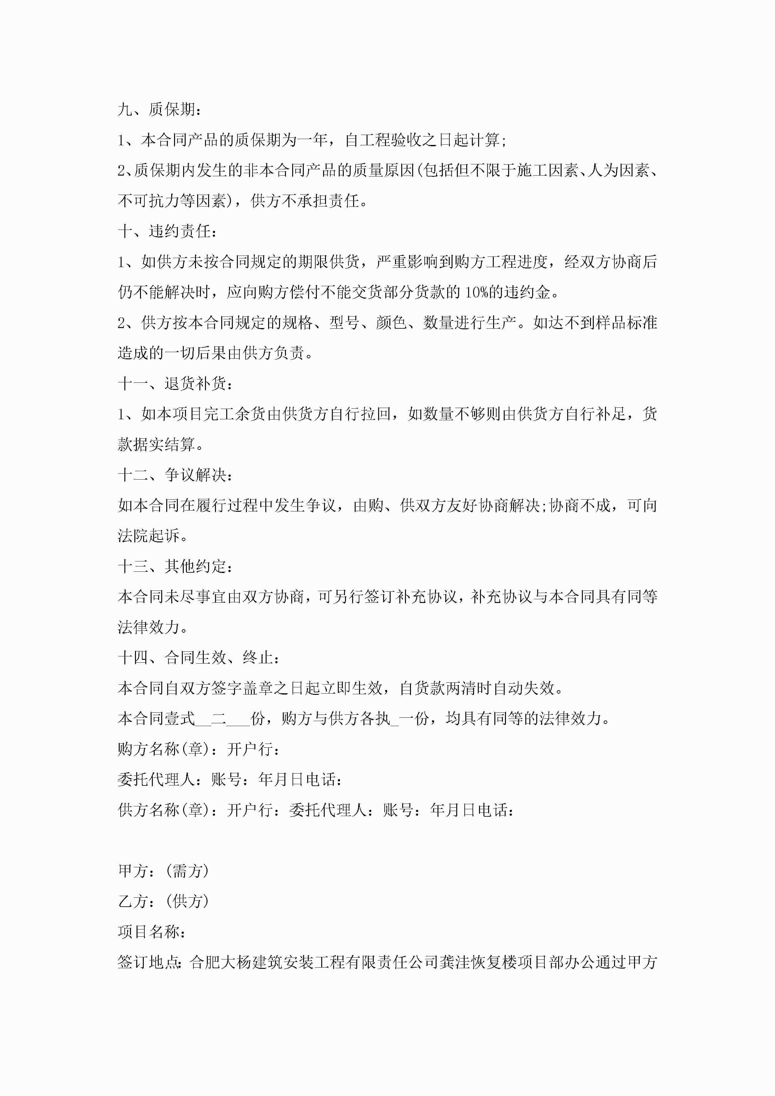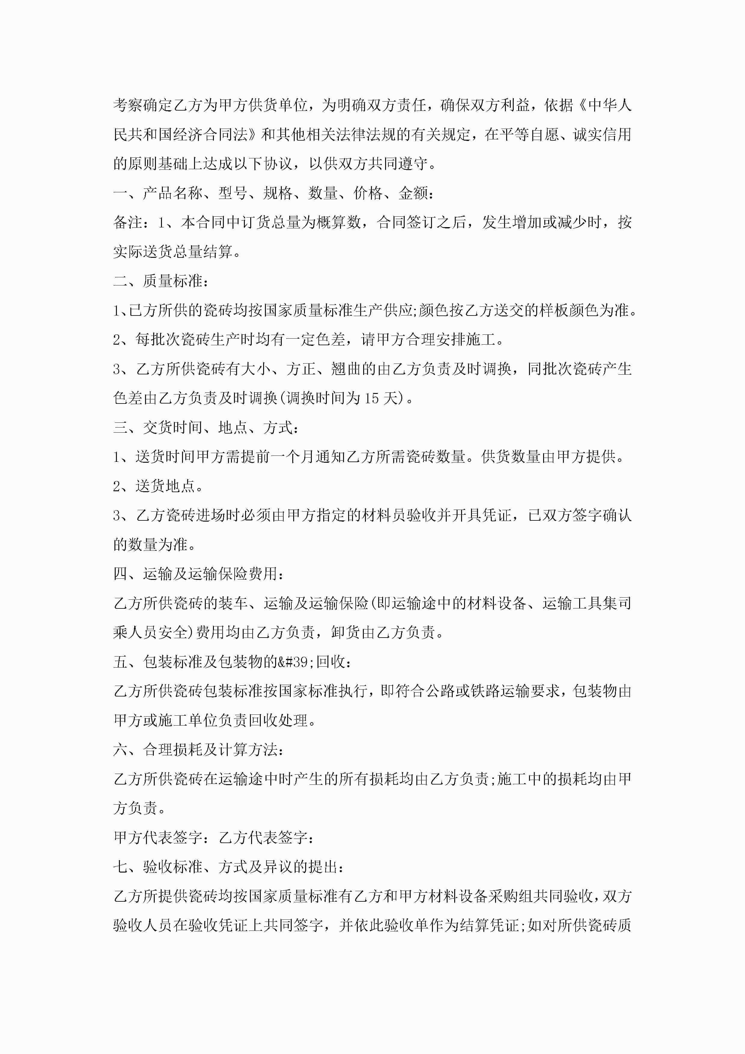 瓷砖产品采购销售合同5篇jugei3月23日 01:39发布关注254 瓷砖产品采购销售合同5篇此内容为付费资源,请付费后查看¥10.9 单篇文档限时特惠¥15个人会员开通企业会员开通立即下载无需登陆!可直接快捷下载单个模板付费资源© 版权声明THE ENDWord模板# 实用文档# 实用模板# 合同模板# 销售合同 如有问题,可点击最底部“联系我们”联系客服 分享QQ空间微博QQ好友海报分享复制链接收藏
