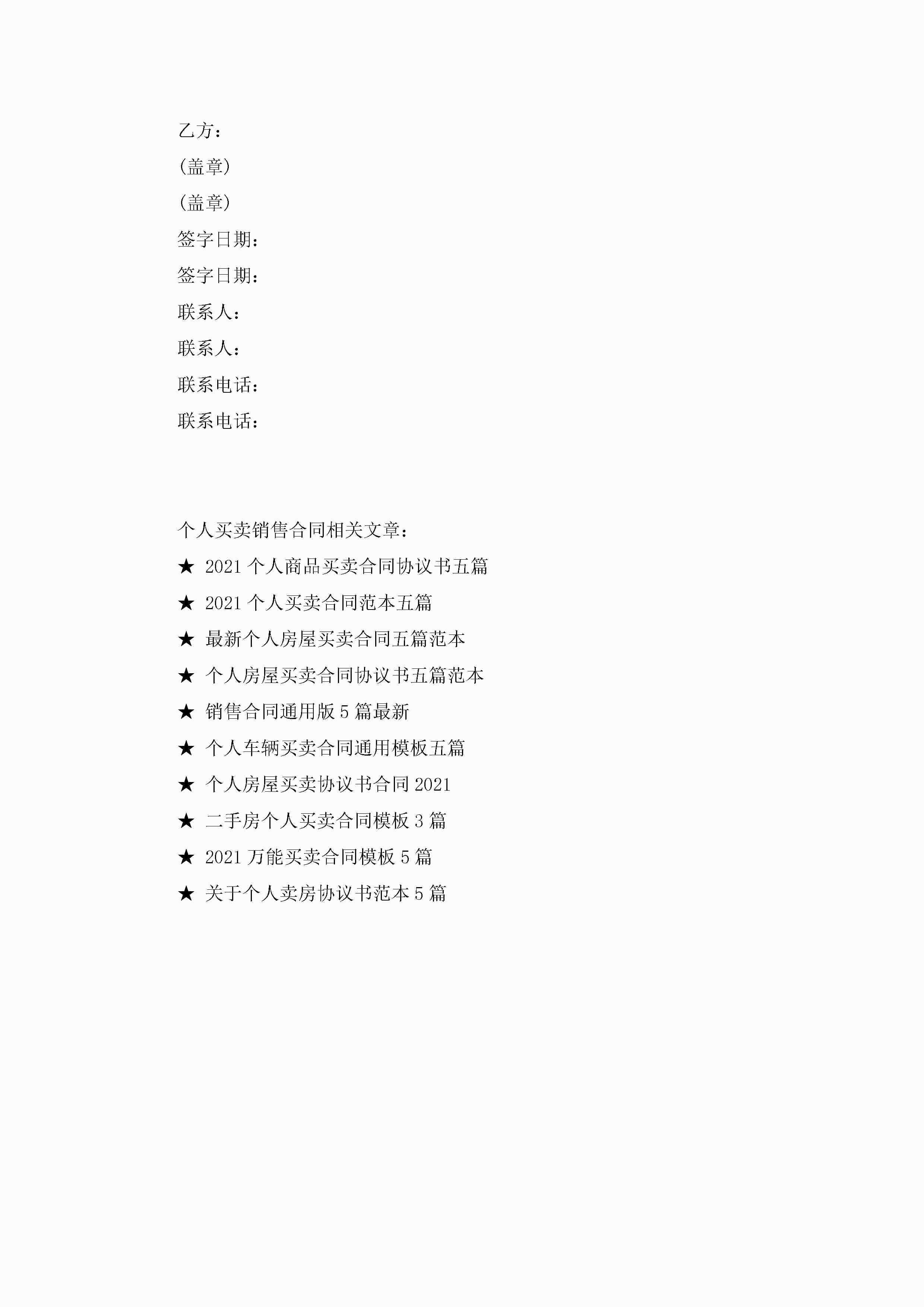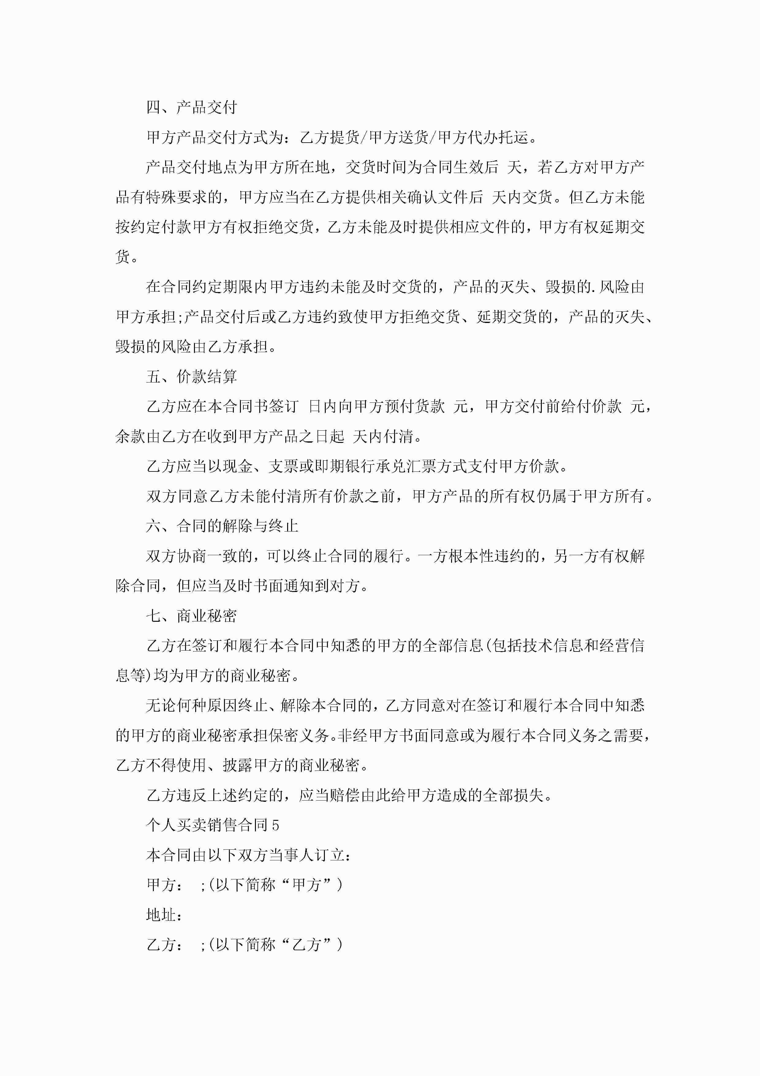 个人买卖销售合同5篇jugei3月23日 01:39发布关注188 个人买卖销售合同5篇此内容为付费资源,请付费后查看¥10.9 单篇文档限时特惠¥15个人会员开通企业会员开通立即下载无需登陆!可直接快捷下载单个模板付费资源© 版权声明THE ENDWord模板# 实用文档# 实用模板# 合同模板# 销售合同 如有问题,可点击最底部“联系我们”联系客服 分享QQ空间微博QQ好友海报分享复制链接收藏
