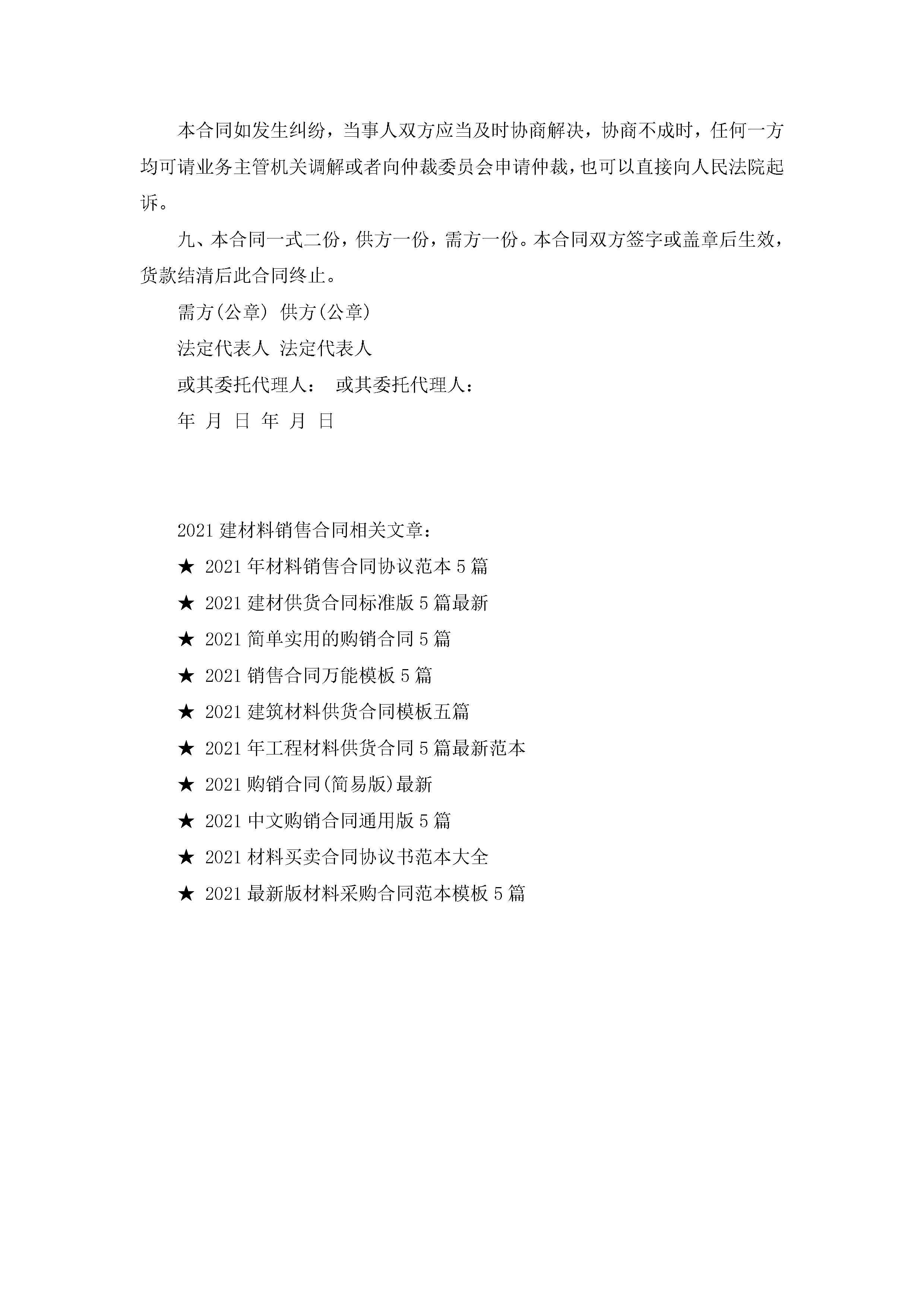 建材料销售合同5篇jugei3月23日 01:39发布关注184 建材料销售合同5篇此内容为付费资源,请付费后查看¥10.9 单篇文档限时特惠¥15个人会员开通企业会员开通立即下载无需登陆!可直接快捷下载单个模板付费资源© 版权声明THE ENDWord模板# 实用文档# 实用模板# 合同模板# 销售合同 如有问题,可点击最底部“联系我们”联系客服 分享QQ空间微博QQ好友海报分享复制链接收藏
