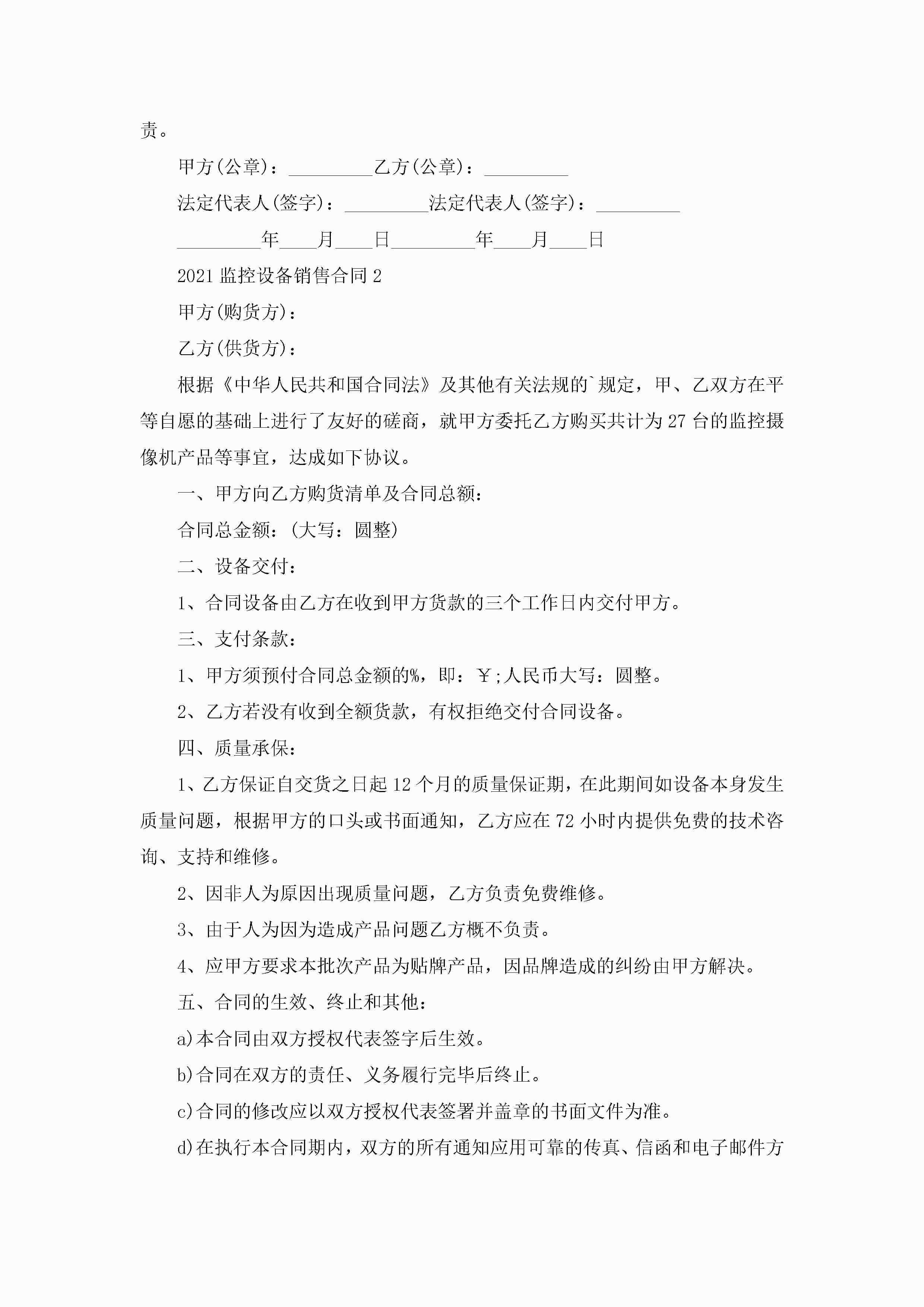 监控设备销售合同5篇jugei3月23日 01:39发布关注207 监控设备销售合同5篇此内容为付费资源,请付费后查看¥10.9 单篇文档限时特惠¥15个人会员开通企业会员开通立即下载无需登陆!可直接快捷下载单个模板付费资源© 版权声明THE ENDWord模板# 实用文档# 实用模板# 合同模板# 销售合同 如有问题,可点击最底部“联系我们”联系客服 分享QQ空间微博QQ好友海报分享复制链接收藏