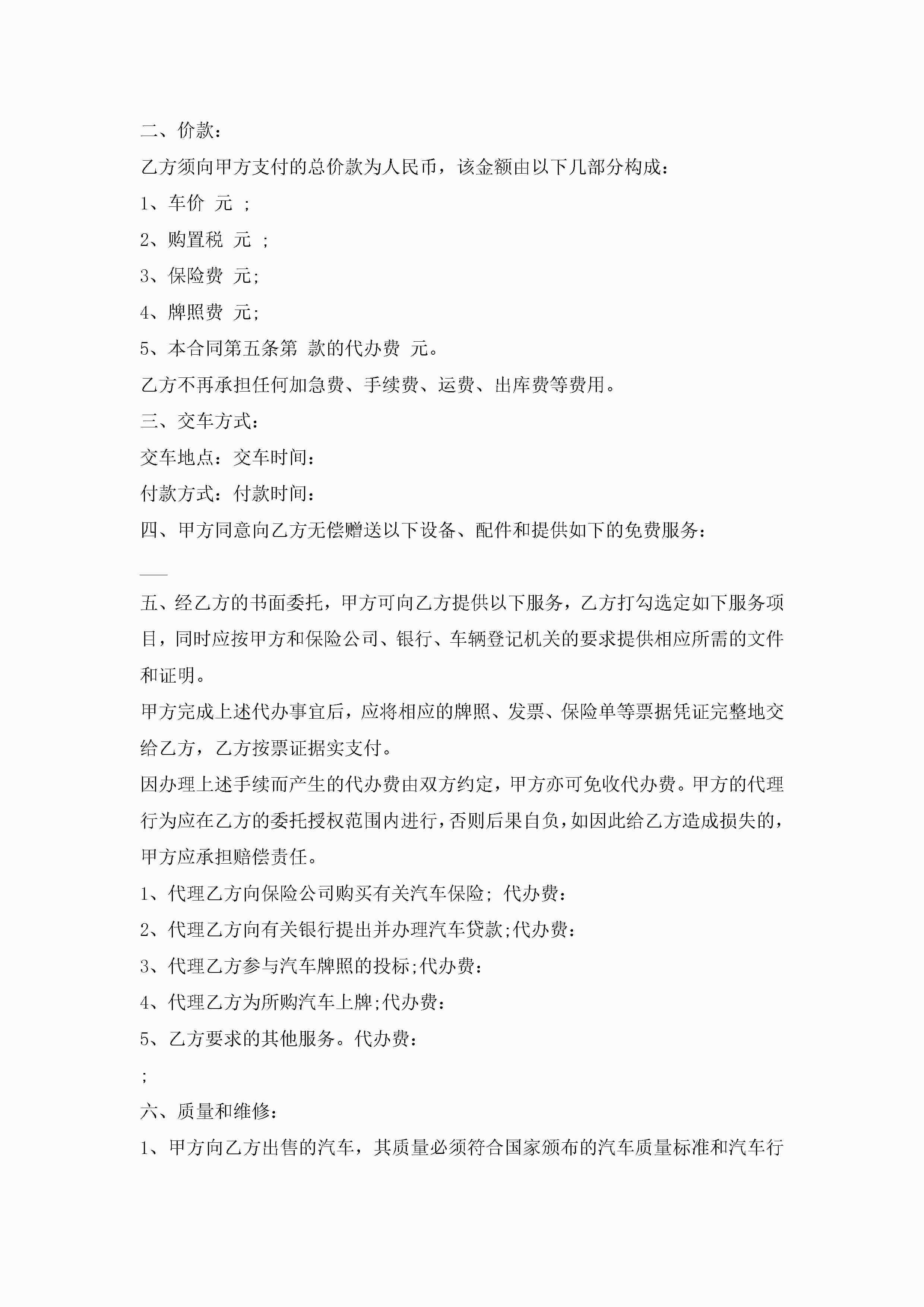 汽车销售合同模板3篇jugei3月23日 01:39发布关注208 汽车销售合同模板3篇此内容为付费资源,请付费后查看¥10.9 单篇文档限时特惠¥15个人会员开通企业会员开通立即下载无需登陆!可直接快捷下载单个模板付费资源© 版权声明THE ENDWord模板# 实用文档# 实用模板# 合同模板# 销售合同 如有问题,可点击最底部“联系我们”联系客服 分享QQ空间微博QQ好友海报分享复制链接收藏