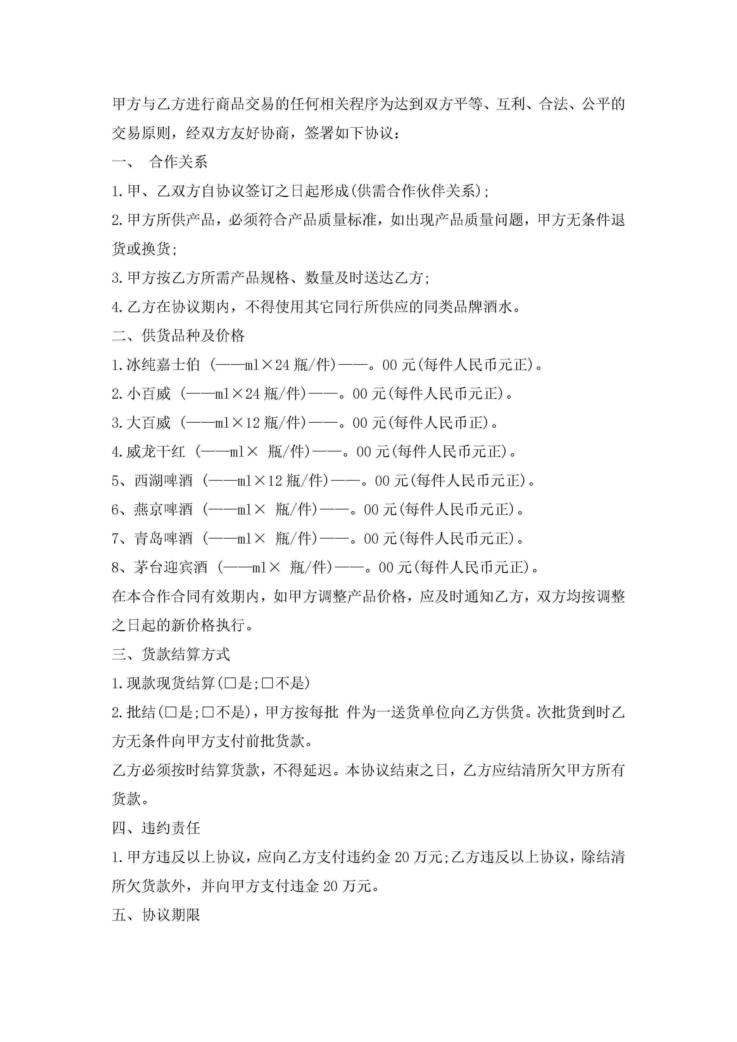 酒类销售合同范本模板3篇jugei3月23日 01:39发布关注190 酒类销售合同范本模板3篇此内容为付费资源,请付费后查看¥10.9 单篇文档限时特惠¥15个人会员开通企业会员开通立即下载无需登陆!可直接快捷下载单个模板付费资源© 版权声明THE ENDWord模板# 实用文档# 实用模板# 合同模板# 销售合同 如有问题,可点击最底部“联系我们”联系客服 分享QQ空间微博QQ好友海报分享复制链接收藏