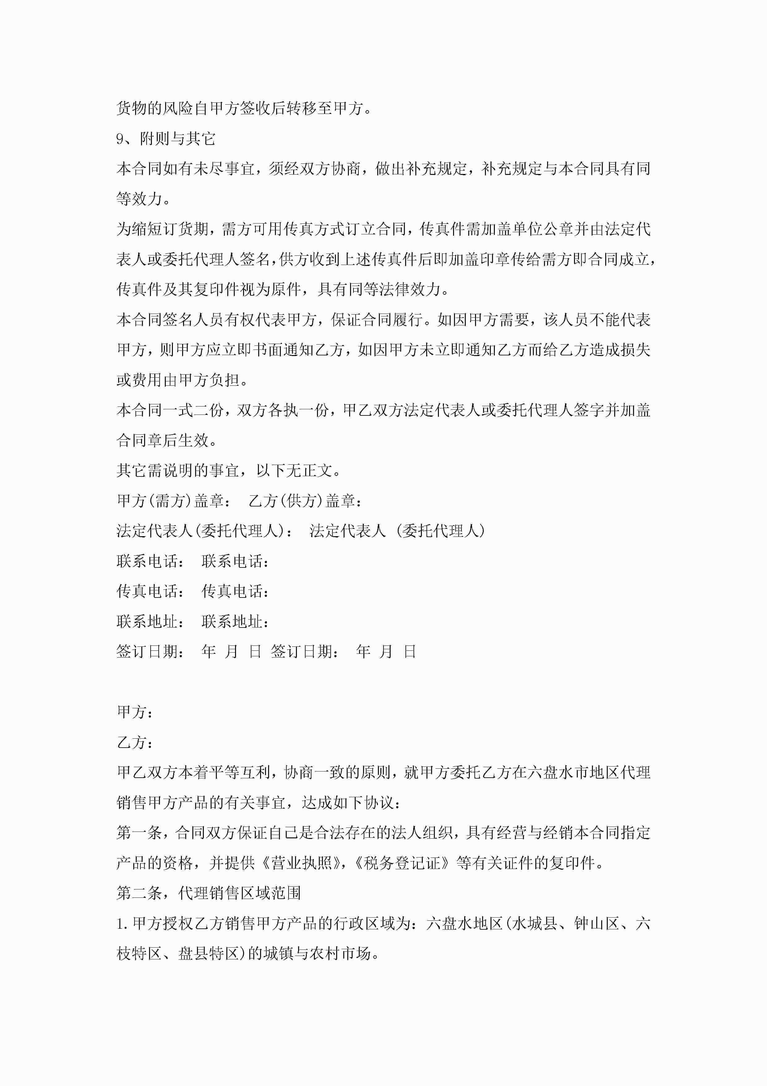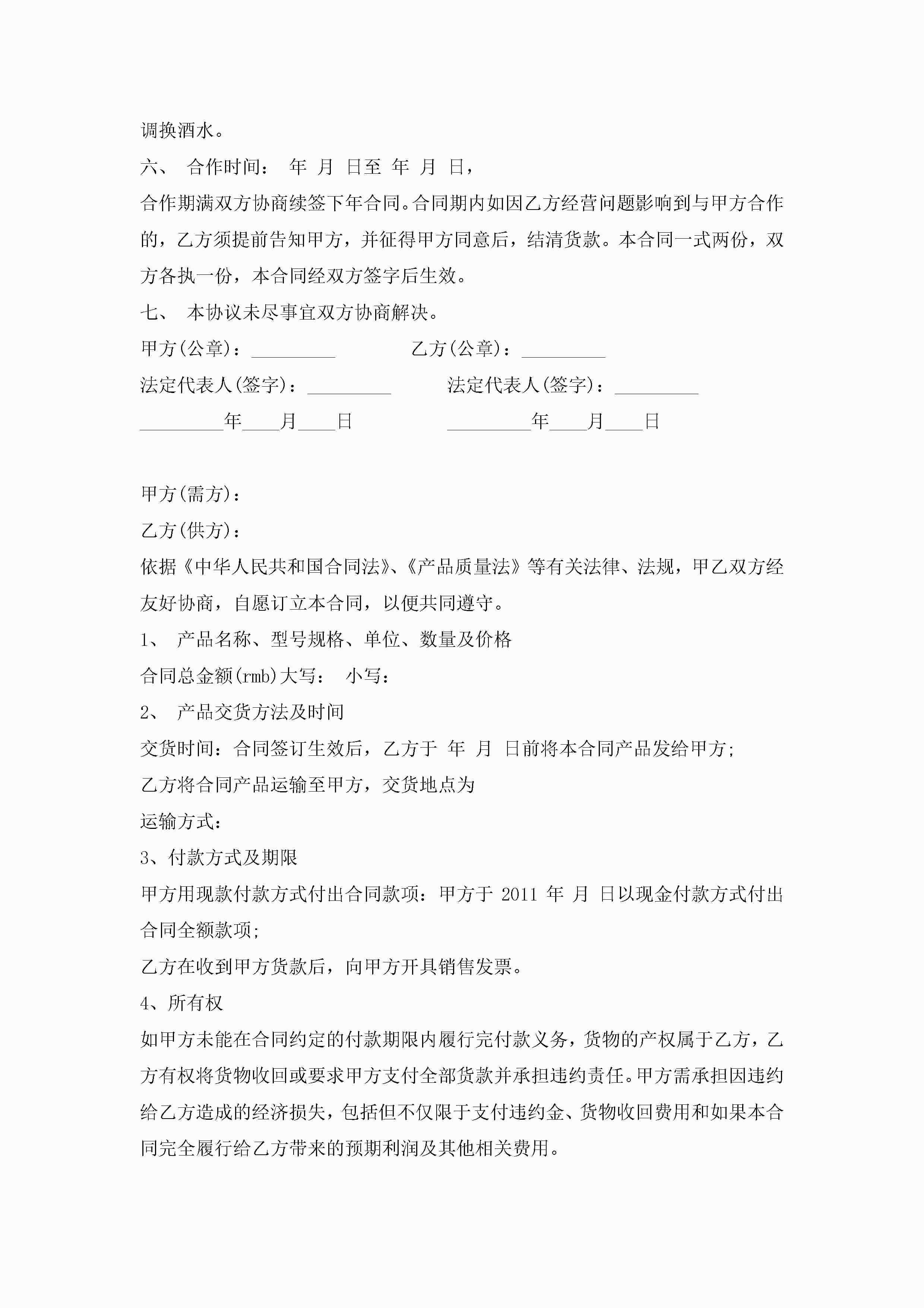 酒类销售代理合同模板3篇jugei3月23日 01:39发布关注184 酒类销售代理合同模板3篇此内容为付费资源,请付费后查看¥10.9 单篇文档限时特惠¥15个人会员开通企业会员开通立即下载无需登陆!可直接快捷下载单个模板付费资源© 版权声明THE ENDWord模板# 实用文档# 实用模板# 合同模板# 销售合同 如有问题,可点击最底部“联系我们”联系客服 分享QQ空间微博QQ好友海报分享复制链接收藏