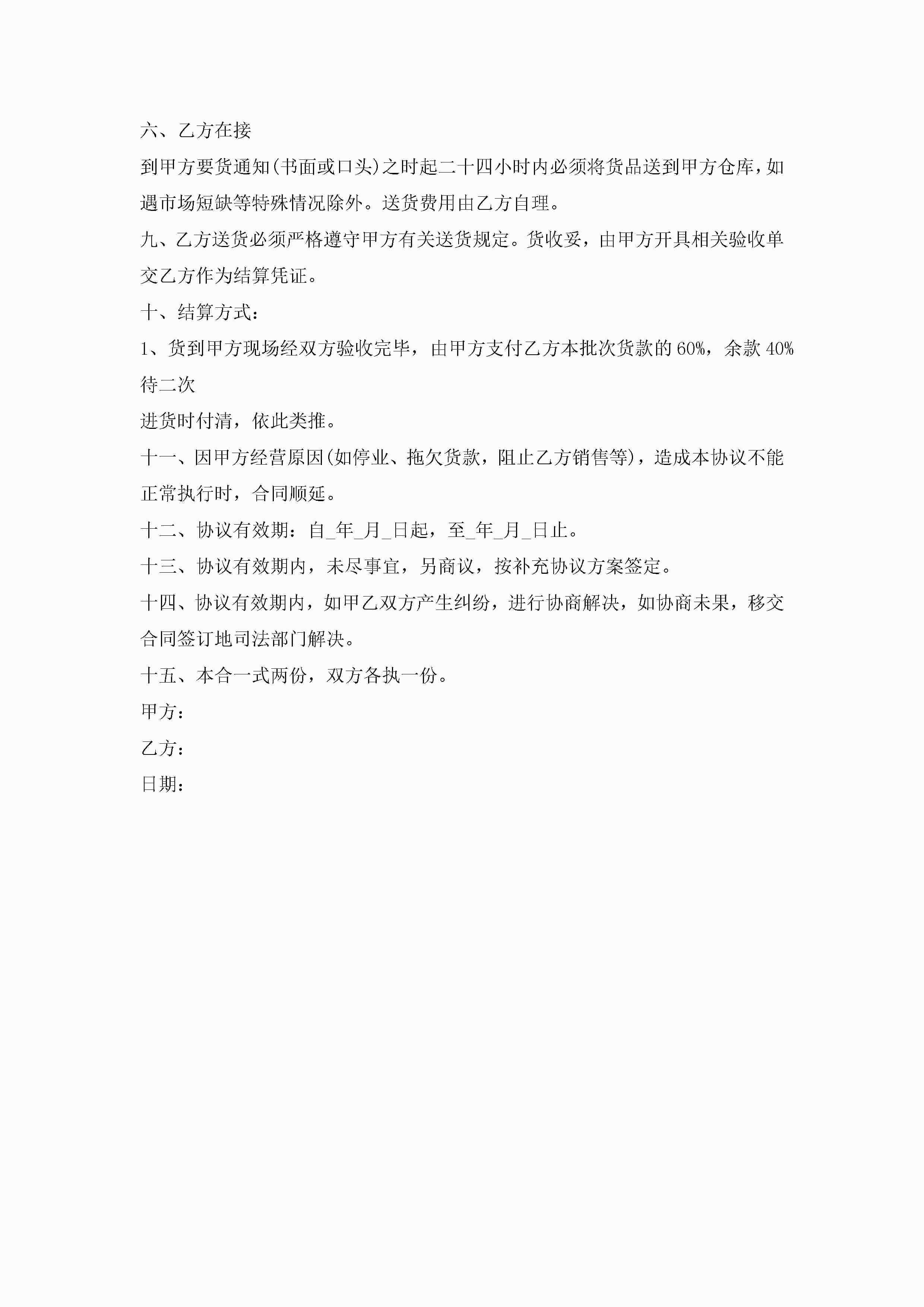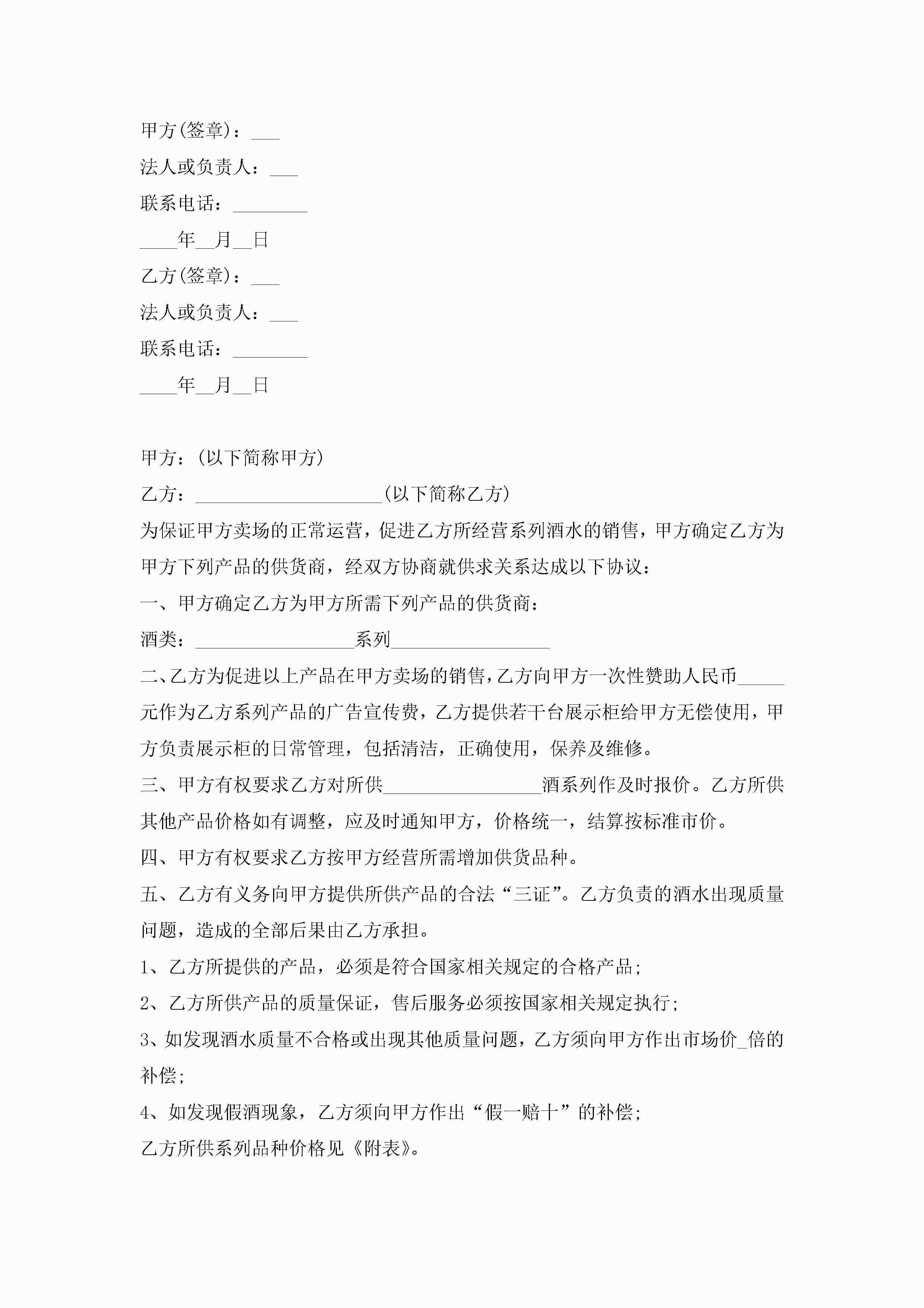 年酒水销售代理合同模板jugei3月23日 01:39发布关注201 年酒水销售代理合同模板此内容为付费资源,请付费后查看¥10.9 单篇文档限时特惠¥15个人会员开通企业会员开通立即下载无需登陆!可直接快捷下载单个模板付费资源© 版权声明THE ENDWord模板# 实用文档# 实用模板# 合同模板# 销售合同 如有问题,可点击最底部“联系我们”联系客服 分享QQ空间微博QQ好友海报分享复制链接收藏