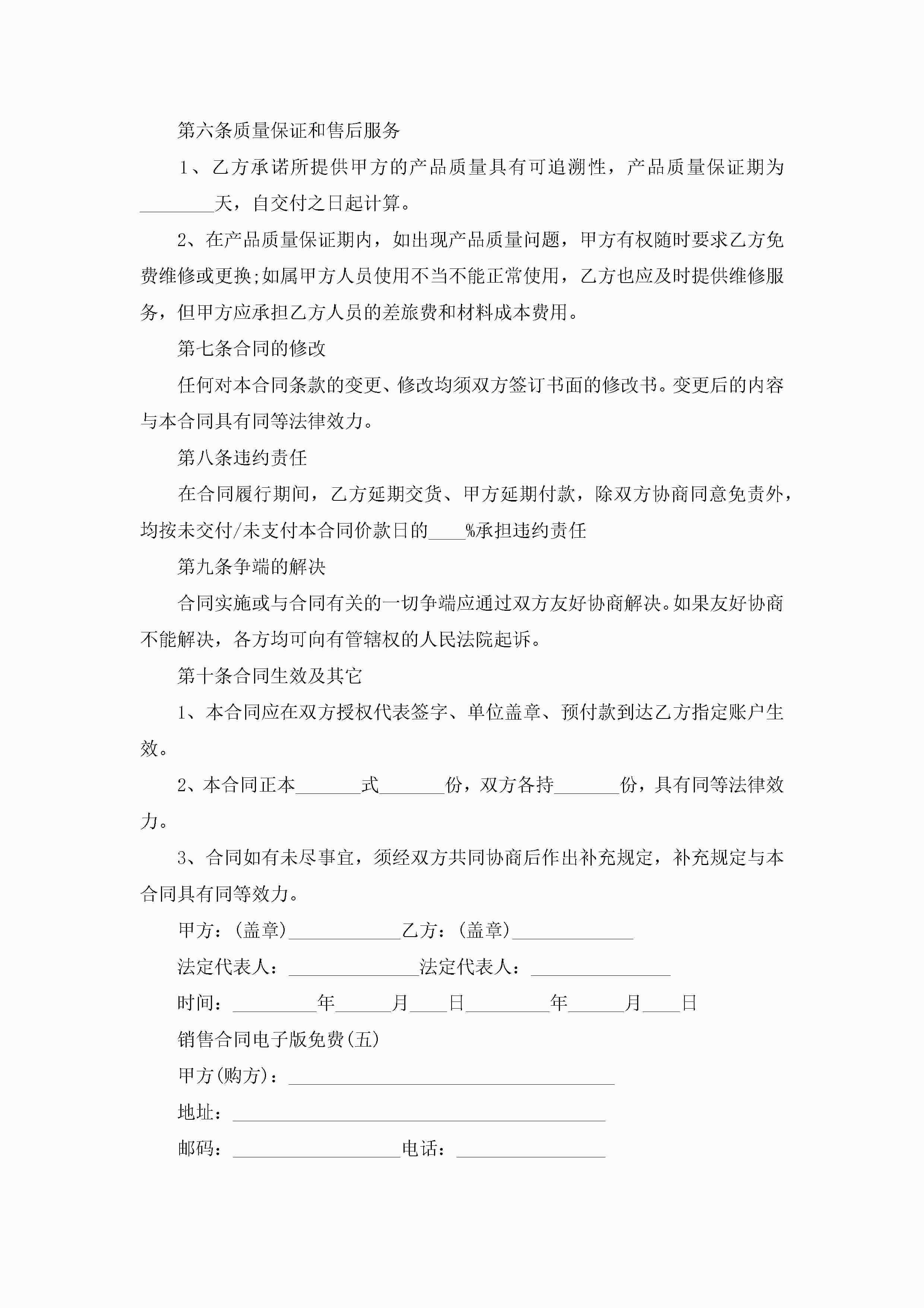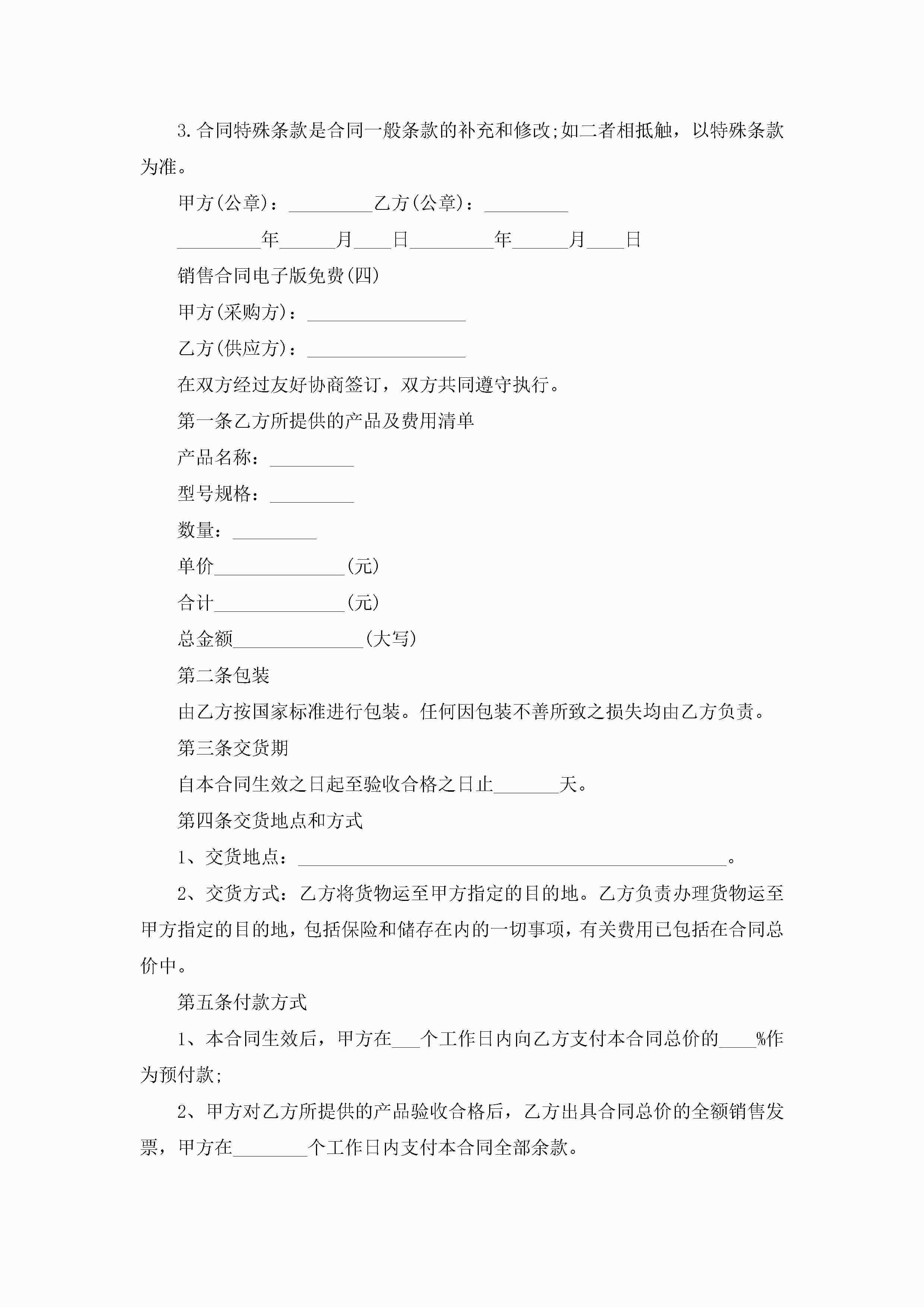 2022销售合同电子版免费5篇jugei3月23日 01:39发布关注257 2022销售合同电子版免费5篇此内容为付费资源,请付费后查看¥10.9 单篇文档限时特惠¥15个人会员开通企业会员开通立即下载无需登陆!可直接快捷下载单个模板付费资源© 版权声明THE ENDWord模板# 实用文档# 实用模板# 合同模板# 销售合同 如有问题,可点击最底部“联系我们”联系客服 分享QQ空间微博QQ好友海报分享复制链接收藏