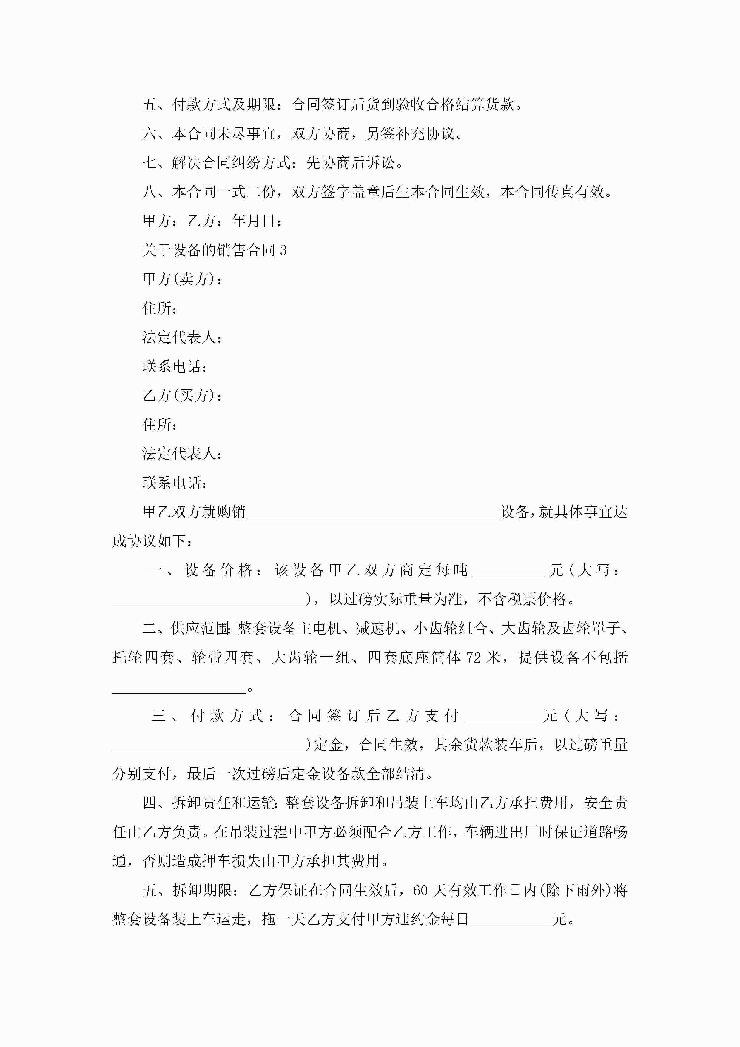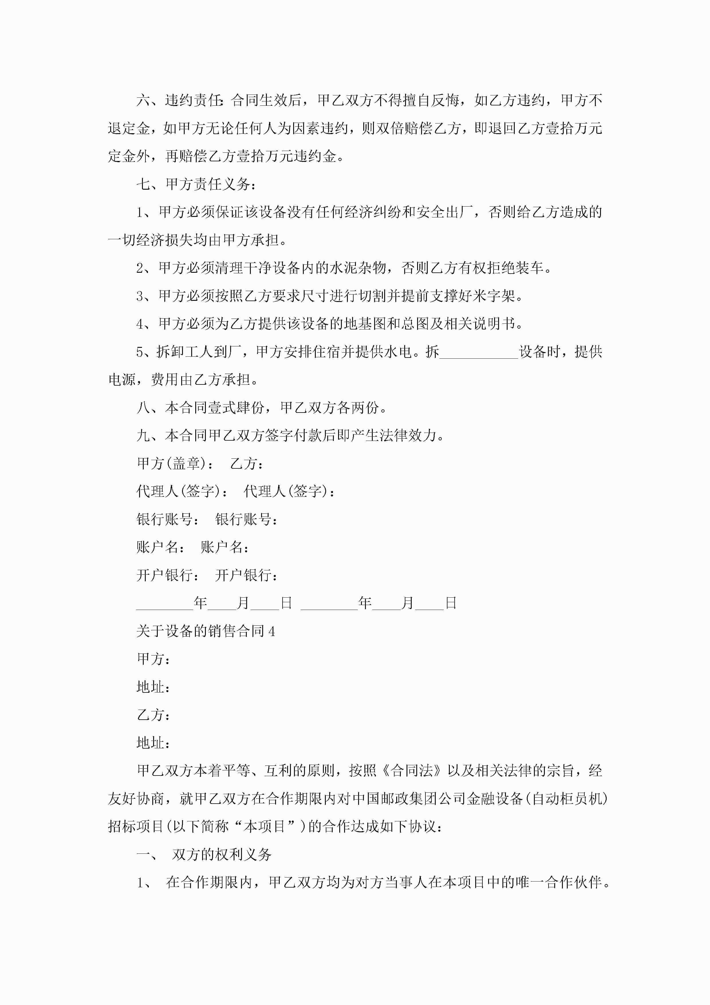 关于设备的销售合同模板jugei3月23日 01:39发布关注261 关于设备的销售合同模板此内容为付费资源,请付费后查看¥10.9 单篇文档限时特惠¥15个人会员开通企业会员开通立即下载无需登陆!可直接快捷下载单个模板付费资源© 版权声明THE ENDWord模板# 实用文档# 实用模板# 合同模板# 销售合同 如有问题,可点击最底部“联系我们”联系客服 分享QQ空间微博QQ好友海报分享复制链接收藏