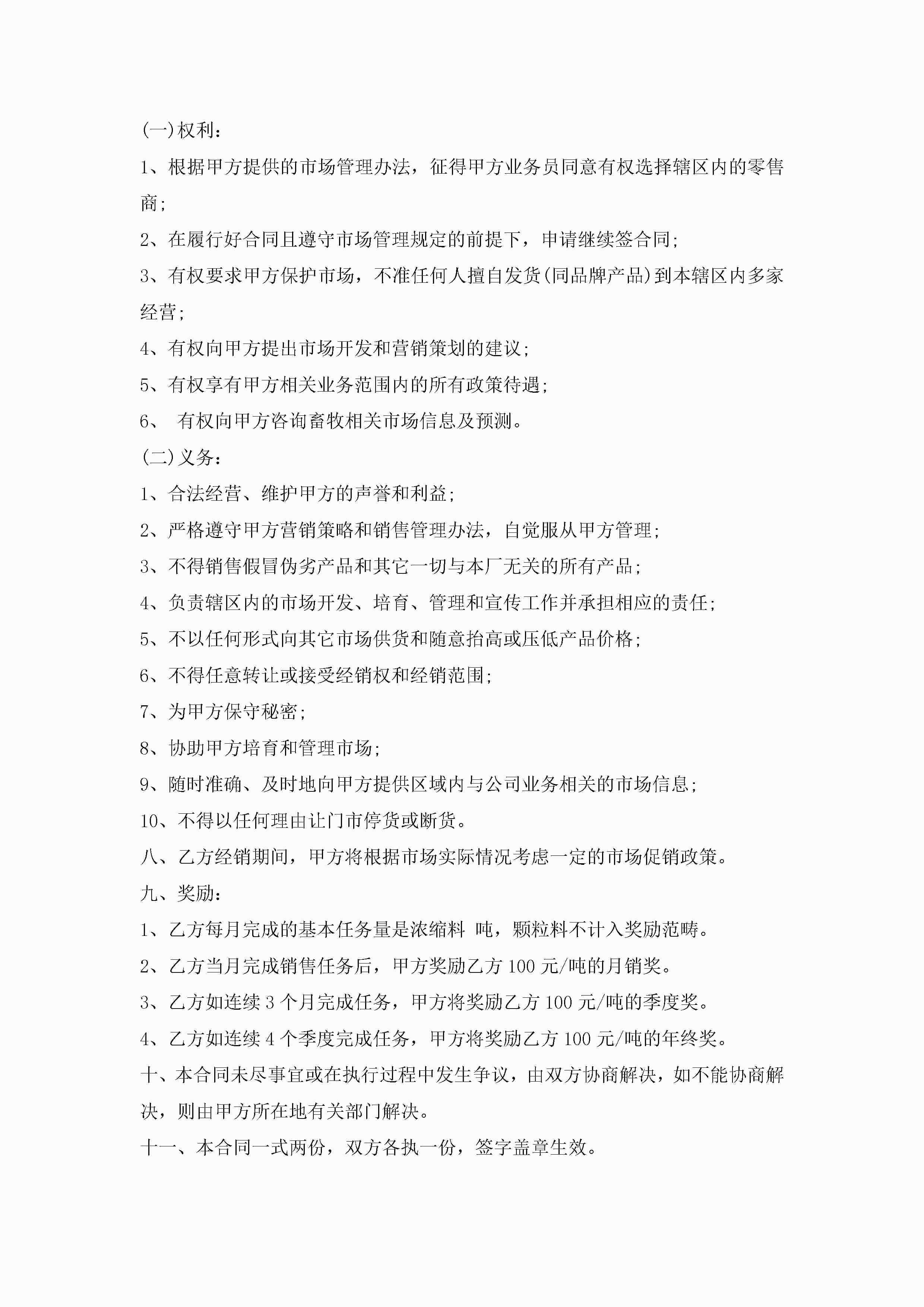 饲料销售合同模板5篇jugei3月23日 01:39发布关注189 饲料销售合同模板5篇此内容为付费资源,请付费后查看¥10.9 单篇文档限时特惠¥15个人会员开通企业会员开通立即下载无需登陆!可直接快捷下载单个模板付费资源© 版权声明THE ENDWord模板# 实用文档# 实用模板# 合同模板# 销售合同 如有问题,可点击最底部“联系我们”联系客服 分享QQ空间微博QQ好友海报分享复制链接收藏