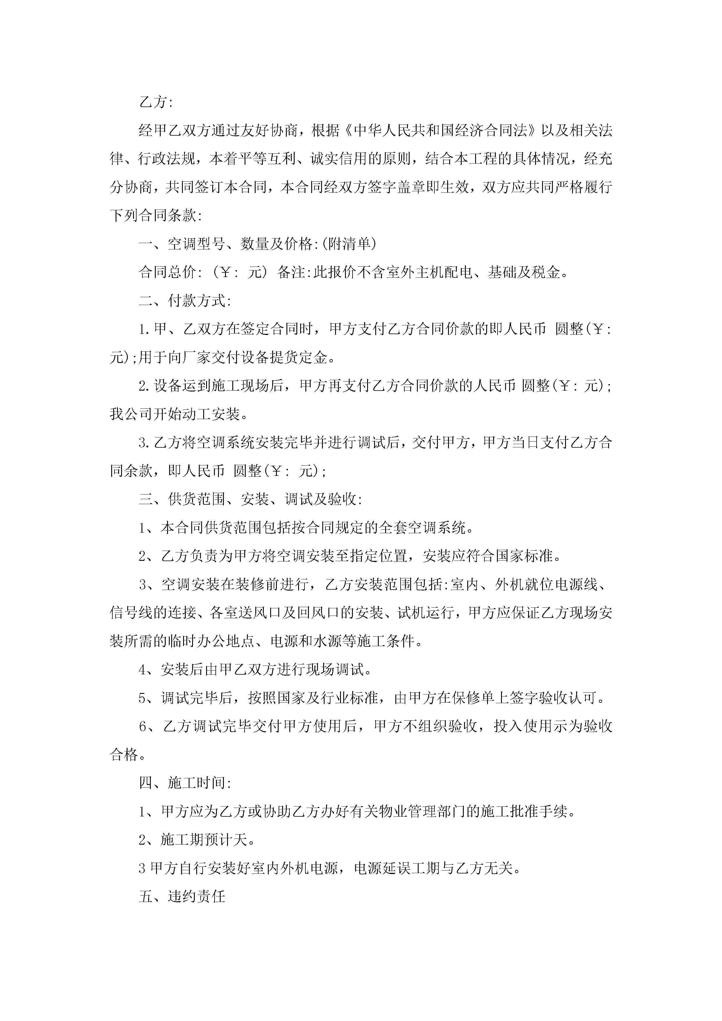 空调销售合同范本5篇jugei3月23日 01:39发布关注241 空调销售合同范本5篇此内容为付费资源,请付费后查看¥10.9 单篇文档限时特惠¥15个人会员开通企业会员开通立即下载无需登陆!可直接快捷下载单个模板付费资源© 版权声明THE ENDWord模板# 实用文档# 实用模板# 合同模板# 销售合同 如有问题,可点击最底部“联系我们”联系客服 分享QQ空间微博QQ好友海报分享复制链接收藏