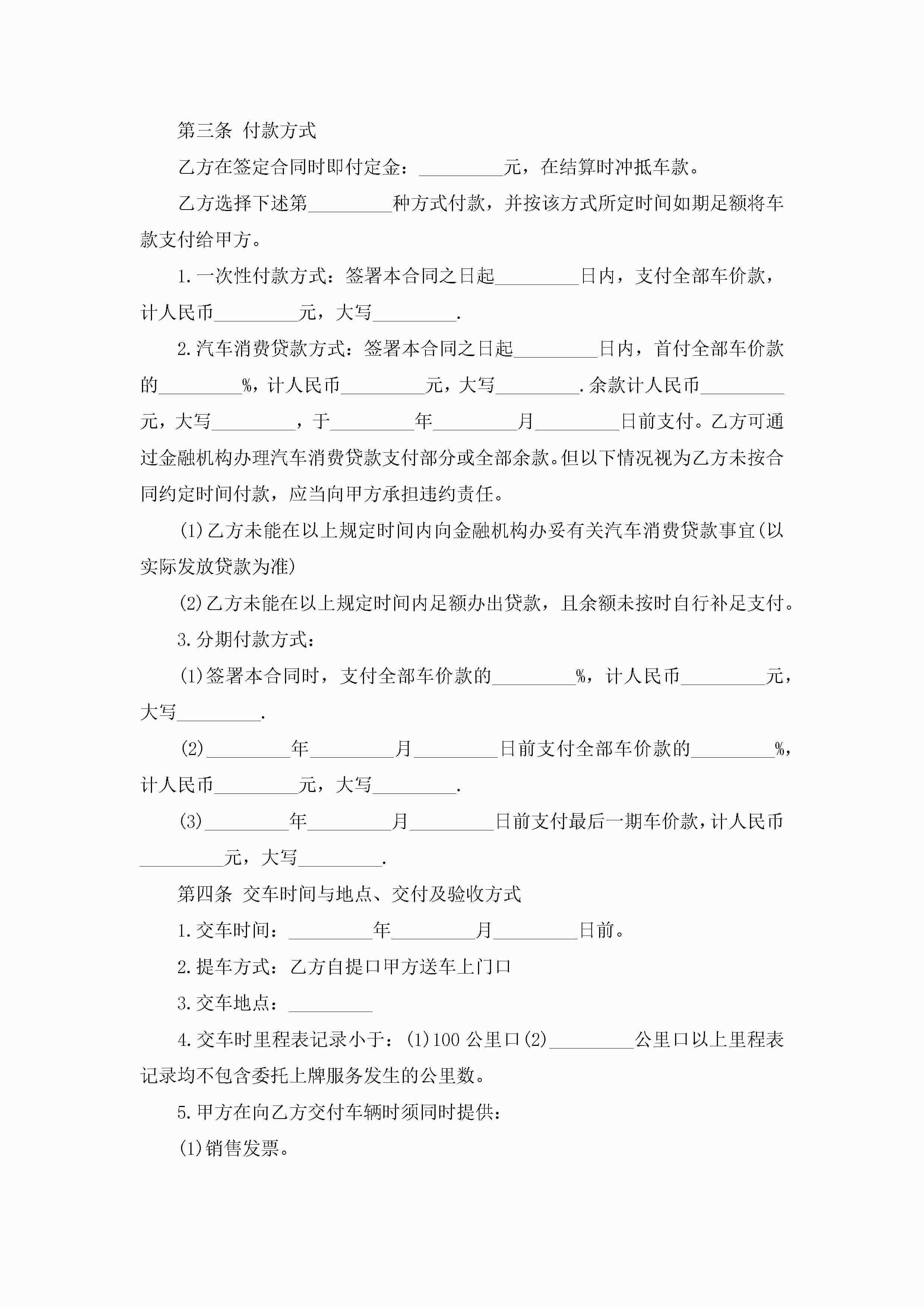 汽车销售合同标准版五篇最新jugei3月23日 01:39发布关注189 汽车销售合同标准版五篇最新此内容为付费资源,请付费后查看¥10.9 单篇文档限时特惠¥15个人会员开通企业会员开通立即下载无需登陆!可直接快捷下载单个模板付费资源© 版权声明THE ENDWord模板# 实用文档# 实用模板# 合同模板# 销售合同 如有问题,可点击最底部“联系我们”联系客服 分享QQ空间微博QQ好友海报分享复制链接收藏