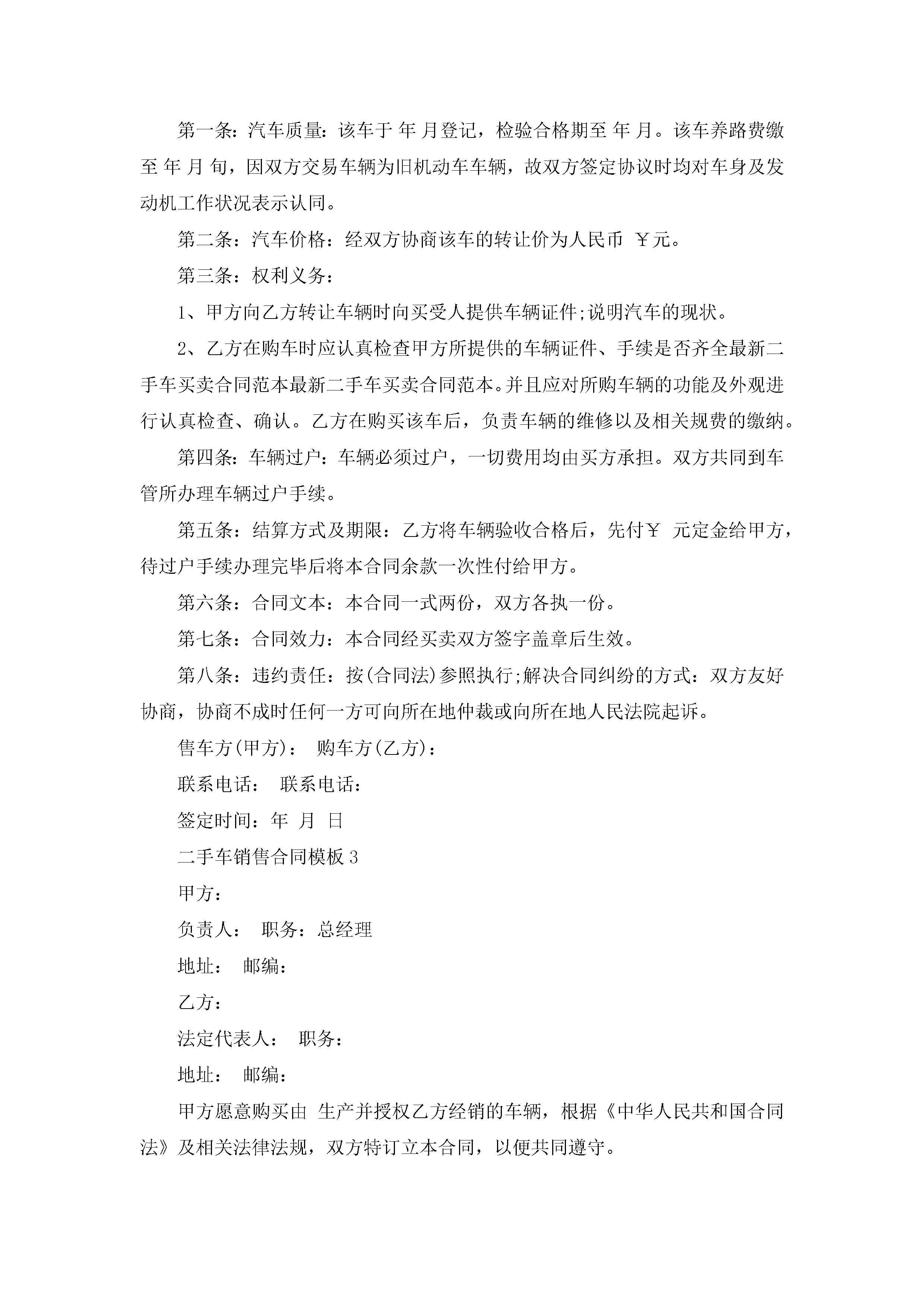 二手车销售合同模板5篇jugei3月23日 01:39发布关注189 二手车销售合同模板5篇此内容为付费资源,请付费后查看¥10.9 单篇文档限时特惠¥15个人会员开通企业会员开通立即下载无需登陆!可直接快捷下载单个模板付费资源© 版权声明THE ENDWord模板# 实用文档# 实用模板# 合同模板# 销售合同 如有问题,可点击最底部“联系我们”联系客服 分享QQ空间微博QQ好友海报分享复制链接收藏