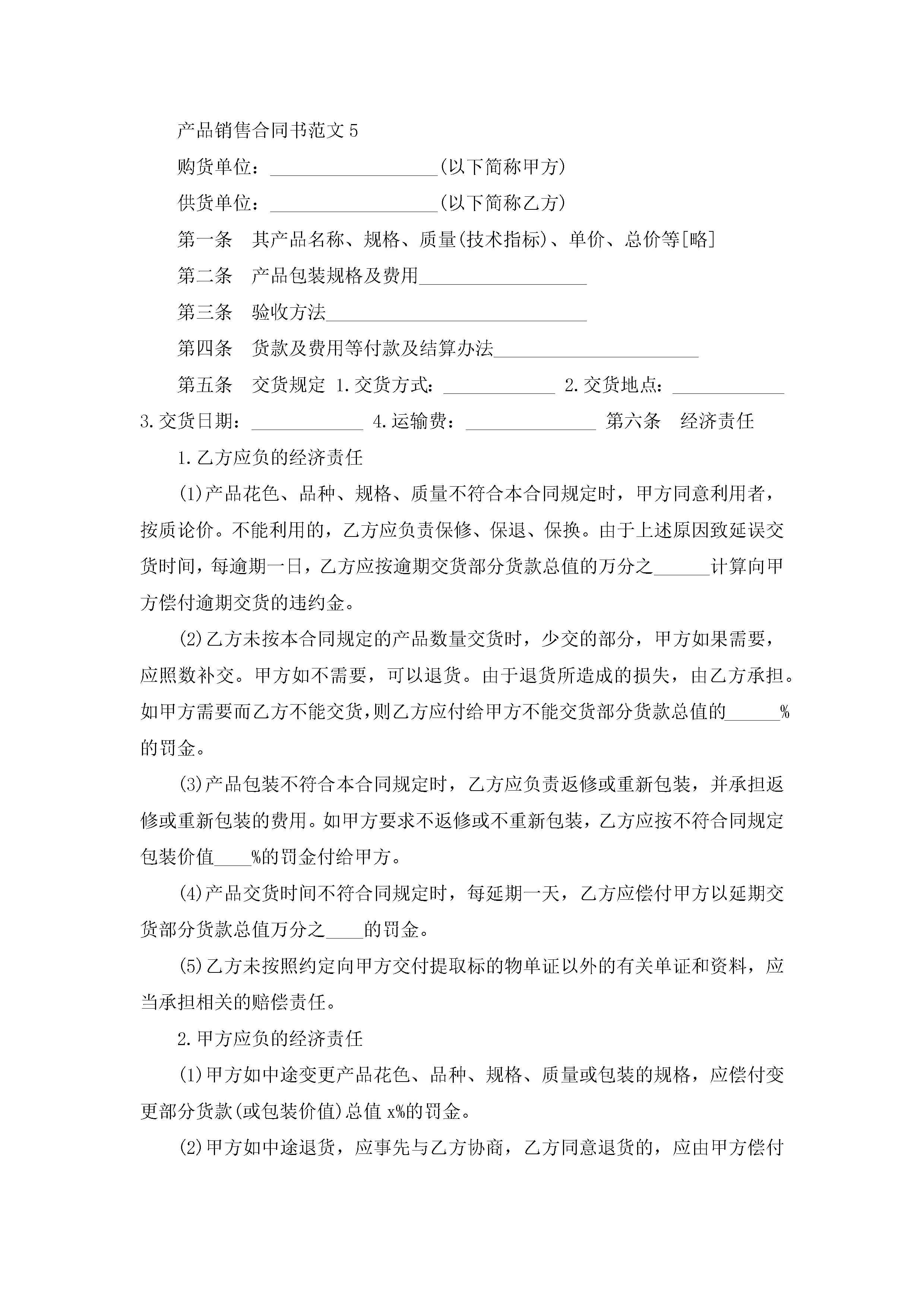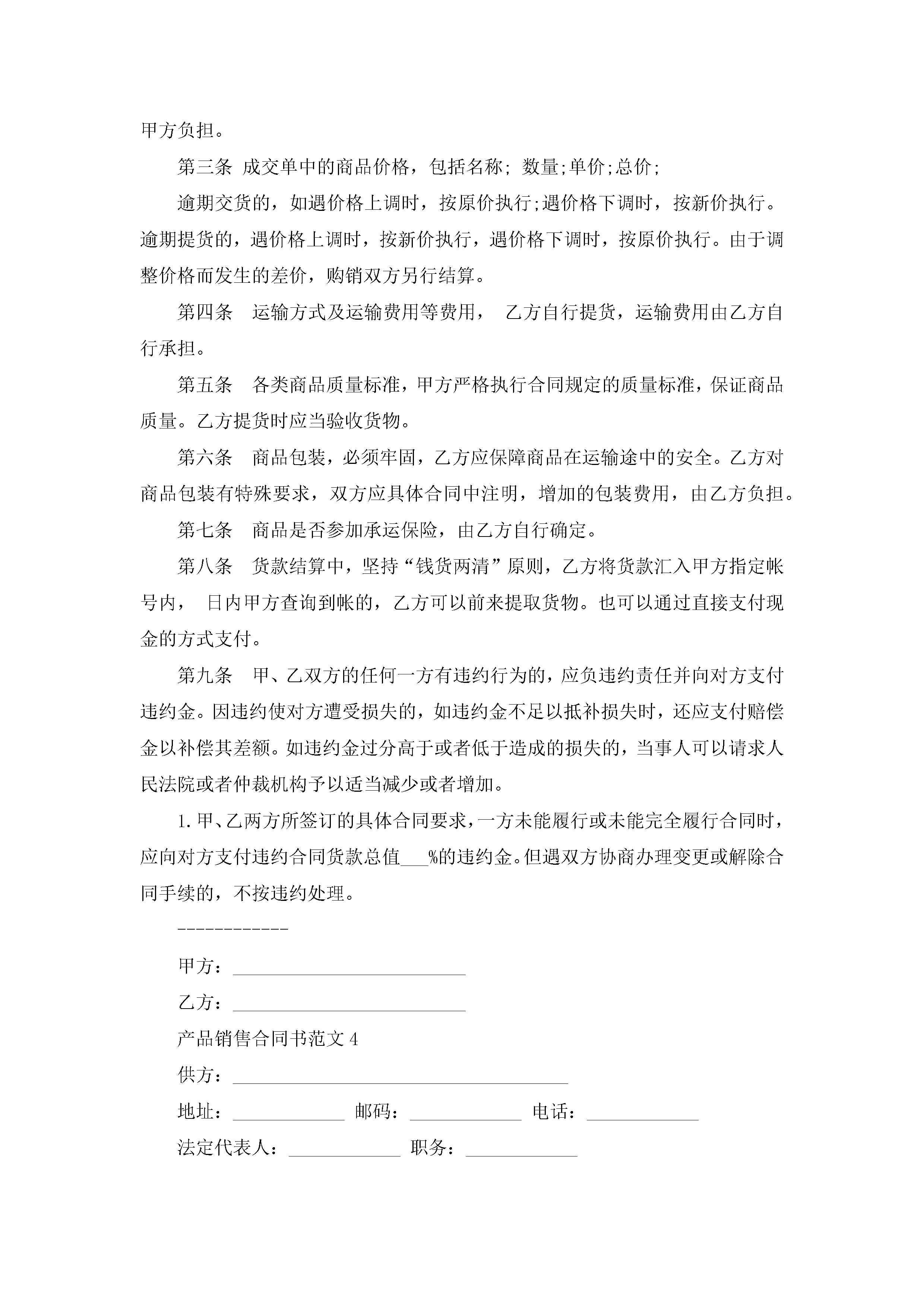 产品销售合同书范文5篇jugei3月23日 01:39发布关注191 产品销售合同书范文5篇此内容为付费资源,请付费后查看¥10.9 单篇文档限时特惠¥15个人会员开通企业会员开通立即下载无需登陆!可直接快捷下载单个模板付费资源© 版权声明THE ENDWord模板# 实用文档# 实用模板# 合同模板# 销售合同 如有问题,可点击最底部“联系我们”联系客服 分享QQ空间微博QQ好友海报分享复制链接收藏