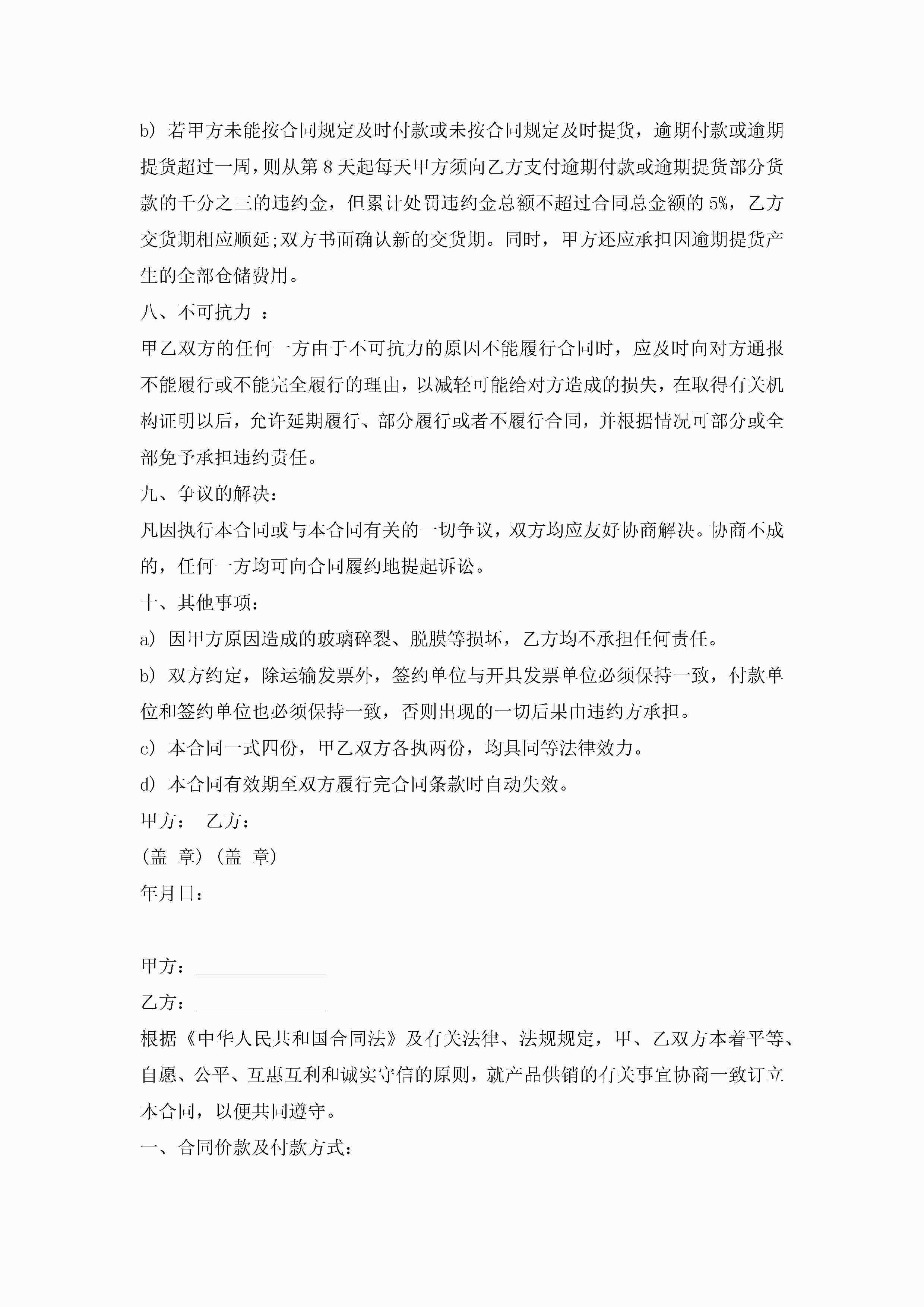 玻璃销售合同范本5篇jugei3月23日 01:39发布关注189 玻璃销售合同范本5篇此内容为付费资源,请付费后查看¥10.9 单篇文档限时特惠¥15个人会员开通企业会员开通立即下载无需登陆!可直接快捷下载单个模板付费资源© 版权声明THE ENDWord模板# 实用文档# 实用模板# 合同模板# 销售合同 如有问题,可点击最底部“联系我们”联系客服 分享QQ空间微博QQ好友海报分享复制链接收藏