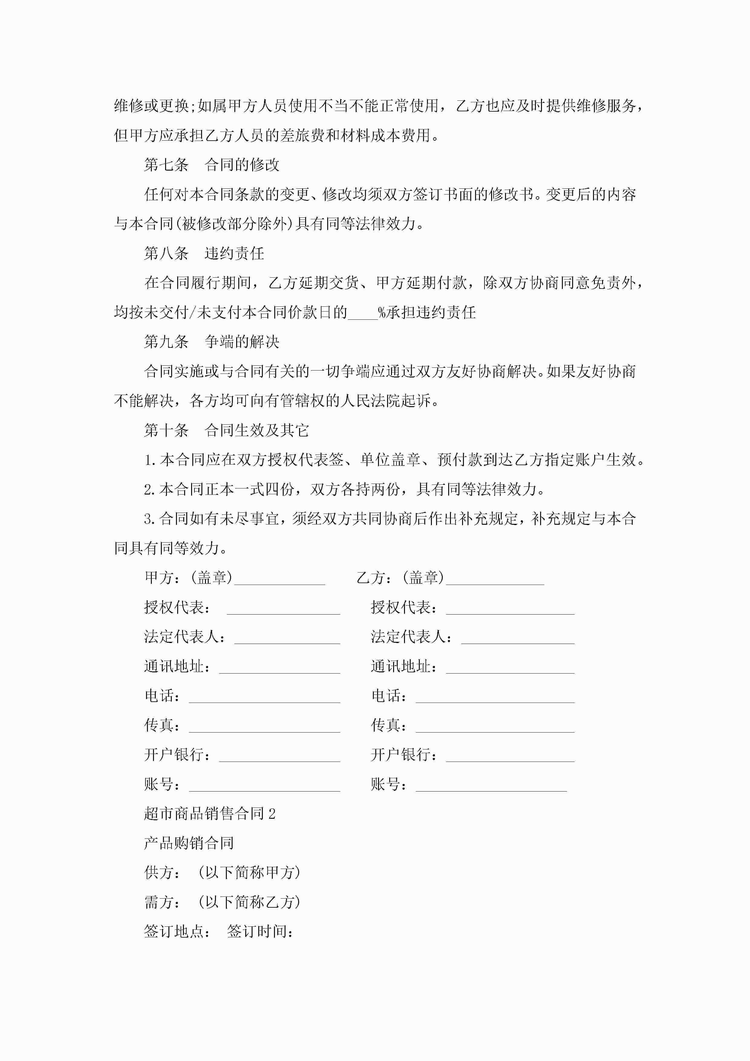 最新超市商品销售合同5篇jugei3月23日 01:39发布关注228 最新超市商品销售合同5篇此内容为付费资源,请付费后查看¥10.9 单篇文档限时特惠¥15个人会员开通企业会员开通立即下载无需登陆!可直接快捷下载单个模板付费资源© 版权声明THE ENDWord模板# 实用文档# 实用模板# 合同模板# 销售合同 如有问题,可点击最底部“联系我们”联系客服 分享QQ空间微博QQ好友海报分享复制链接收藏
