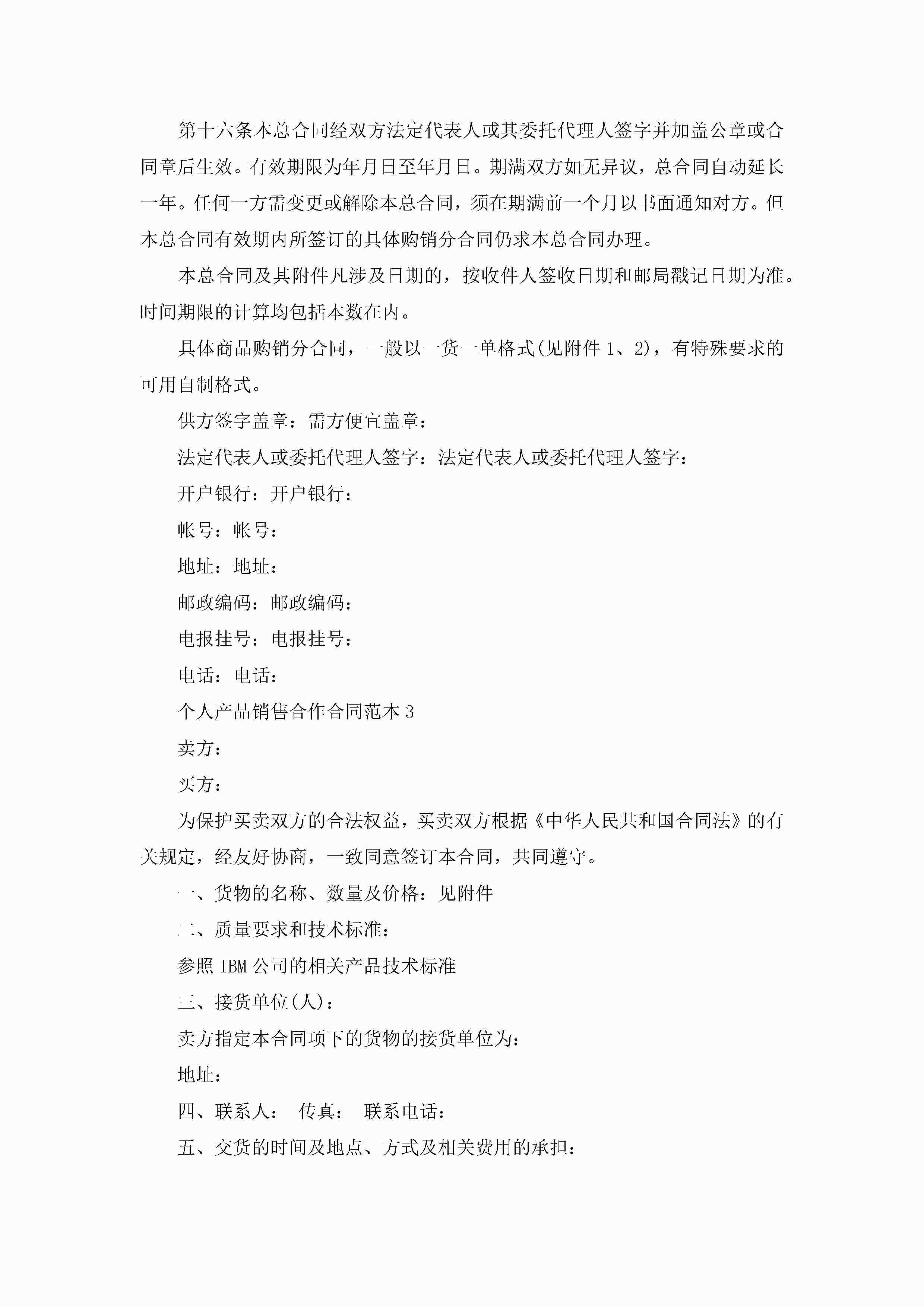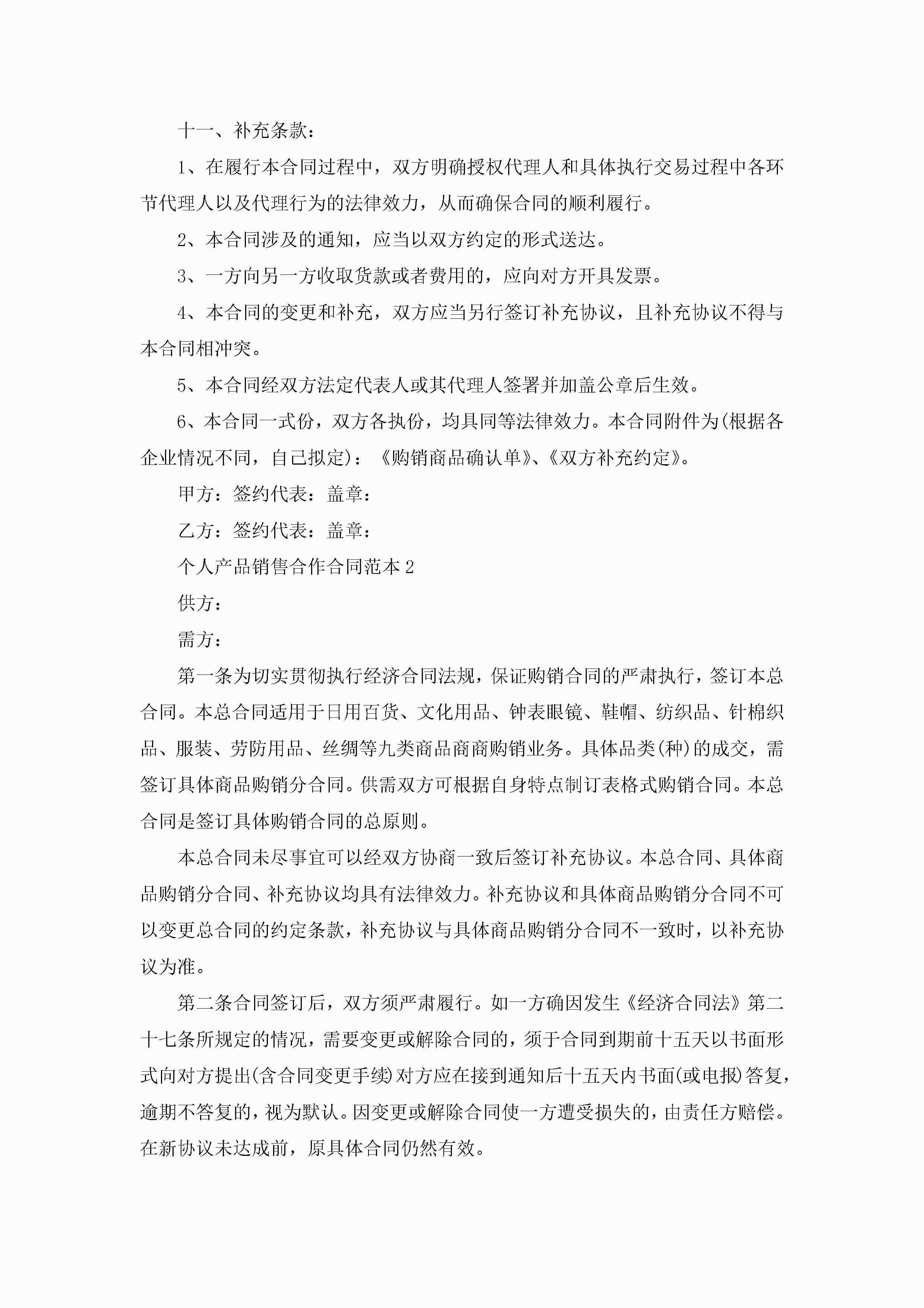 个人产品销售合作合同范本5篇jugei3月23日 01:39发布关注278 个人产品销售合作合同范本5篇此内容为付费资源,请付费后查看¥10.9 单篇文档限时特惠¥15个人会员开通企业会员开通立即下载无需登陆!可直接快捷下载单个模板付费资源© 版权声明THE ENDWord模板# 实用文档# 实用模板# 合同模板# 销售合同 如有问题,可点击最底部“联系我们”联系客服 分享QQ空间微博QQ好友海报分享复制链接收藏