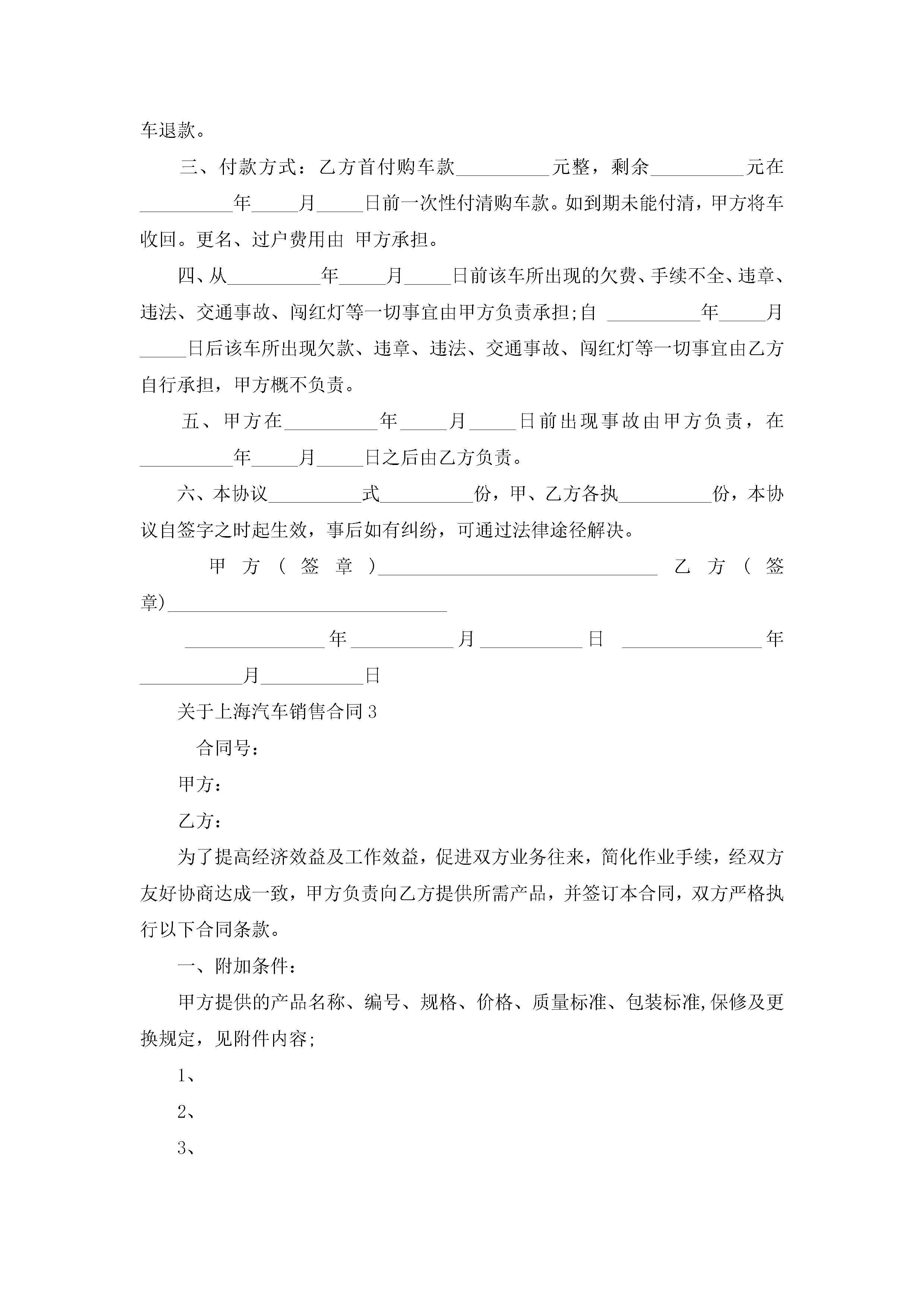 关于上海汽车销售合同5篇jugei3月23日 01:39发布关注191 关于上海汽车销售合同5篇此内容为付费资源,请付费后查看¥10.9 单篇文档限时特惠¥15个人会员开通企业会员开通立即下载无需登陆!可直接快捷下载单个模板付费资源© 版权声明THE ENDWord模板# 实用文档# 实用模板# 合同模板# 销售合同 如有问题,可点击最底部“联系我们”联系客服 分享QQ空间微博QQ好友海报分享复制链接收藏