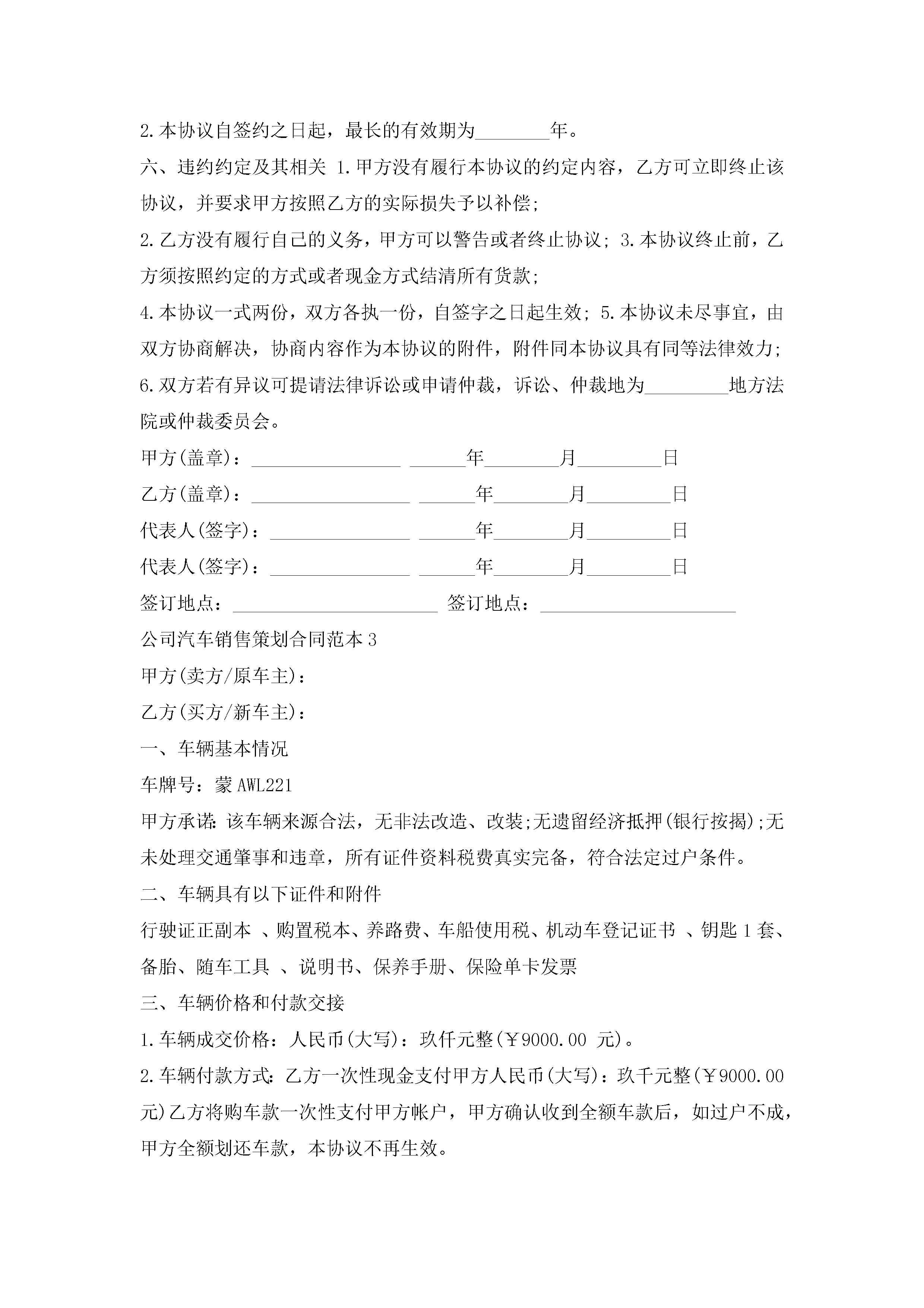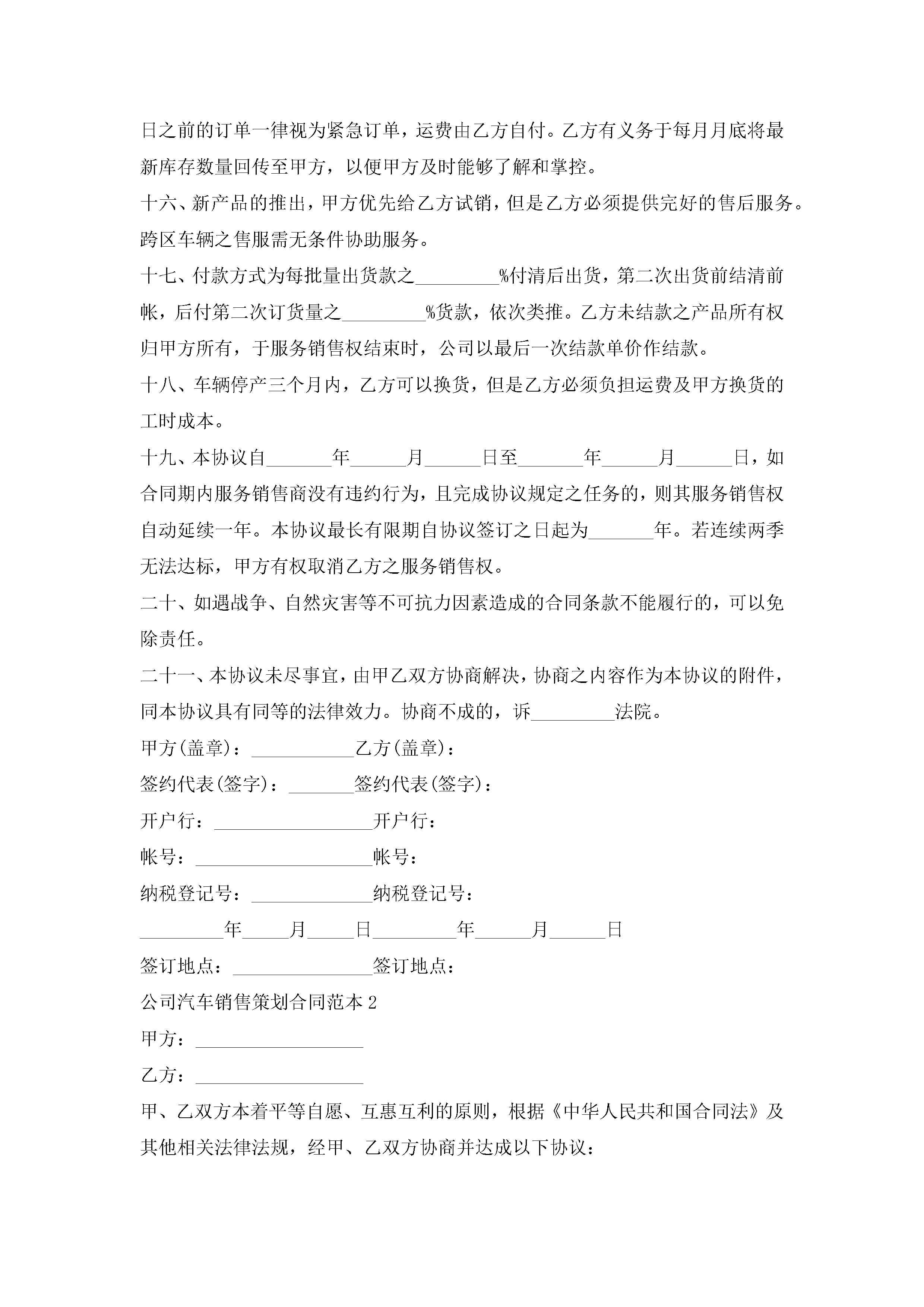 公司汽车销售策划合同范本5篇jugei3月23日 01:39发布关注203 公司汽车销售策划合同范本5篇此内容为付费资源,请付费后查看¥10.9 单篇文档限时特惠¥15个人会员开通企业会员开通立即下载无需登陆!可直接快捷下载单个模板付费资源© 版权声明THE ENDWord模板# 实用文档# 实用模板# 合同模板# 销售合同 如有问题,可点击最底部“联系我们”联系客服 分享QQ空间微博QQ好友海报分享复制链接收藏