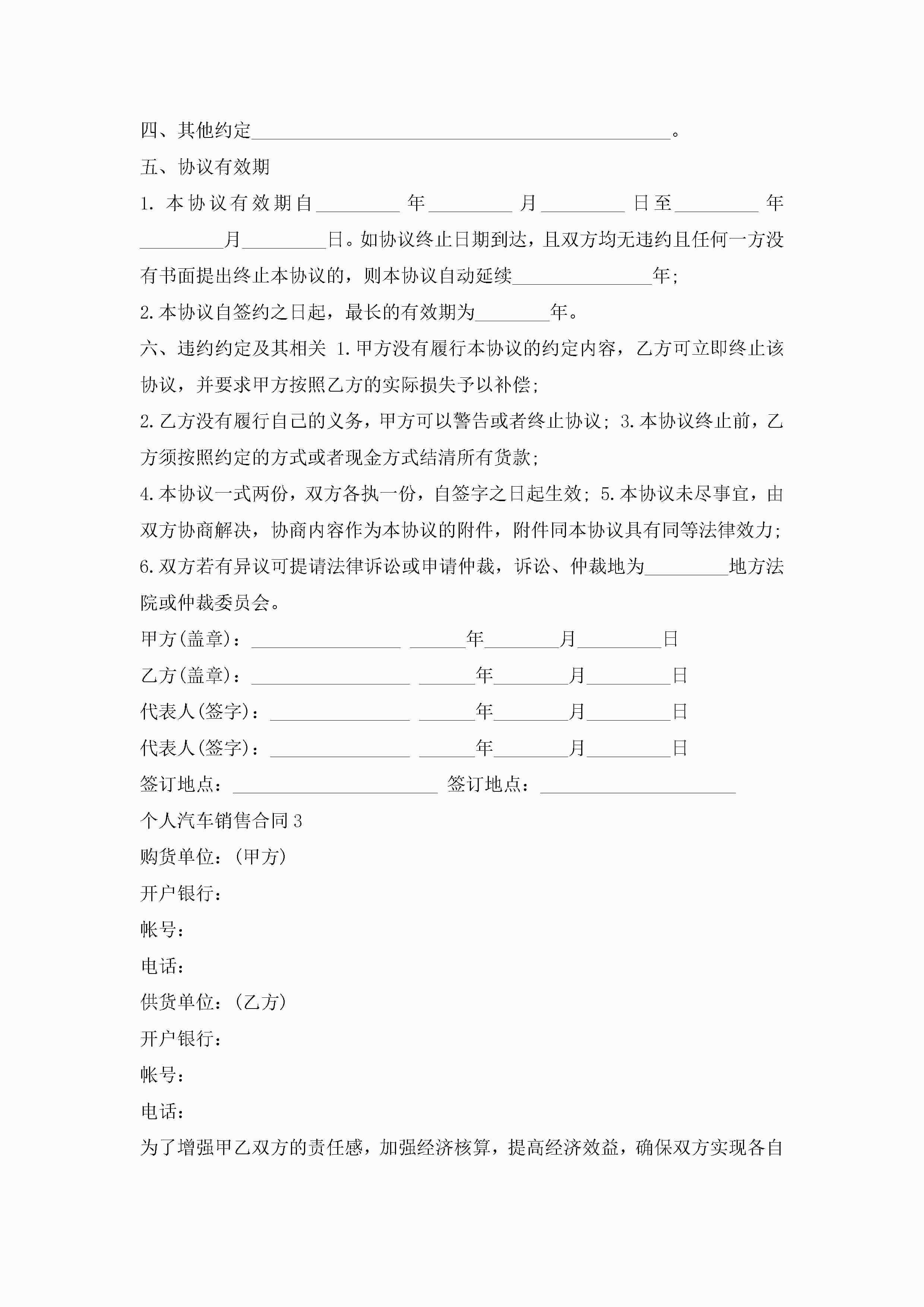关于个人汽车销售合同5篇jugei3月23日 01:39发布关注232 关于个人汽车销售合同5篇此内容为付费资源,请付费后查看¥10.9 单篇文档限时特惠¥15个人会员开通企业会员开通立即下载无需登陆!可直接快捷下载单个模板付费资源© 版权声明THE ENDWord模板# 实用文档# 实用模板# 合同模板# 销售合同 如有问题,可点击最底部“联系我们”联系客服 分享QQ空间微博QQ好友海报分享复制链接收藏