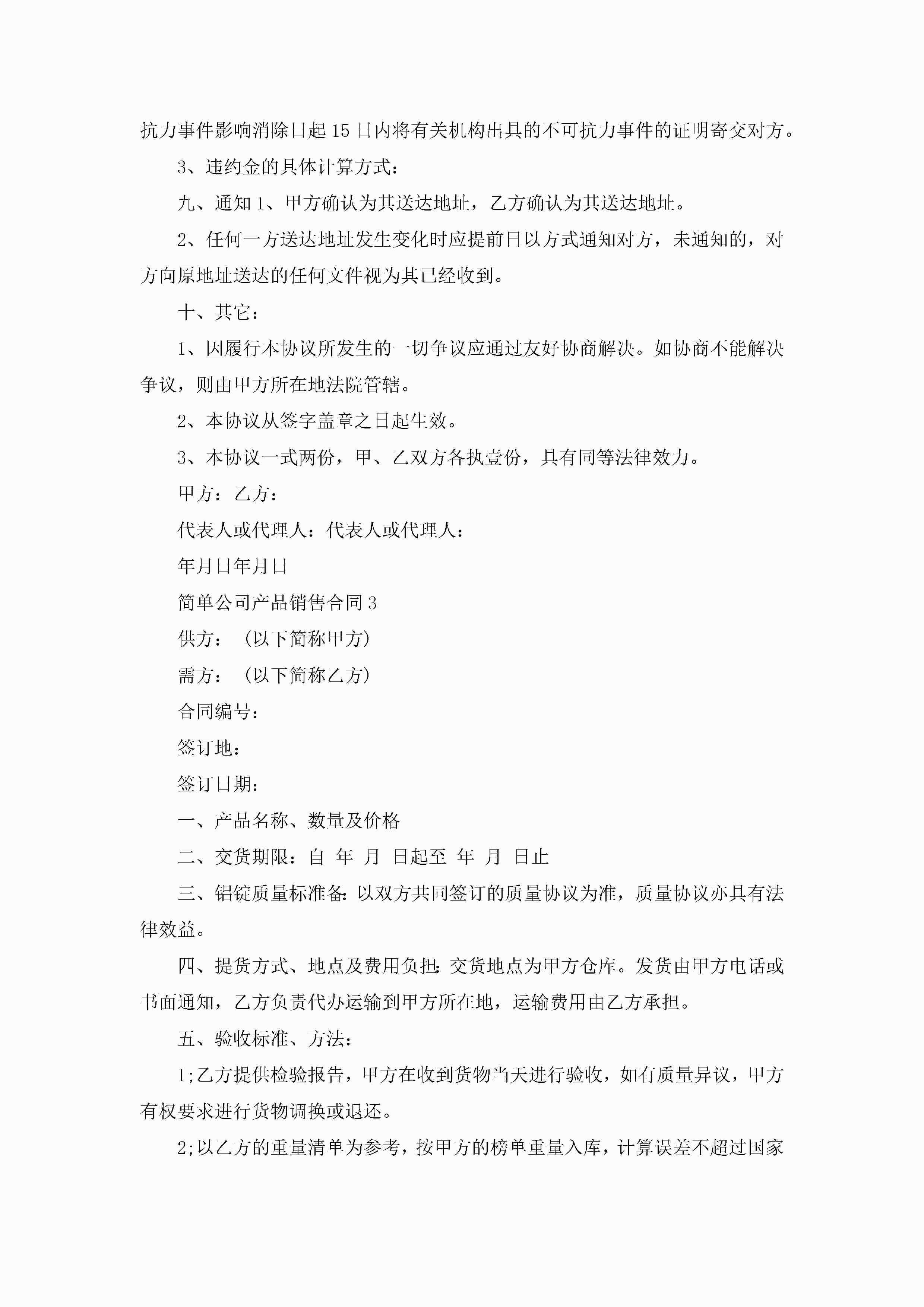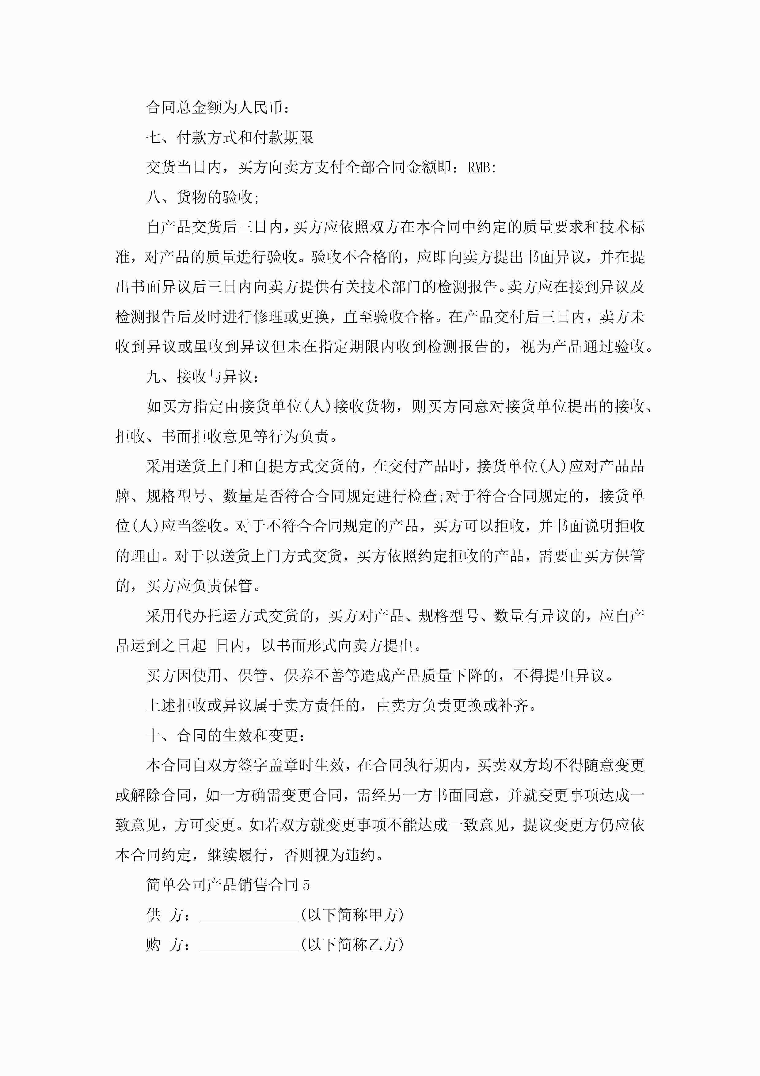 最新简单公司产品销售合同5篇jugei3月23日 01:39发布关注325 最新简单公司产品销售合同5篇此内容为付费资源,请付费后查看¥10.9 单篇文档限时特惠¥15个人会员开通企业会员开通立即下载无需登陆!可直接快捷下载单个模板付费资源© 版权声明THE ENDWord模板# 实用文档# 实用模板# 合同模板# 销售合同 如有问题,可点击最底部“联系我们”联系客服 分享QQ空间微博QQ好友海报分享复制链接收藏