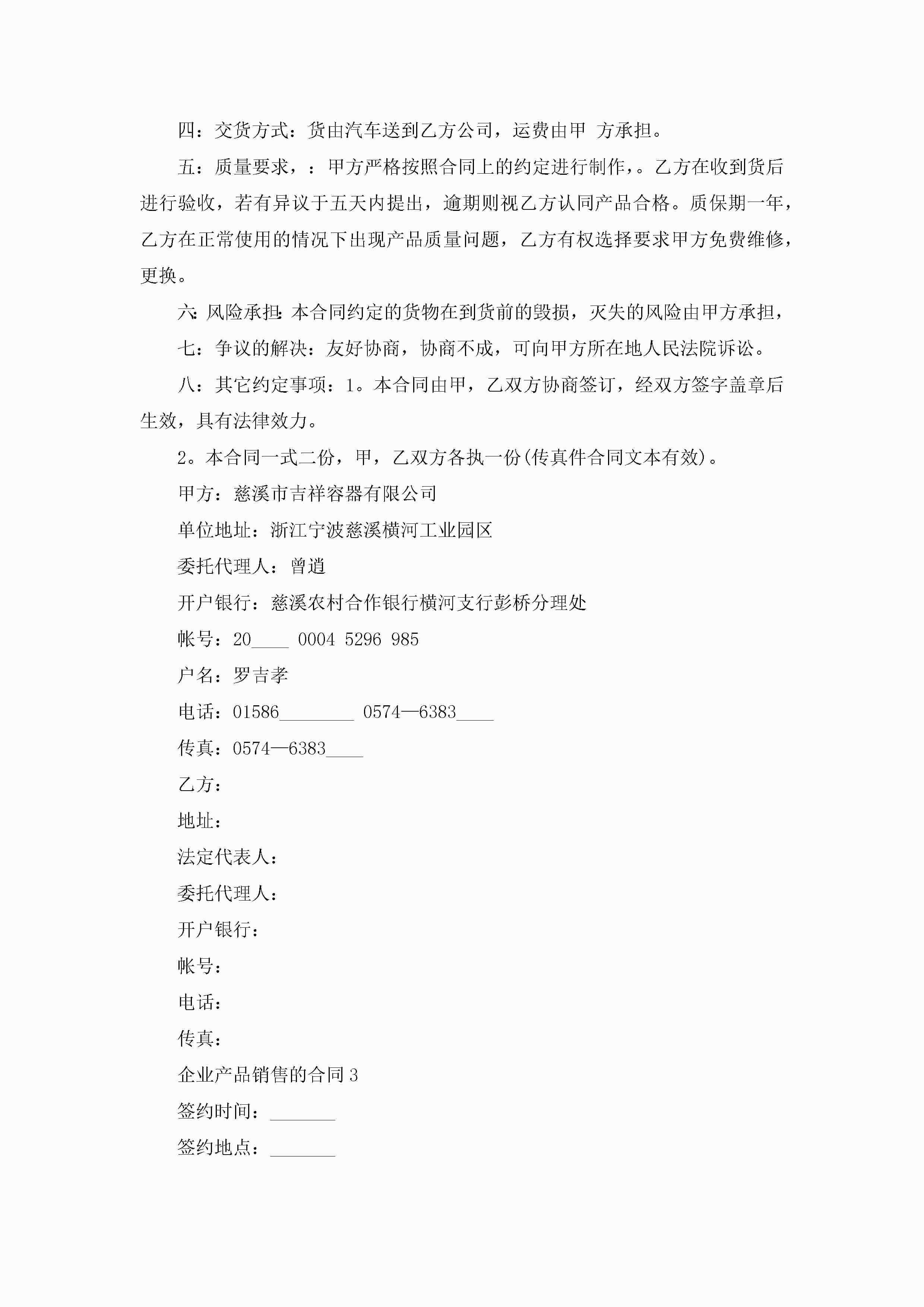 关于企业产品销售的合同5篇jugei3月23日 01:39发布关注199 关于企业产品销售的合同5篇此内容为付费资源,请付费后查看¥10.9 单篇文档限时特惠¥15个人会员开通企业会员开通立即下载无需登陆!可直接快捷下载单个模板付费资源© 版权声明THE ENDWord模板# 实用文档# 实用模板# 合同模板# 销售合同 如有问题,可点击最底部“联系我们”联系客服 分享QQ空间微博QQ好友海报分享复制链接收藏