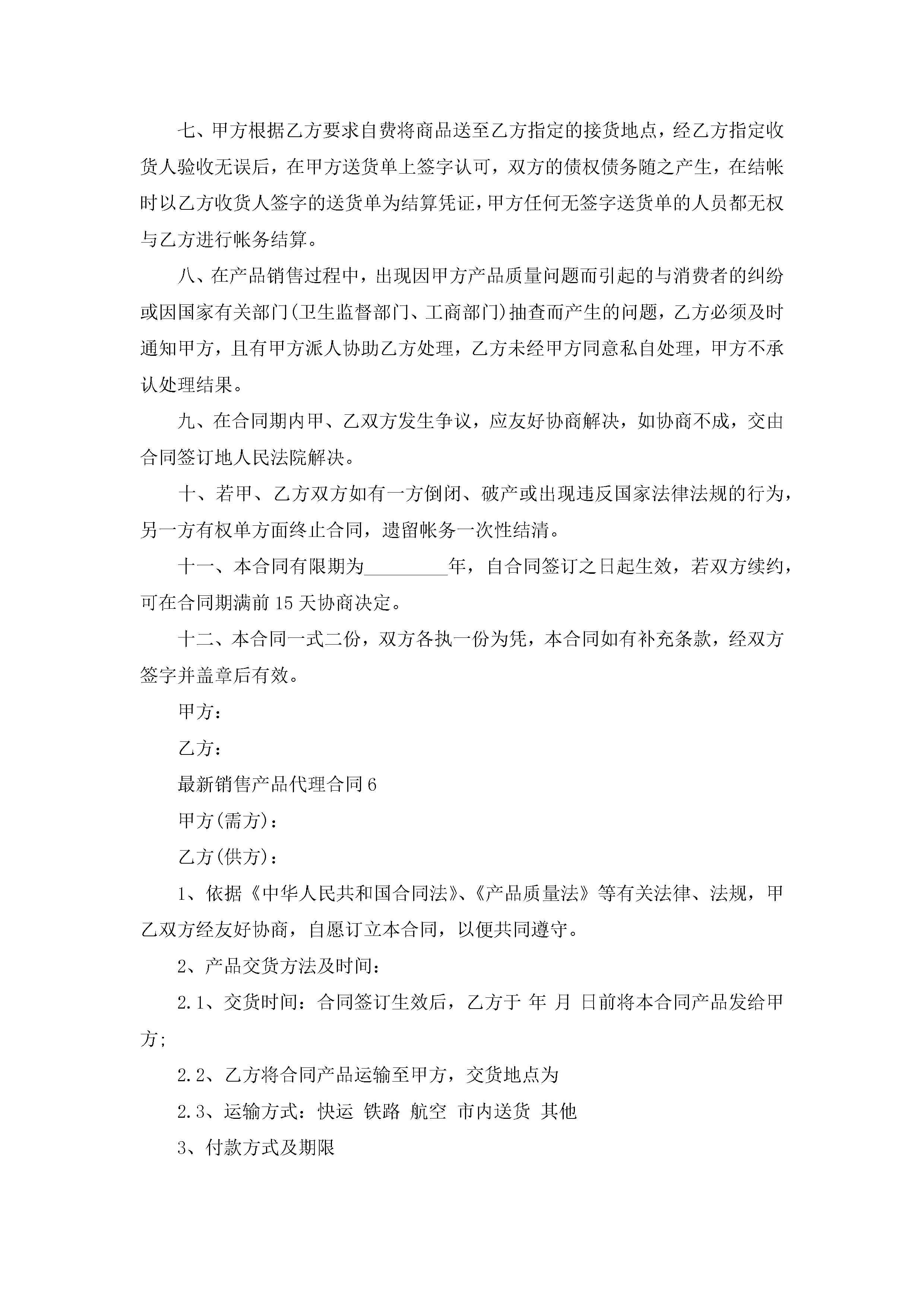 最新销售产品代理合同6篇jugei3月23日 01:39发布关注195 最新销售产品代理合同6篇此内容为付费资源,请付费后查看¥10.9 单篇文档限时特惠¥15个人会员开通企业会员开通立即下载无需登陆!可直接快捷下载单个模板付费资源© 版权声明THE ENDWord模板# 实用文档# 实用模板# 合同模板# 销售合同 如有问题,可点击最底部“联系我们”联系客服 分享QQ空间微博QQ好友海报分享复制链接收藏