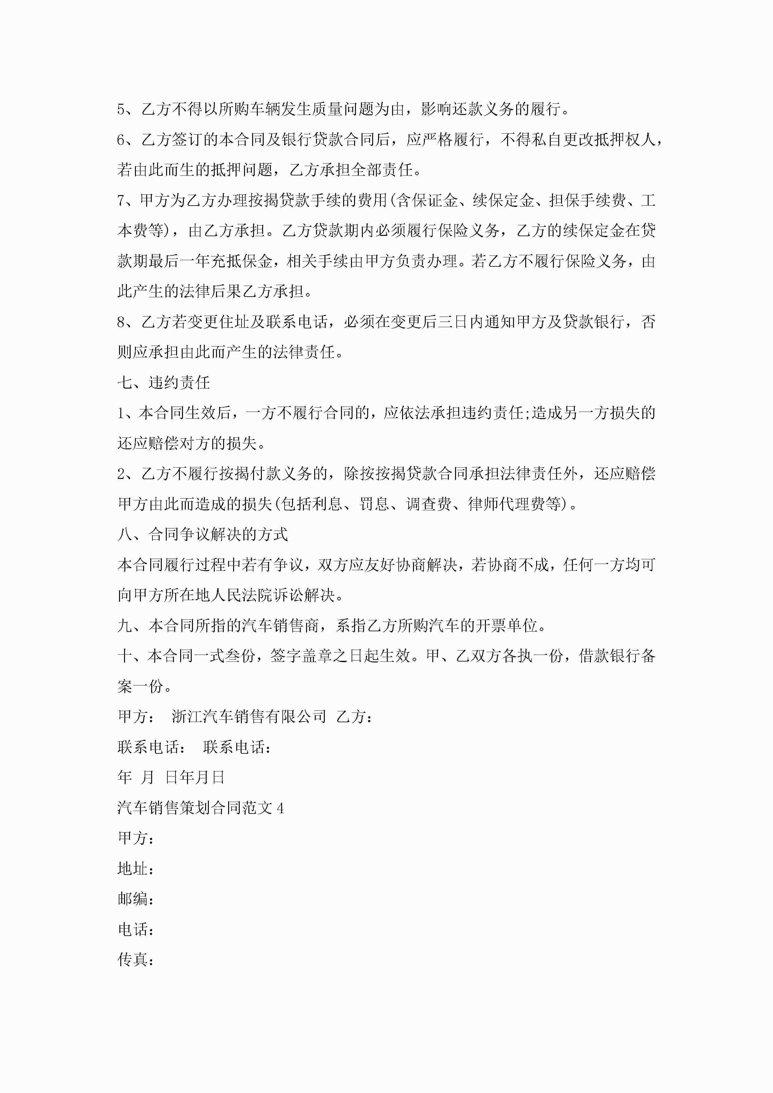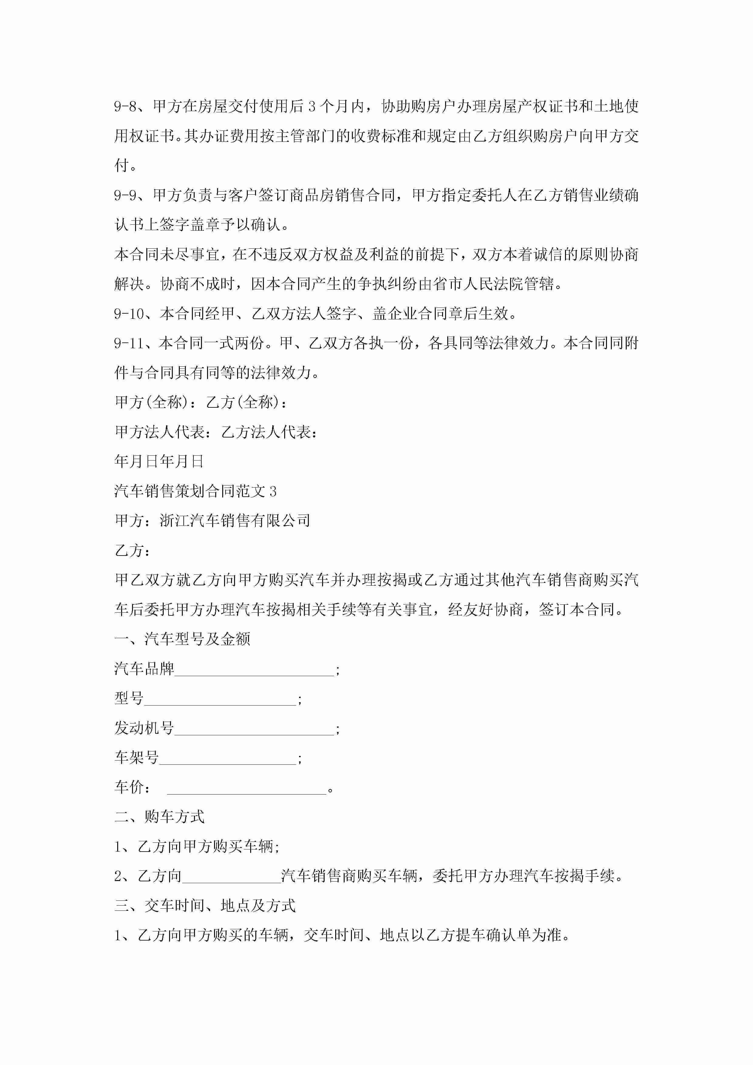 汽车销售策划合同范文5篇jugei3月23日 01:39发布关注185 汽车销售策划合同范文5篇此内容为付费资源,请付费后查看¥10.9 单篇文档限时特惠¥15个人会员开通企业会员开通立即下载无需登陆!可直接快捷下载单个模板付费资源© 版权声明THE ENDWord模板# 实用文档# 实用模板# 合同模板# 销售合同 如有问题,可点击最底部“联系我们”联系客服 分享QQ空间微博QQ好友海报分享复制链接收藏