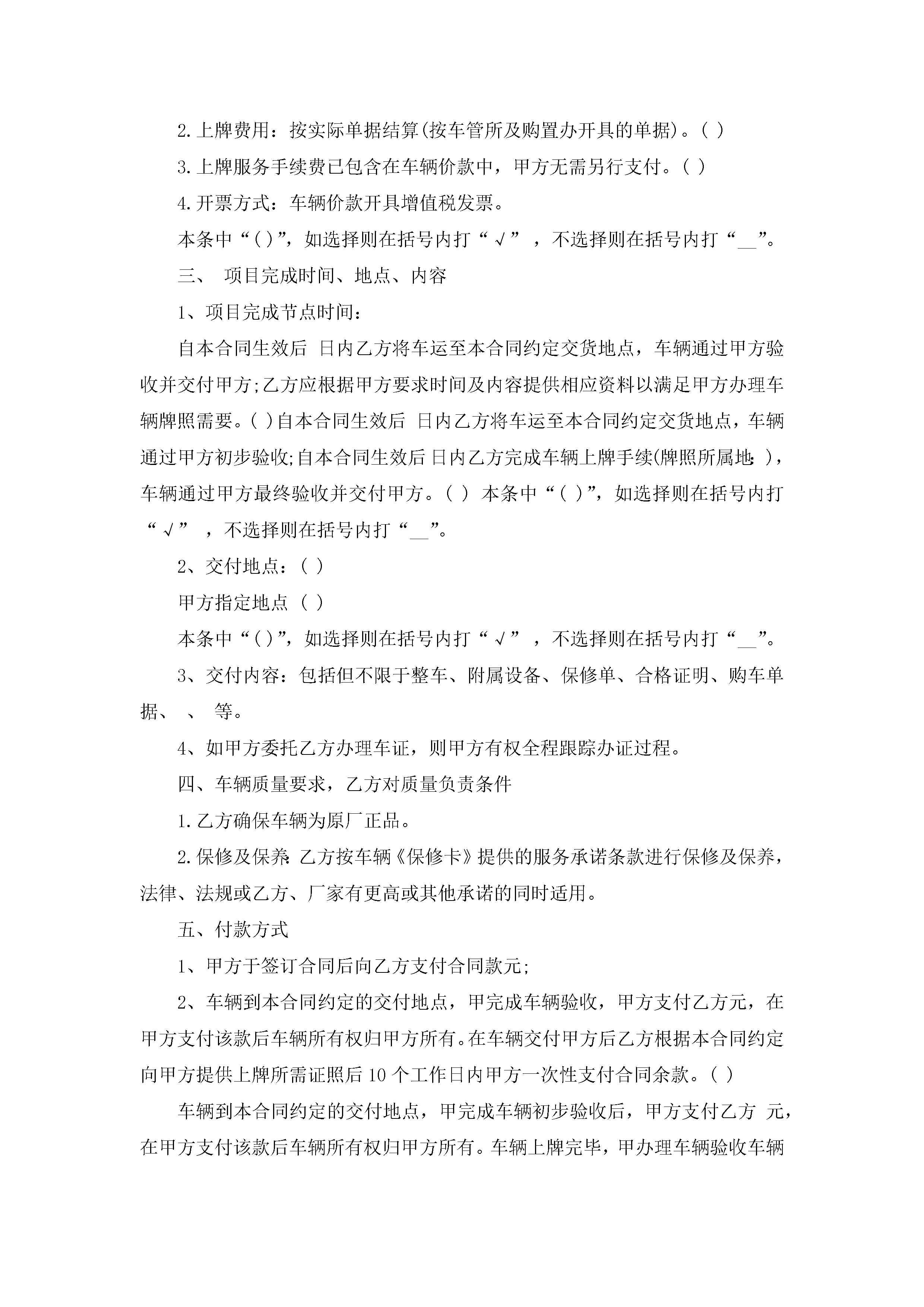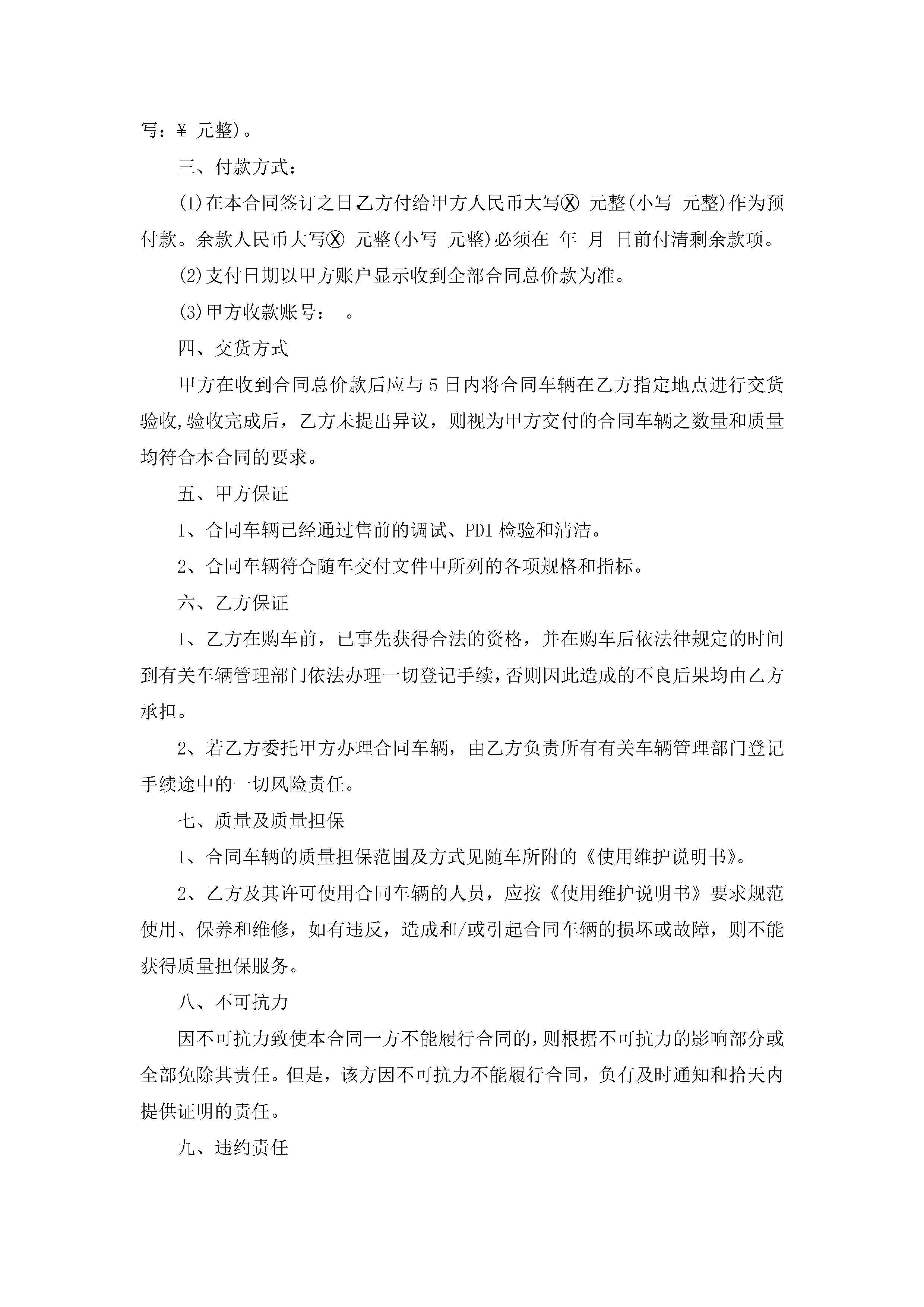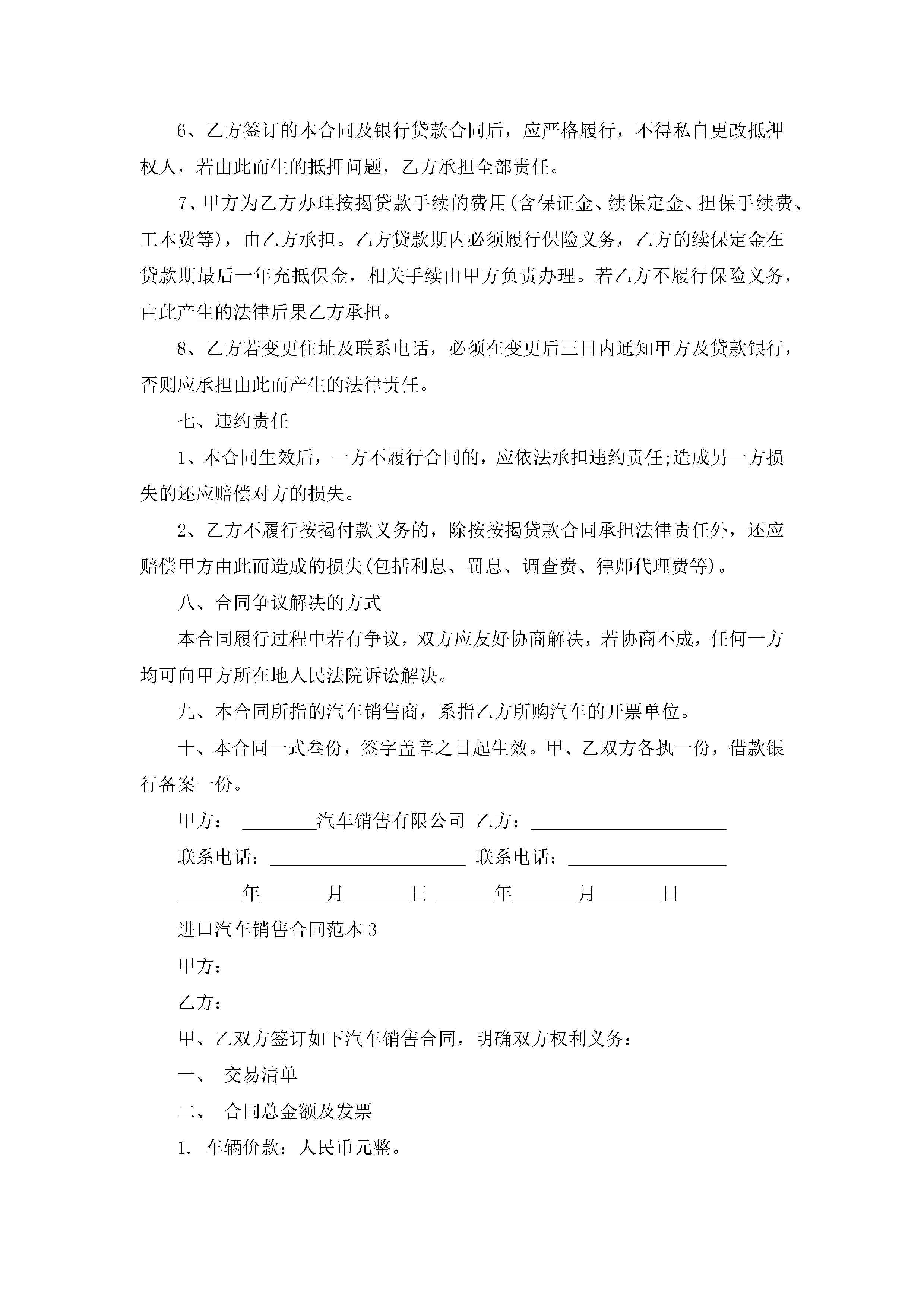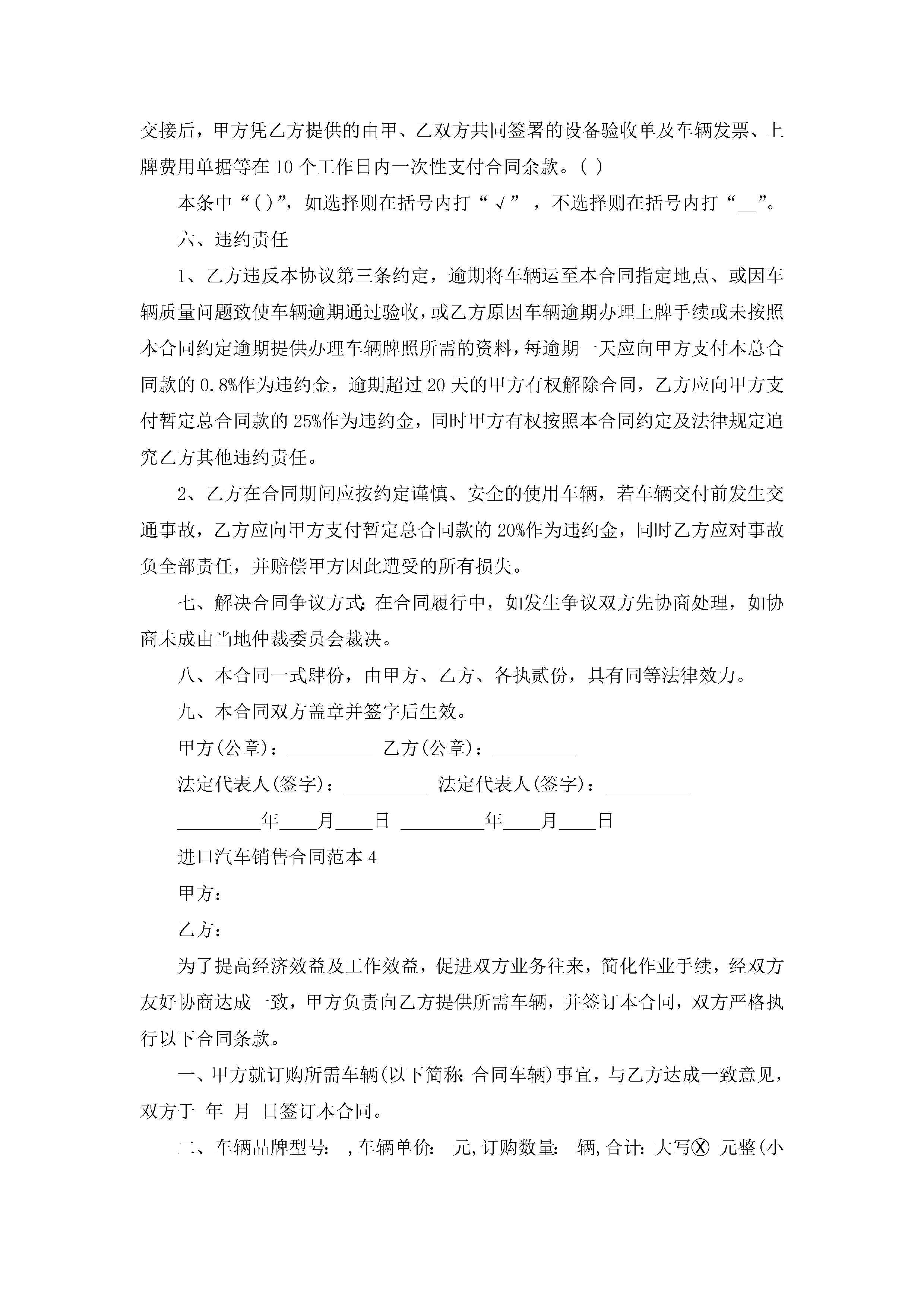 进口汽车销售合同范本5篇jugei3月23日 01:39发布关注246 进口汽车销售合同范本5篇此内容为付费资源,请付费后查看¥10.9 单篇文档限时特惠¥15个人会员开通企业会员开通立即下载无需登陆!可直接快捷下载单个模板付费资源© 版权声明THE ENDWord模板# 实用文档# 实用模板# 合同模板# 销售合同 如有问题,可点击最底部“联系我们”联系客服 分享QQ空间微博QQ好友海报分享复制链接收藏