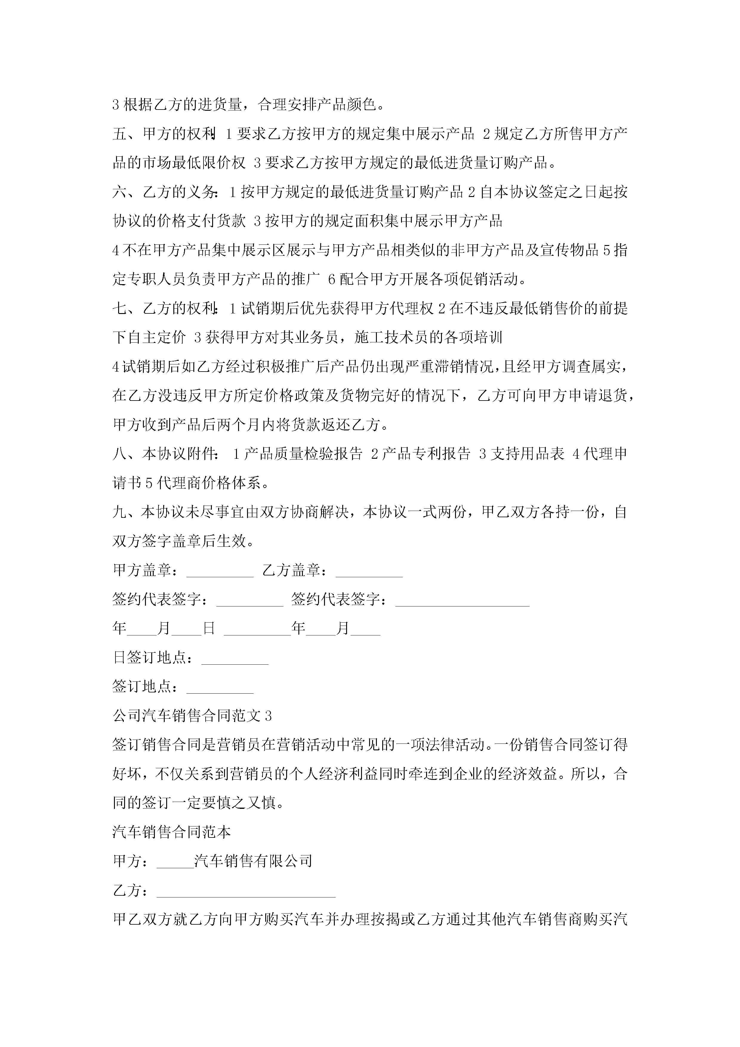 公司汽车销售合同范文5篇jugei3月23日 01:39发布关注282 公司汽车销售合同范文5篇此内容为付费资源,请付费后查看¥10.9 单篇文档限时特惠¥15个人会员开通企业会员开通立即下载无需登陆!可直接快捷下载单个模板付费资源© 版权声明THE ENDWord模板# 实用文档# 实用模板# 合同模板# 销售合同 如有问题,可点击最底部“联系我们”联系客服 分享QQ空间微博QQ好友海报分享复制链接收藏