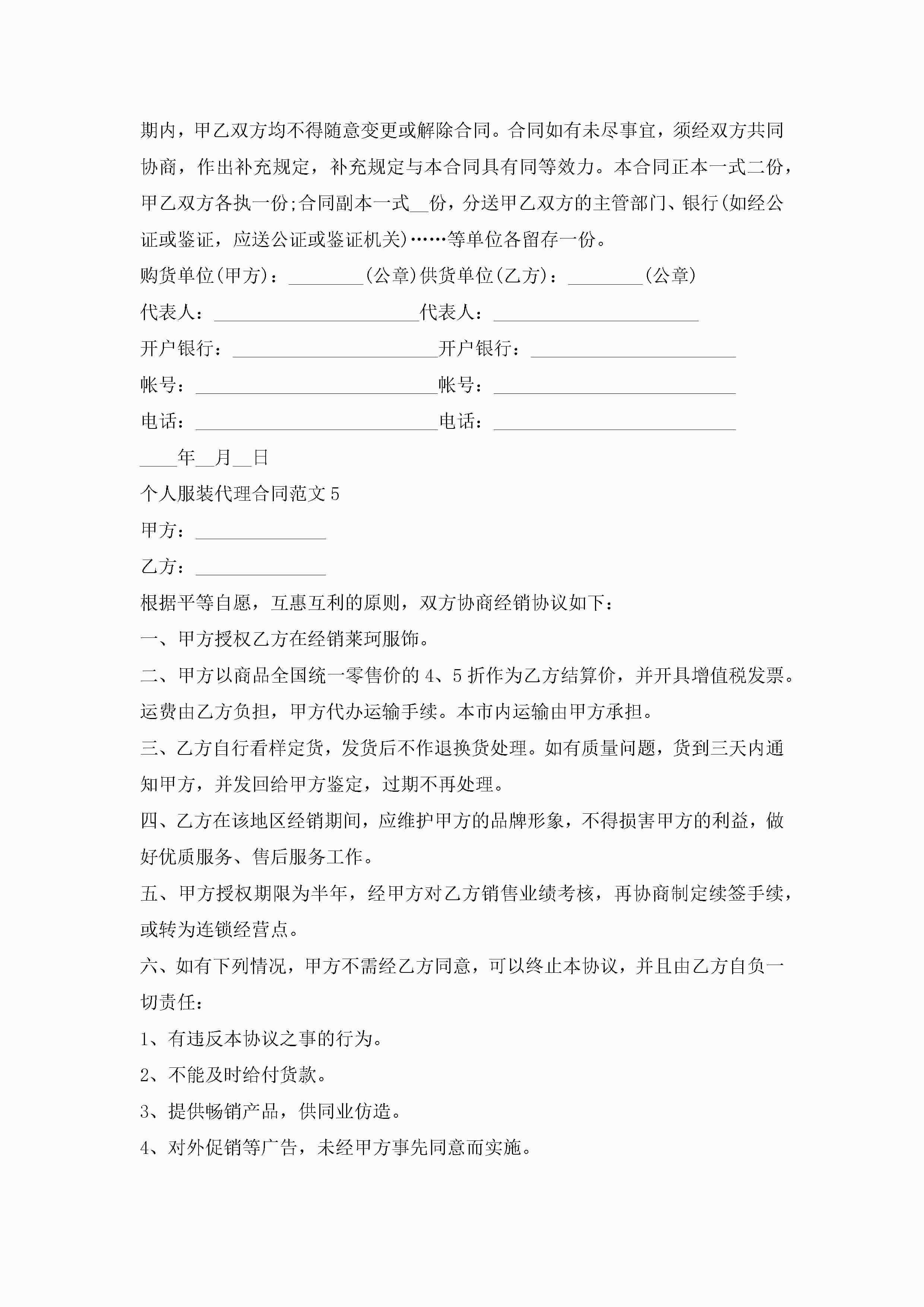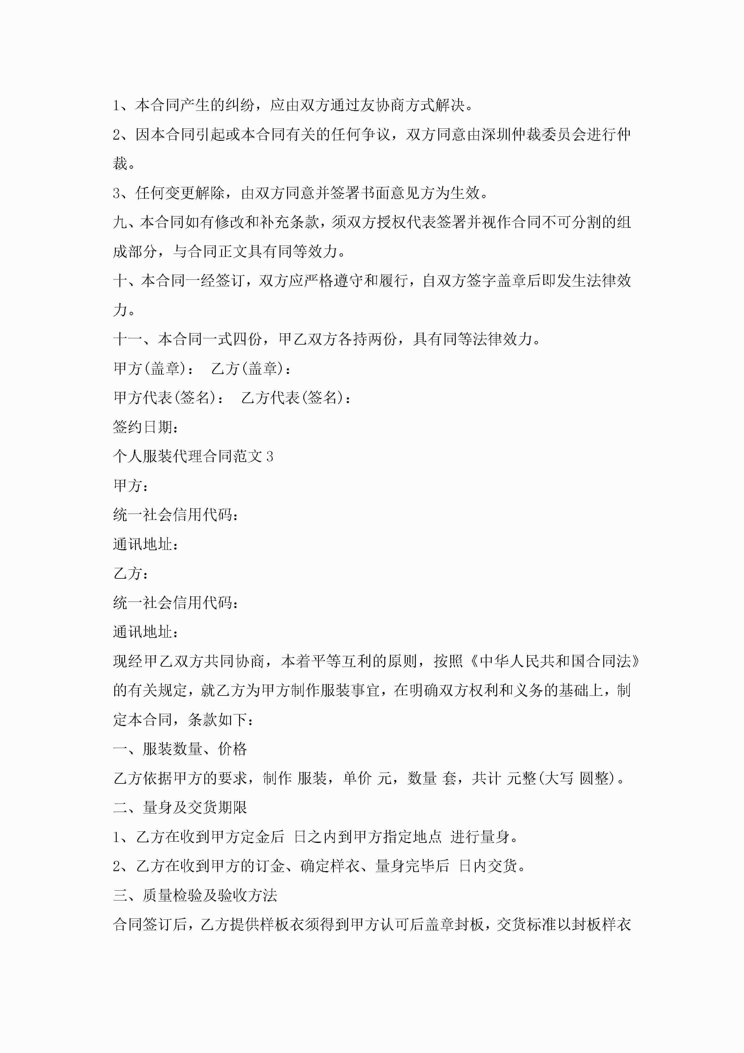 个人服装代理合同范文jugei3月23日 01:39发布关注239 个人服装代理合同范文此内容为付费资源,请付费后查看¥10.9 单篇文档限时特惠¥15个人会员开通企业会员开通立即下载无需登陆!可直接快捷下载单个模板付费资源© 版权声明THE ENDWord模板# 实用文档# 实用模板# 合同模板# 销售合同 如有问题,可点击最底部“联系我们”联系客服 分享QQ空间微博QQ好友海报分享复制链接收藏